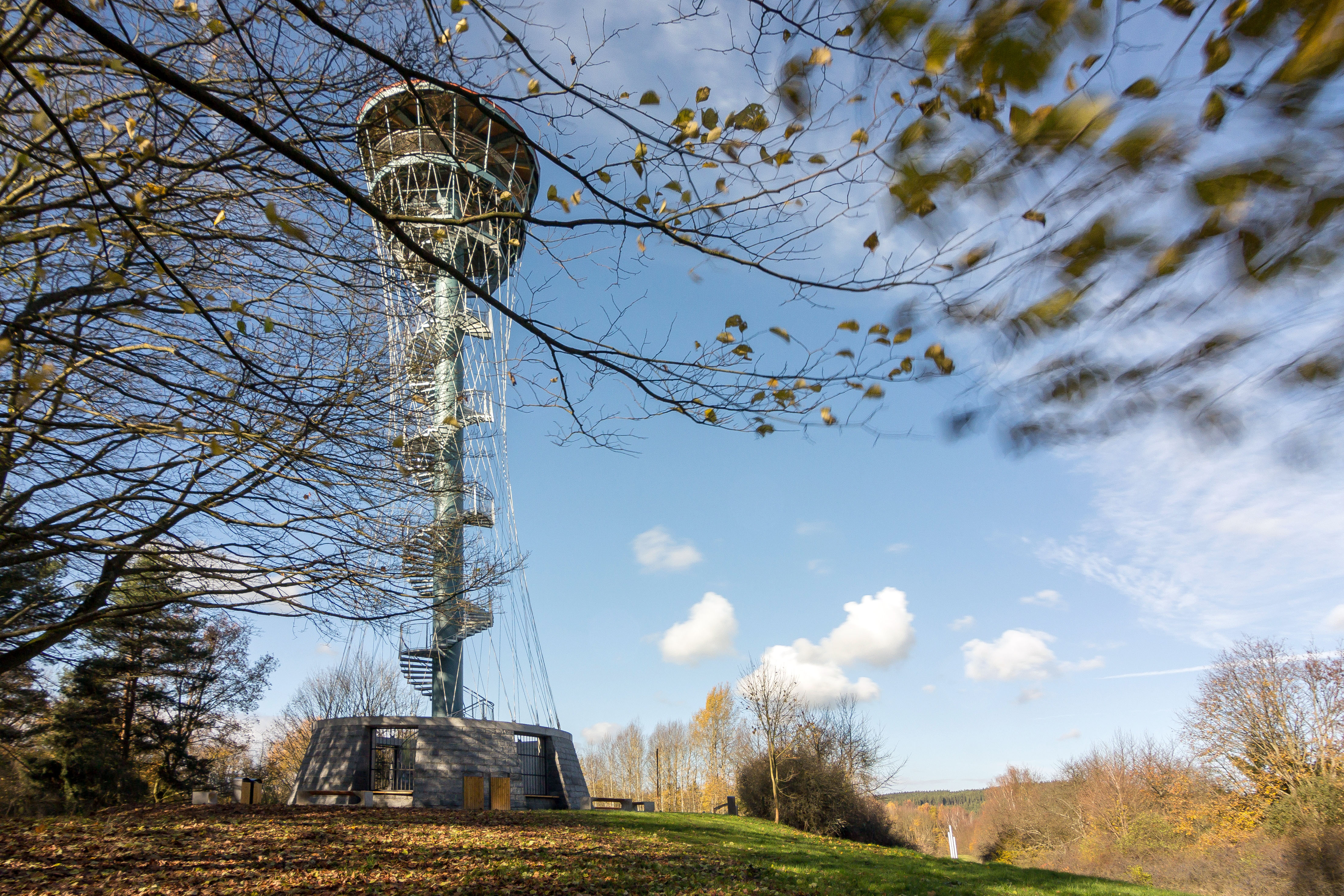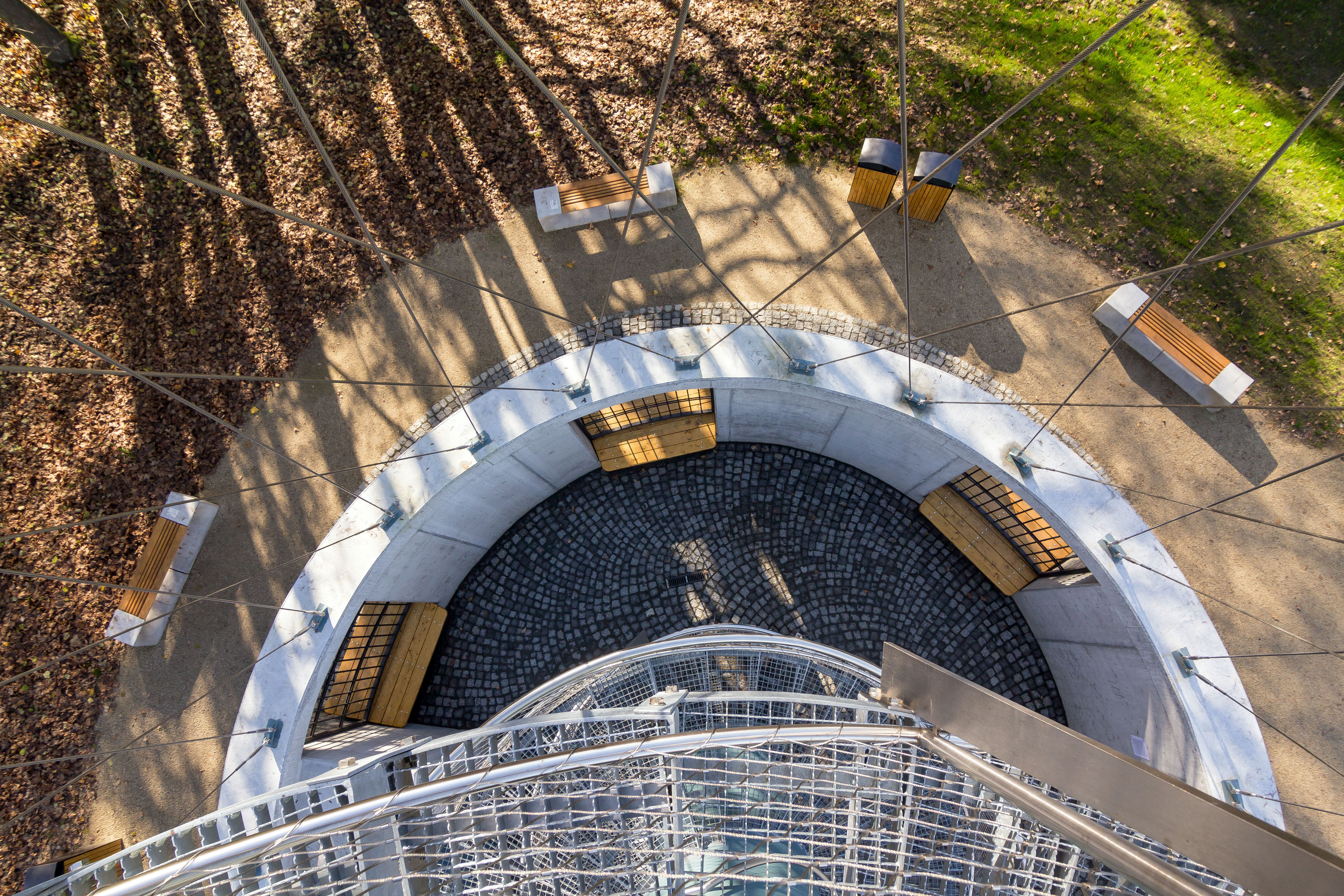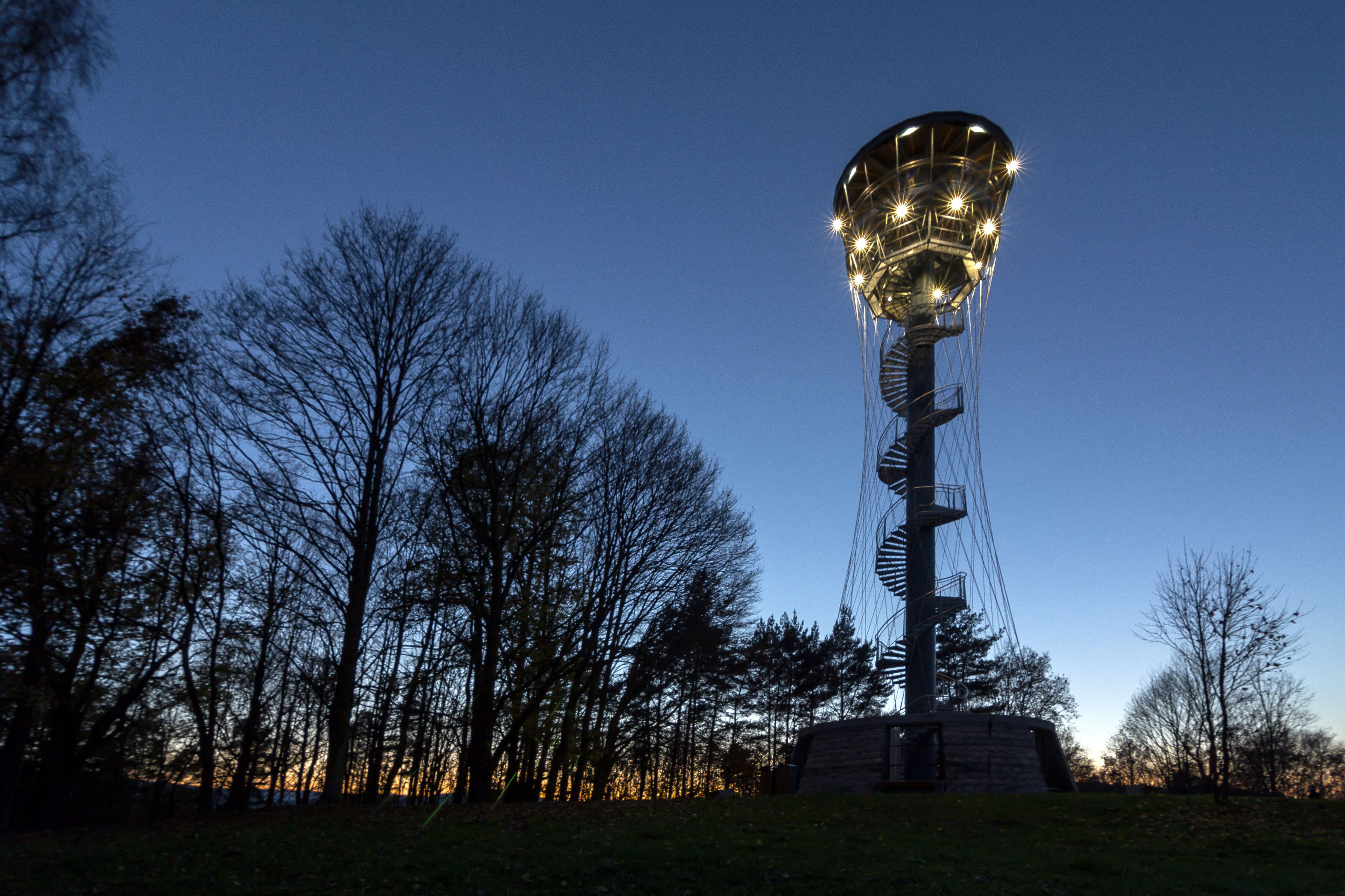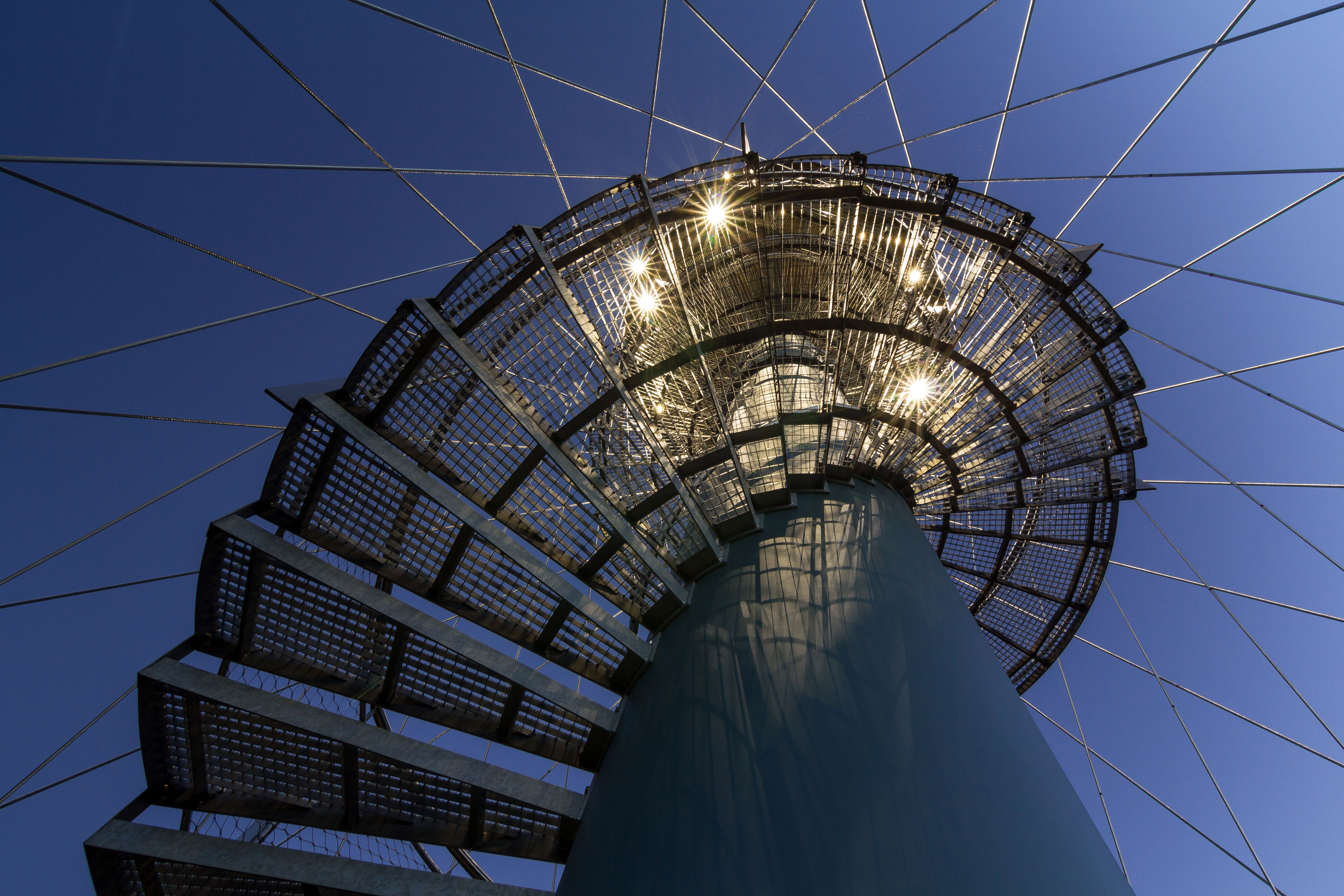 Nosná konštrukcia rozhľadne je tvorená oceľovým stĺpom kruhového prierezu priemeru 1,2 m. Na stĺpe sú upevnené samonosné oceľové schody a podesty opatrené zábradlím. Tuhosť konštrukcie rozhľadne je zaistená oceľovými lanami tvoriacimi sieť v tvare hyperbolického paraboloidu. Laná sú upnuté v oceľovom kruhovom ráme tvoriacim súčasne konštrukciu hornej ochodze. Dole sú laná upevnené na hornej hrane kruhovej železobetónovej steny.