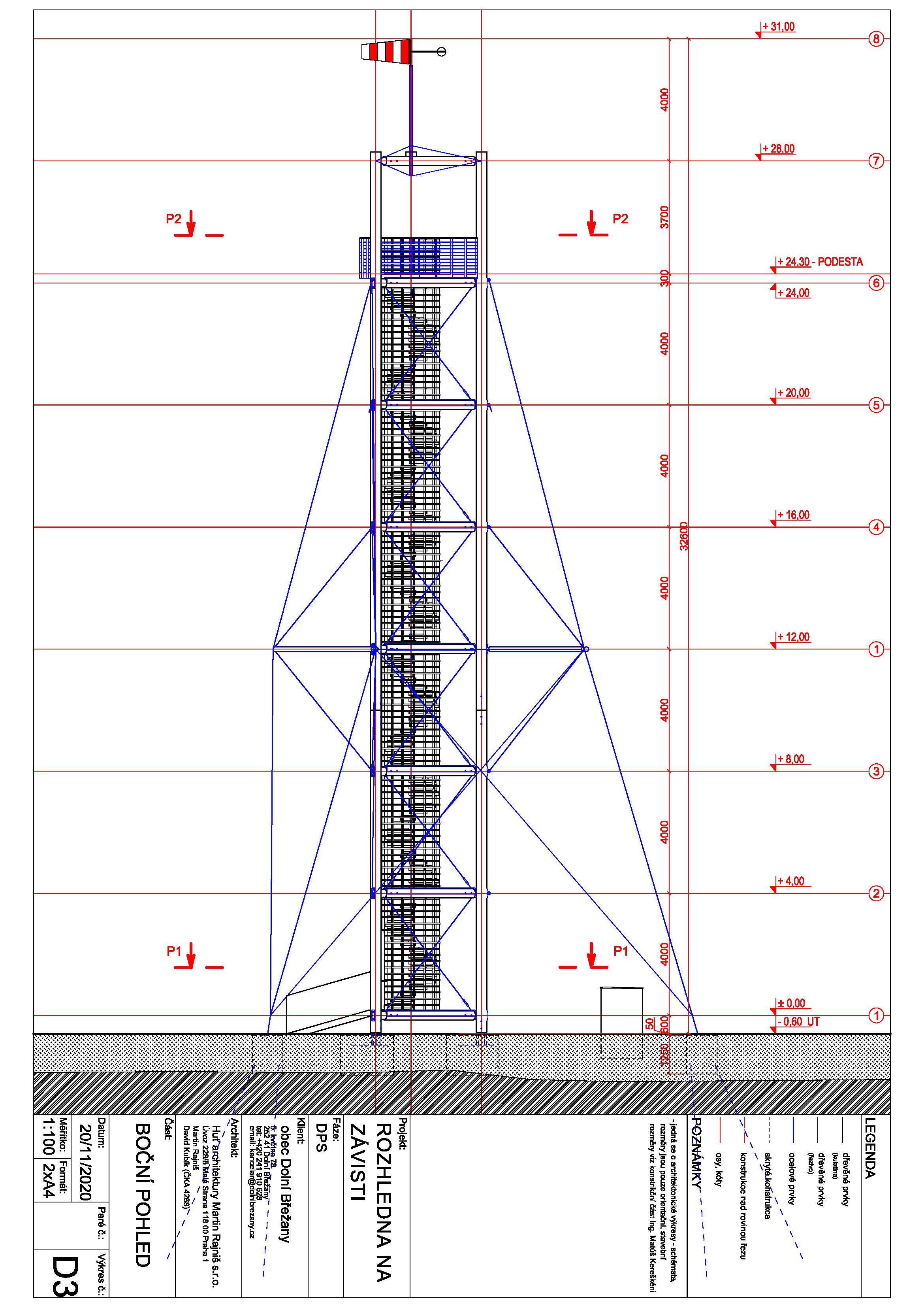 Základňa rozhľadne: +- 0,0 = 389 m.n.m.