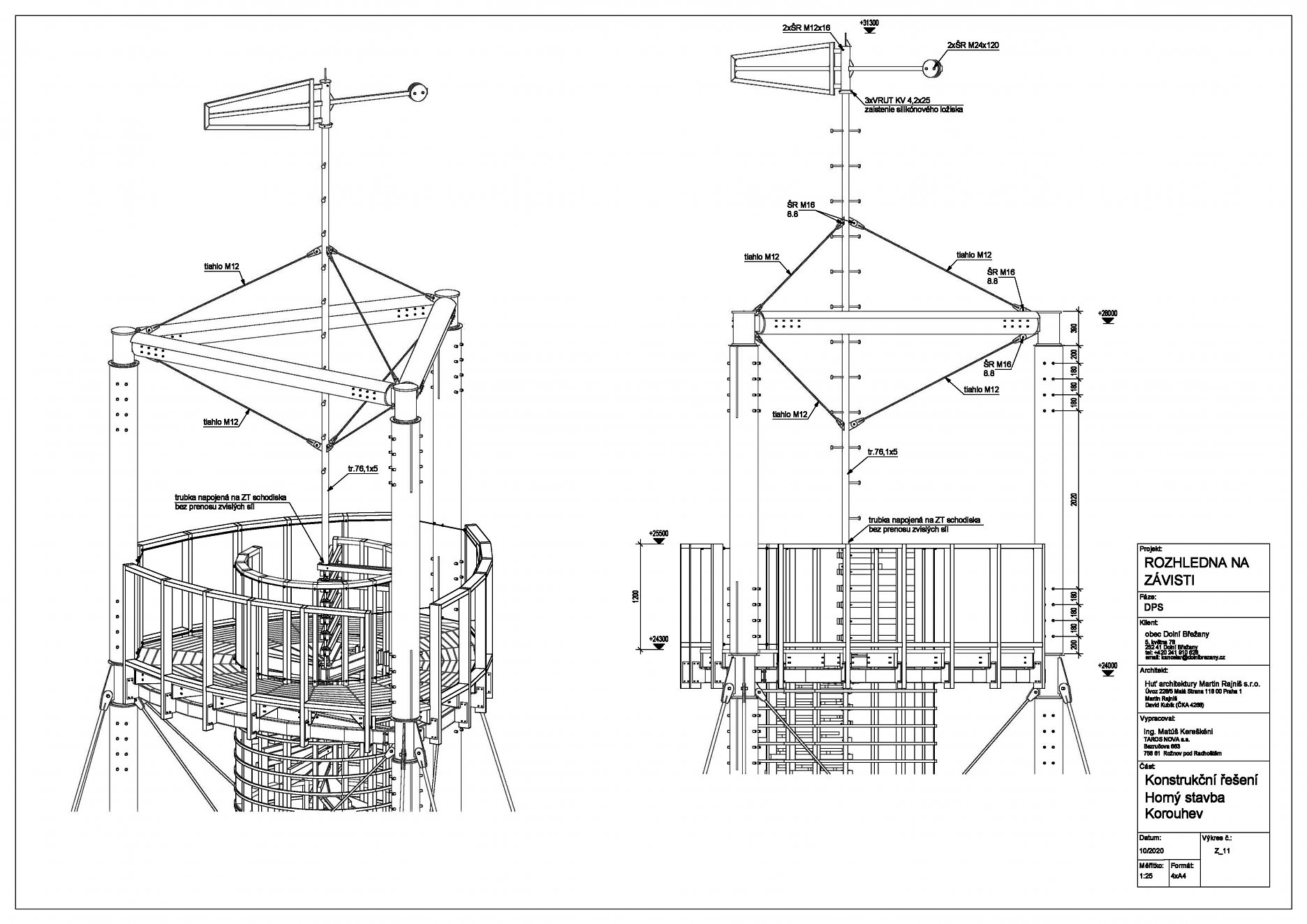 Rozhledna konstrukčně rozvyjí řadu našich věží navržených z dřevěné kulatiny s typickým točitým schodištěm. Celý svět hledá cestu lepšího souznění s přírodou, minimalizace uhlíkové stopy a vybřednutí z hluboké krize, kterou architektura prožívá. Stavba je naší odpovědí na řadu ze zmíněných otázek.