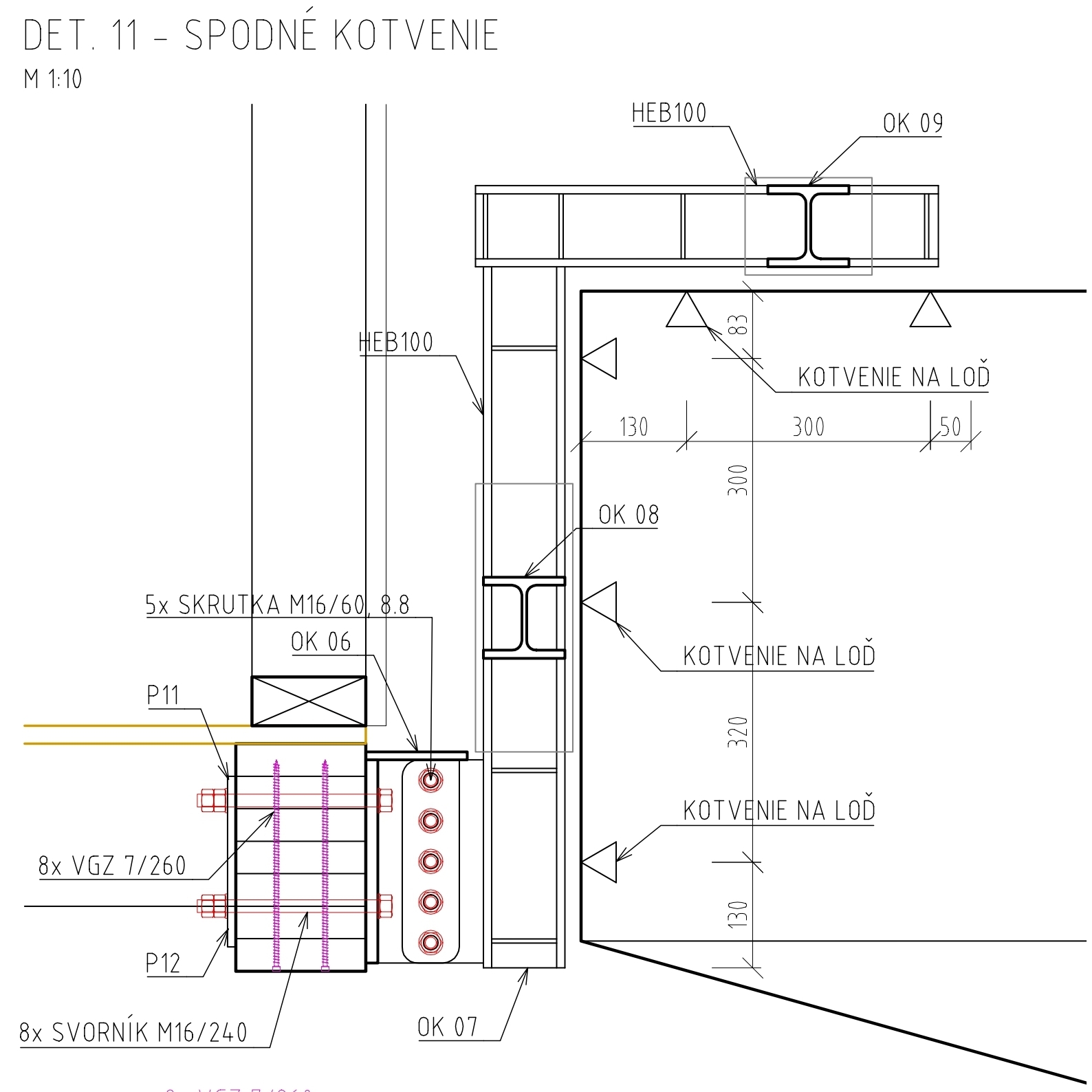 Všetky tri časti sú navzájom prepojené oceľovými spojovacími prvkami, ktoré spolu zabezpečujú prenos zaťaženia do kotviacich bodov a garantujú celkovú tuhosť a stabilitu saunovej konštrukcie.