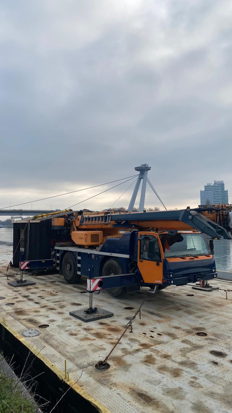 Sauna bola v dielni v Nitre naložená žeriavom na príves a prevezená do prístavu v Bratislave. Tam ju preložili na tlačný pontón spolu s autožeriavom. . Pontón, ťahaný remorkérom, bol prikotvený k lodi Pink Whale, kde prebehla finálna inštalácia.