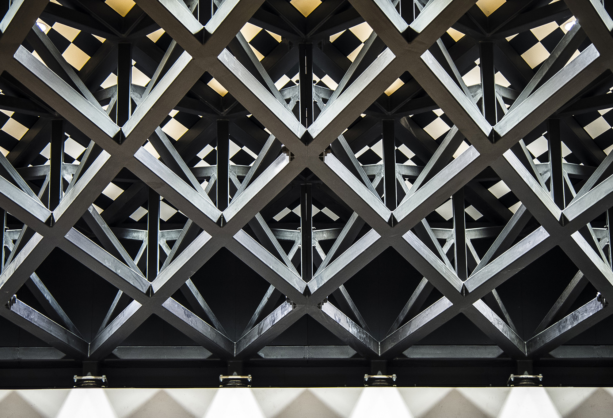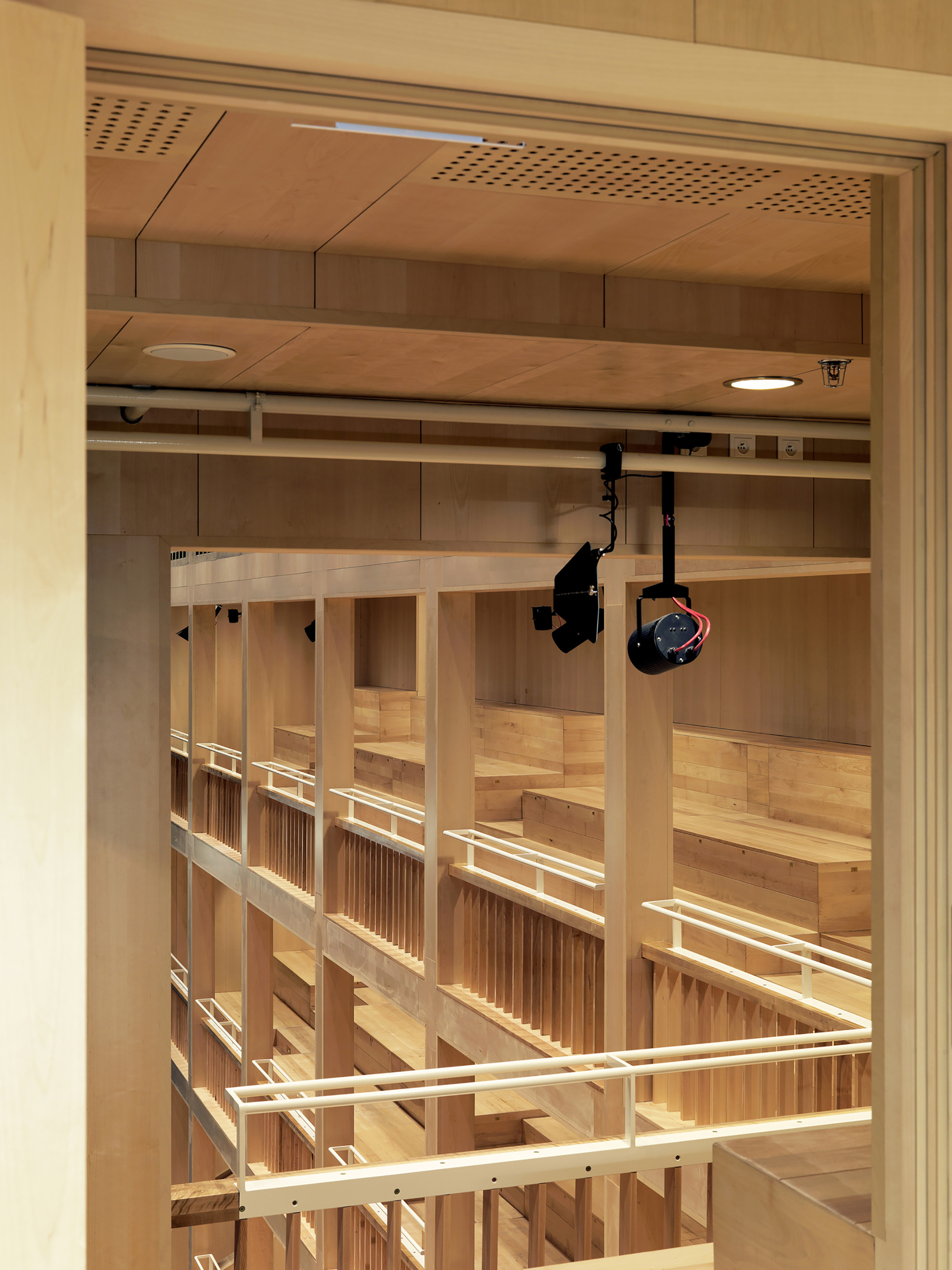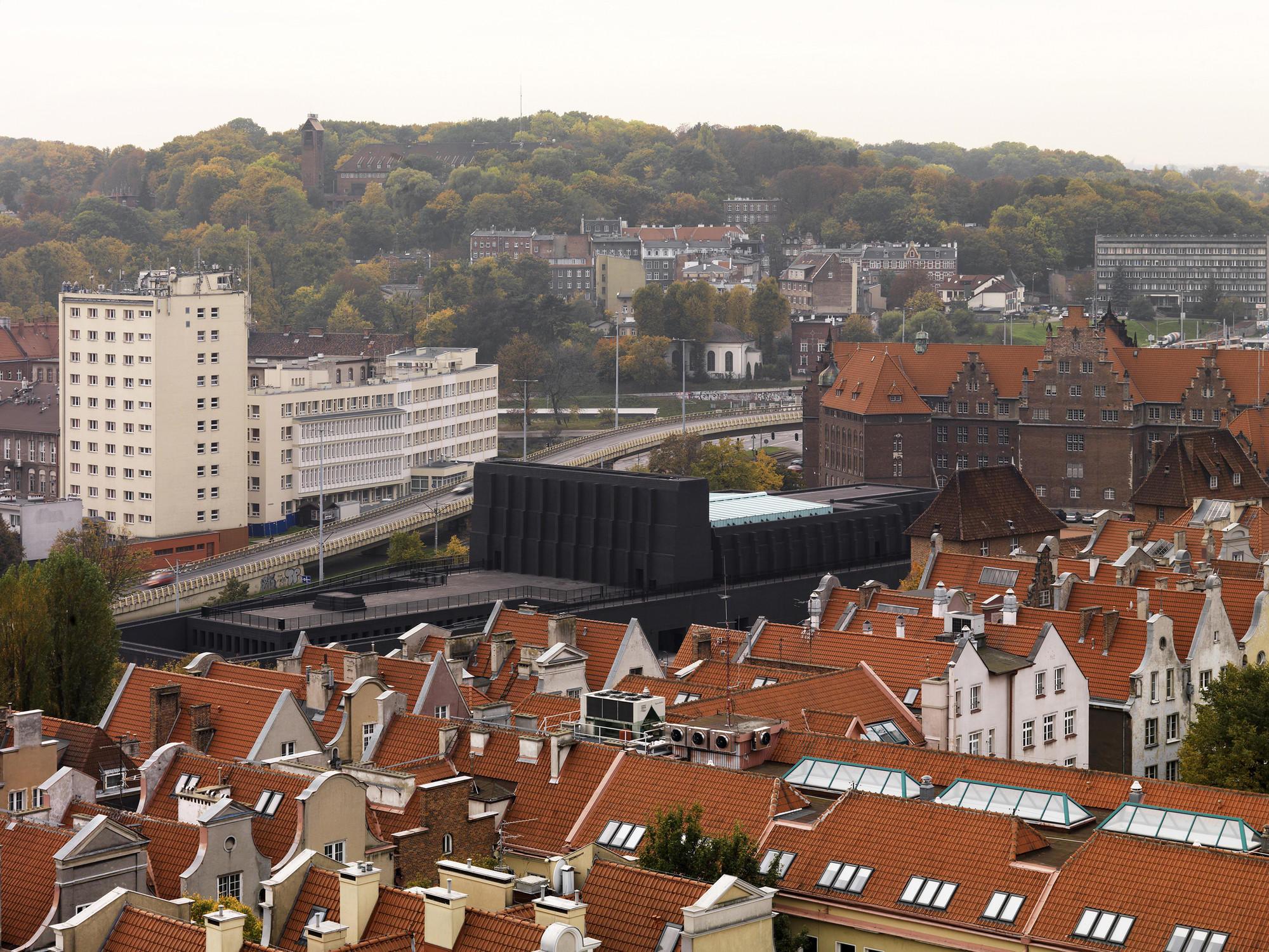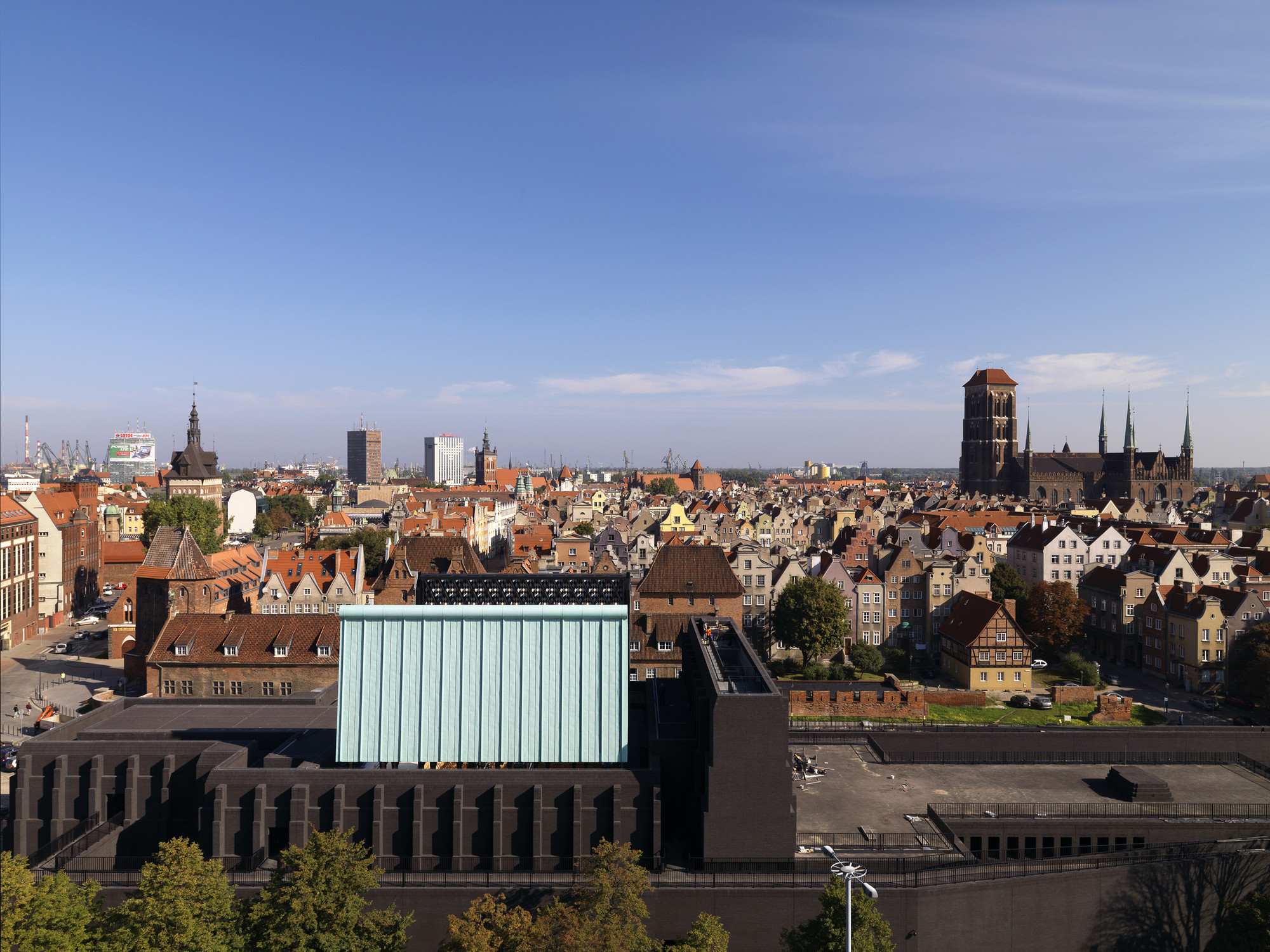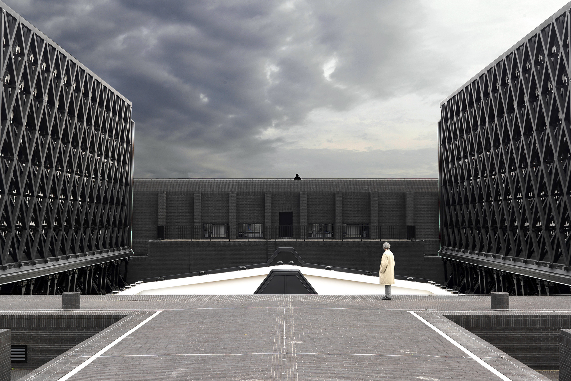 Výber materiálu pre strešné krídla (zelená predpatinovaná meď) bol ovplyvnený neďalekou katedrálou Panny Márie. Budova z tmavých tehál v historickom centre mesta, z ktorej vyrastajú veže so svojimi ihlicovými strechami. Vysoké, štíhle, s patinou. S jednoliatym povrchom strechy kontrastuje vnútorná strana krídel - strop. Kosoštvorcový motív, ktorý geometricky vychádza z podpornej konštrukcie prispôsobuje mierku interiéru.