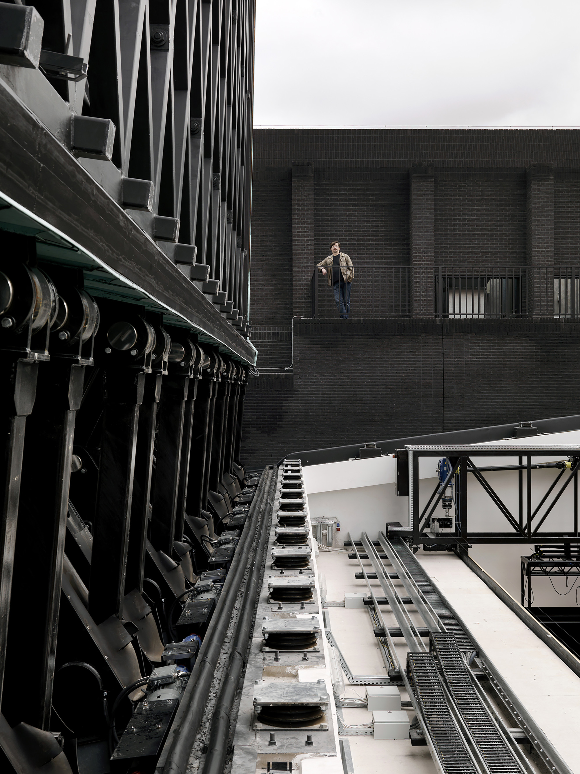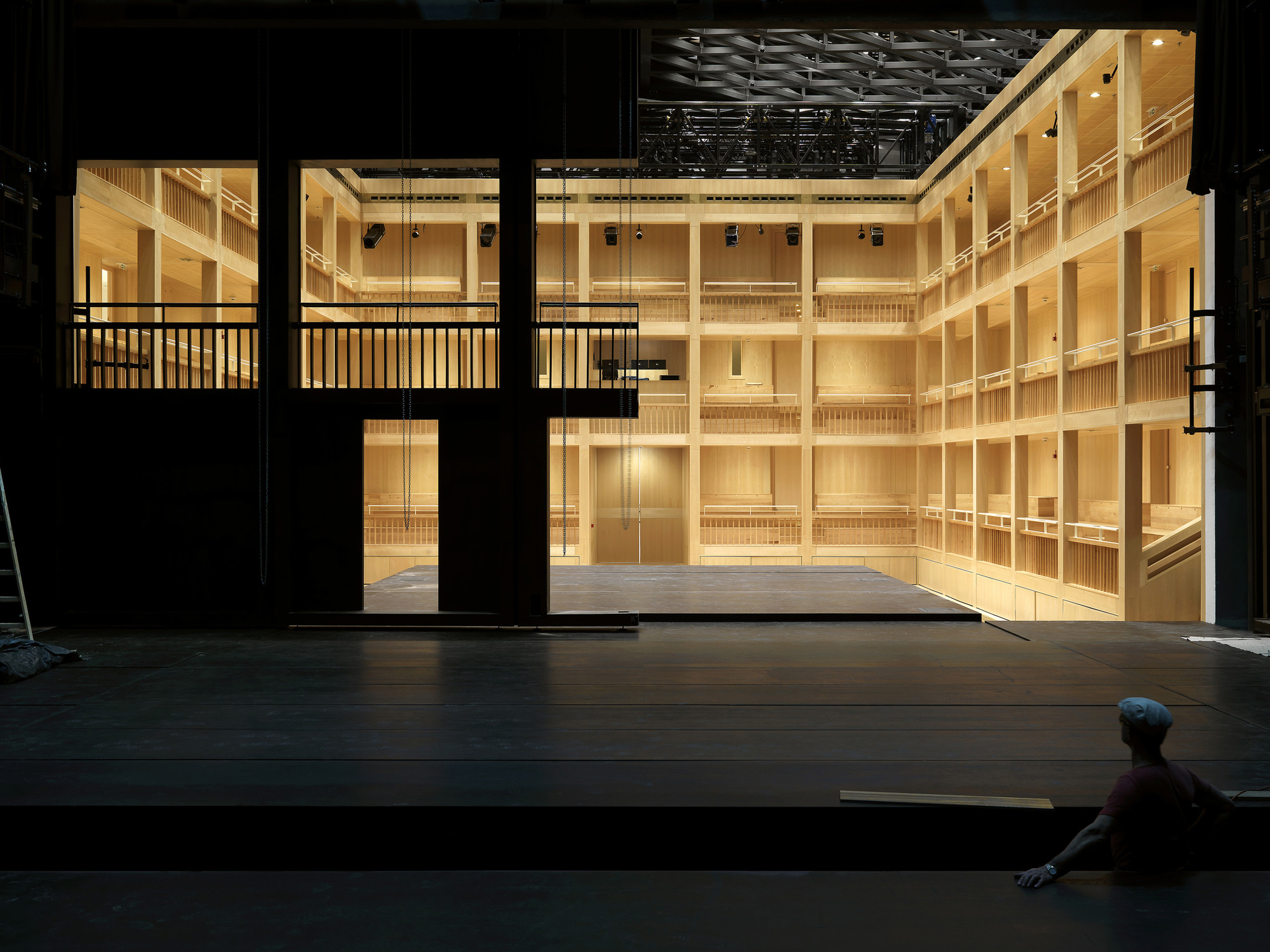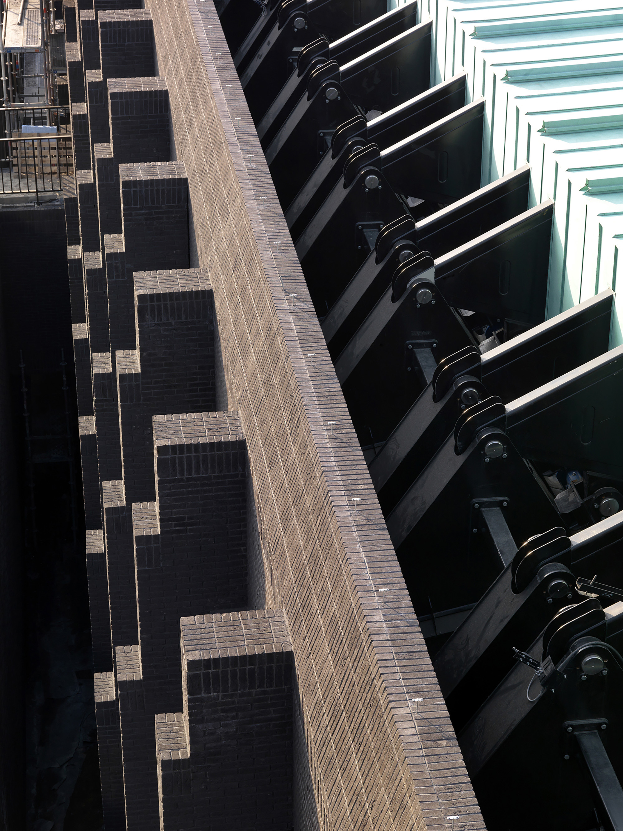 Keď je strecha divadla otvorená, je z veže vidieť až do interiéru divadla. Murované rebrá na vonkajších stenách sú charakteristickým prvkom veže a celého divadla. Určujú rytmus vnútornej modulárnej konštrukcie. Sú dôležité pre absorbovanie tlaku, ktorý otvorené krídla strechy vyvíjajú na konštrukciu a spevňujú múry aj z hľadiska zaťaženia silným severným vetrom.