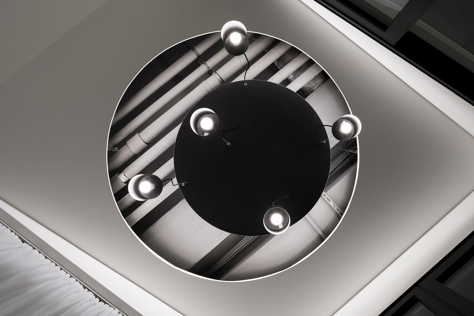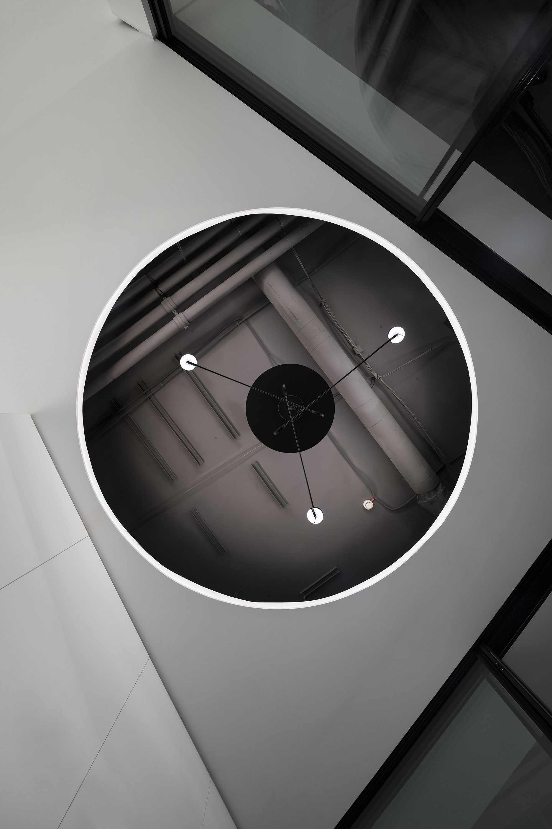 Neoddeliteľnou súčasťou showroomu je interiérové osvetlenie. Vložený objekt zhora cez kruhové otvory v streche presvetľujú dizajnové solitérne lustre. Zvonku objektu je obvodové reflektorové osvetlenie posuvné v zavesených koľajniciach, ktoré dopĺňa celkovú svetelnosť.