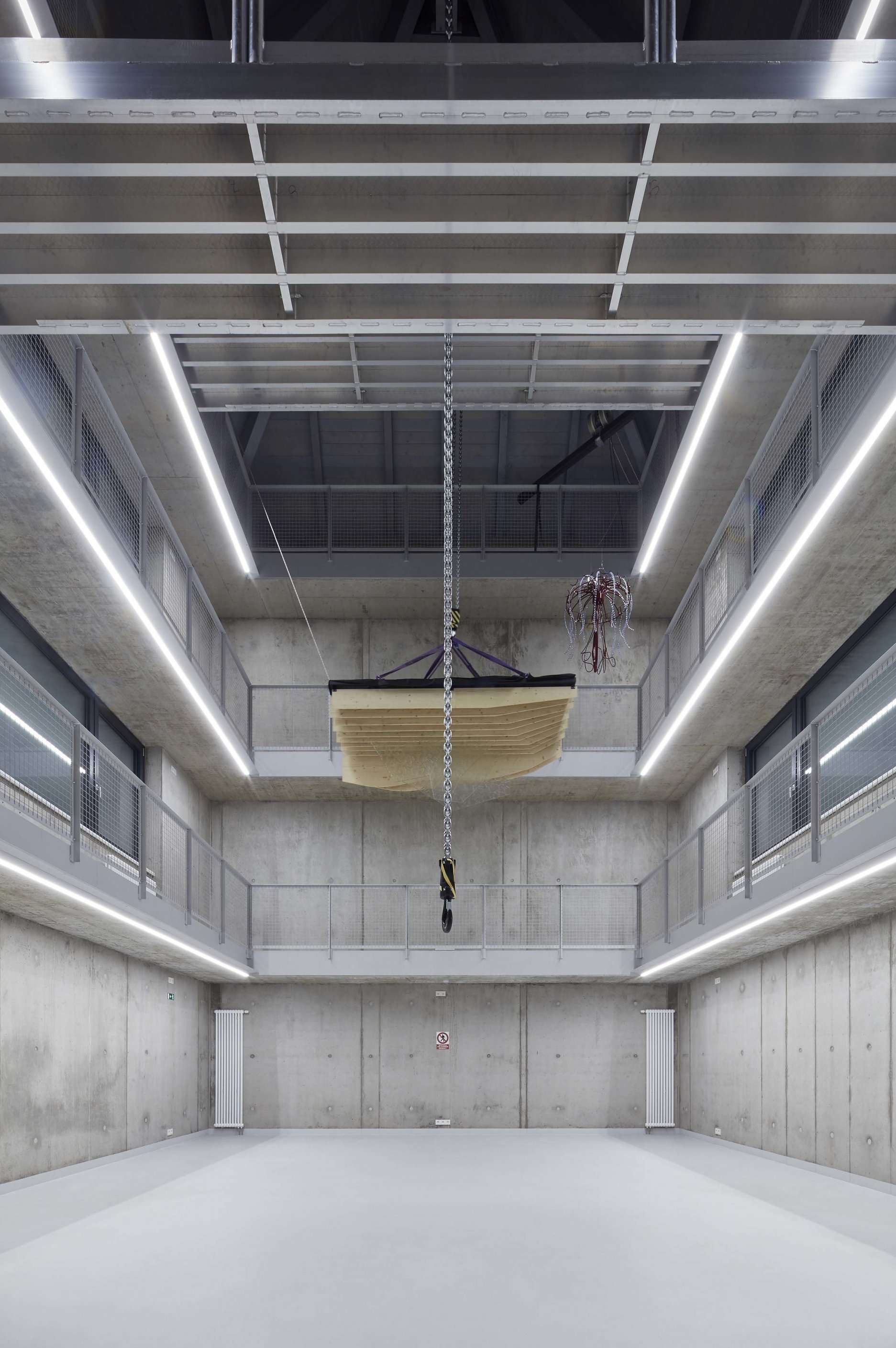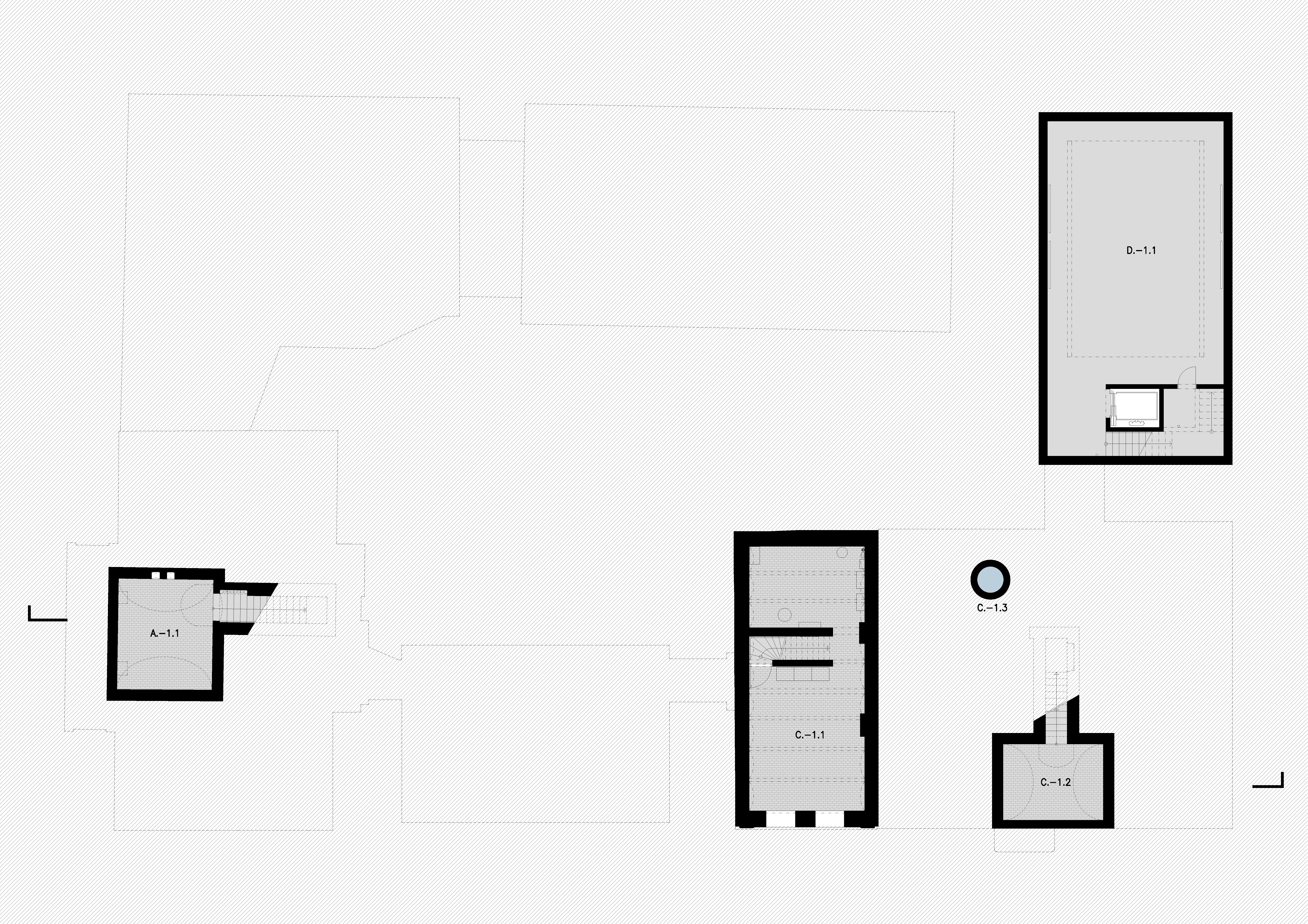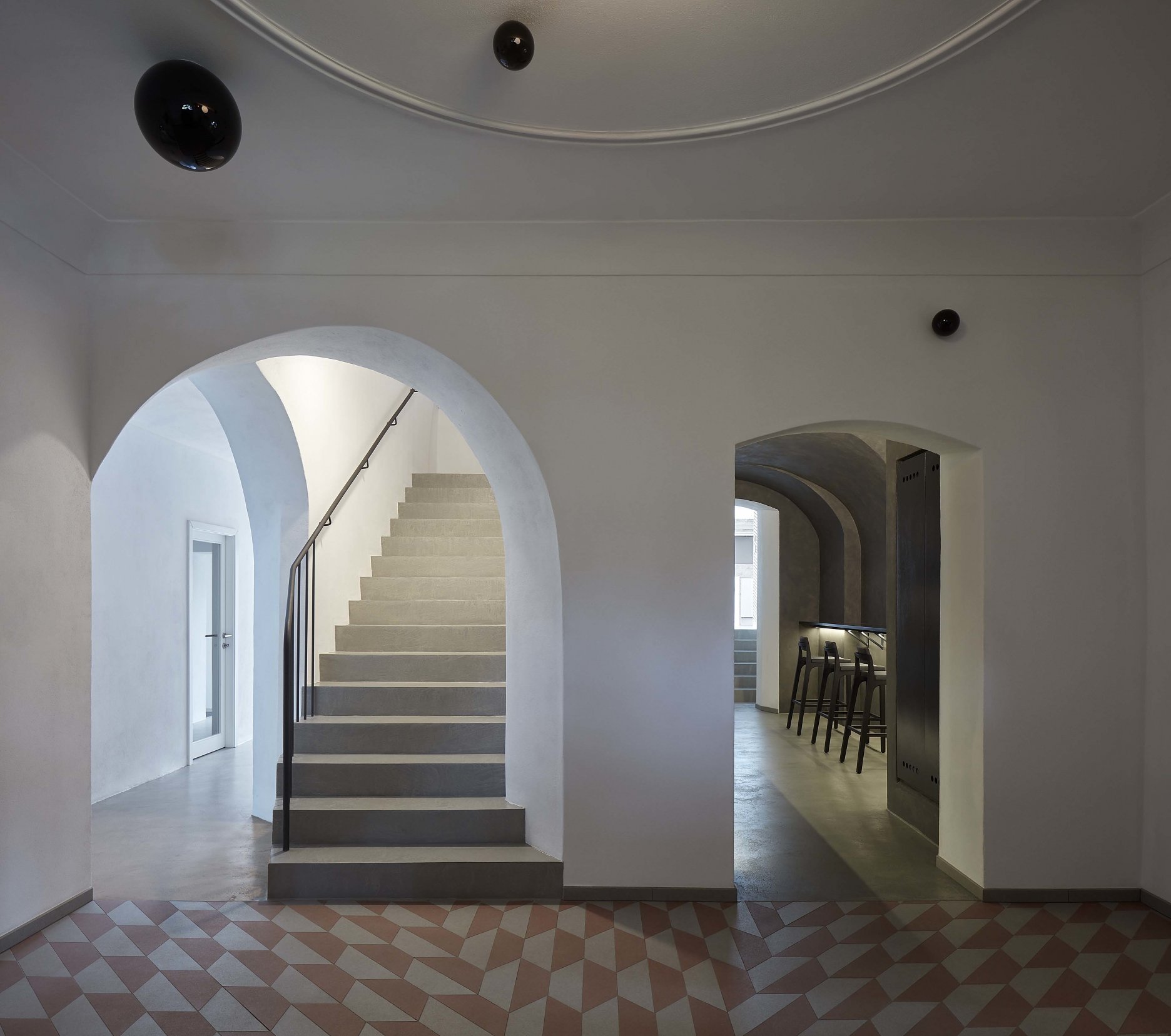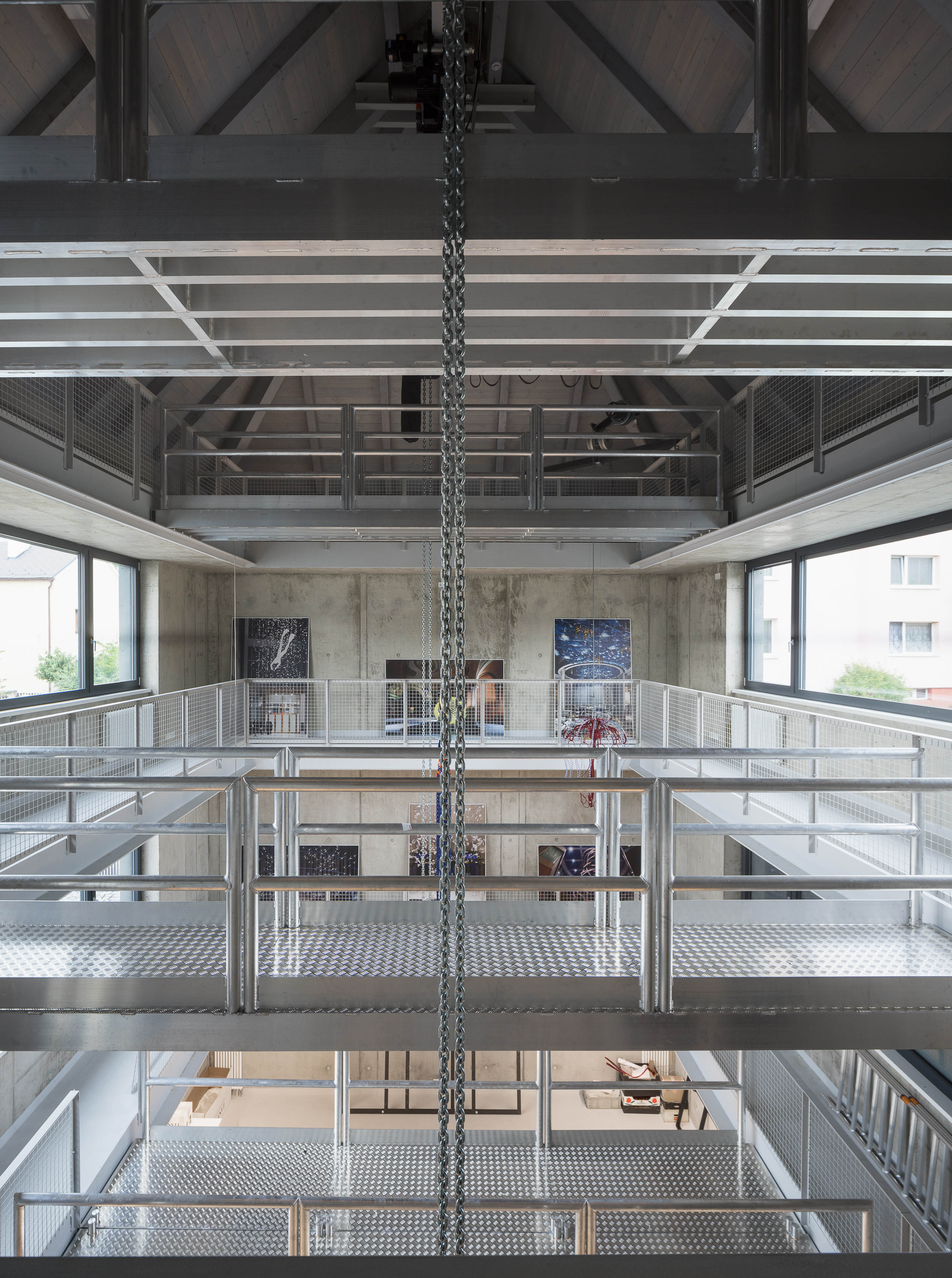 V zadnej časti pozemku, kolmo na ulicu, doplnil blok "čierny dom". Trojpodlažný priestor, otvorený do krovu, dopĺňa žeriavová dráha. Obvodový plášť z matných cementových šablón je protikladom transparentných fasád novostavby smerujúcej do ulice. Otvorený priestor, prevyšujúci 13 metrov slúži na testovanie a prezentáciu rozmerných lustrov, lámp a iných artefaktov. Konštrukcia umožňuje budúce doplnenie o podlahy a prestavbu na kancelárska pracovisko.