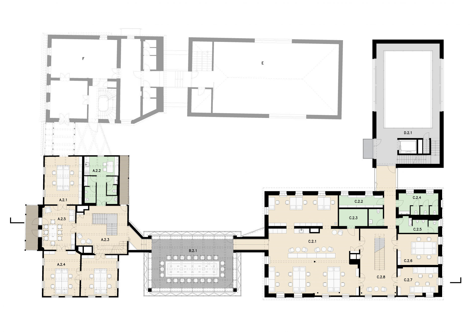 Napriek tomu, že jednoduchšou cestou by bolo postaviť nové sídlo na zelenej lúke, rozhodla sa firma pre svoje potreby adaptovať historický blok v širšom centre mesta. V roku 2014 vypísala vyzvanú architektonickú súťaž, v ktorej zvíťazil ateliér ov architekti. Dôsledne zrekonštruované pamiatkovo chránené domy z osemnásteho storočia doplnili odvážne (a zároveň aj kontextuálne) novotvary. Výsledok revitalizácie ucelenej historickej časti mesta (v ktorej pozadí cítiť komplexnosť architektonickej úvahy) je pre firmu tou najlepšou prezentáciou.