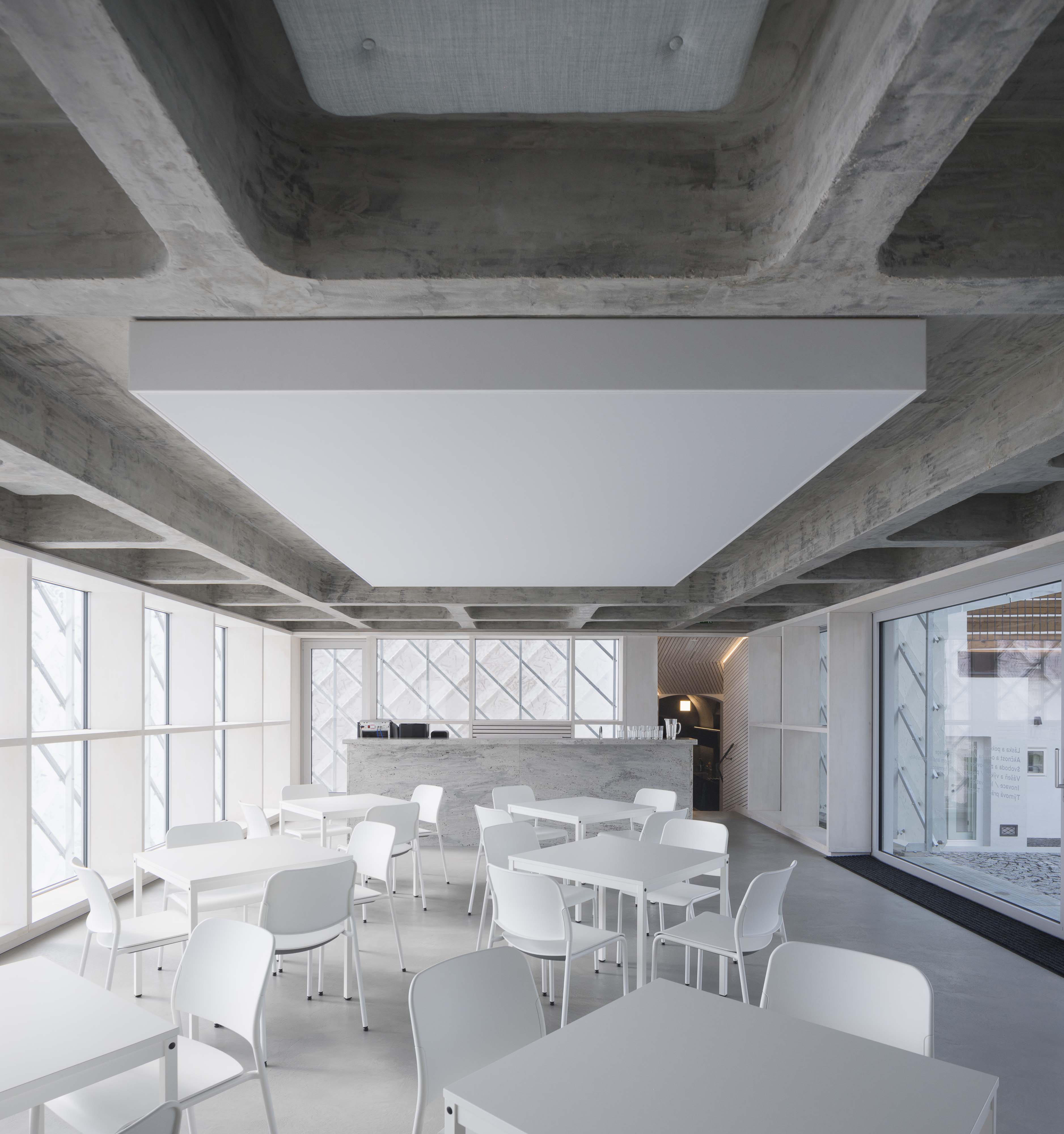Dvor obklopený pôvodnými stavbami aj súdobou architektúrou sa stáva chránenou “rajskou záhradou” pre odpočinok i prácu.