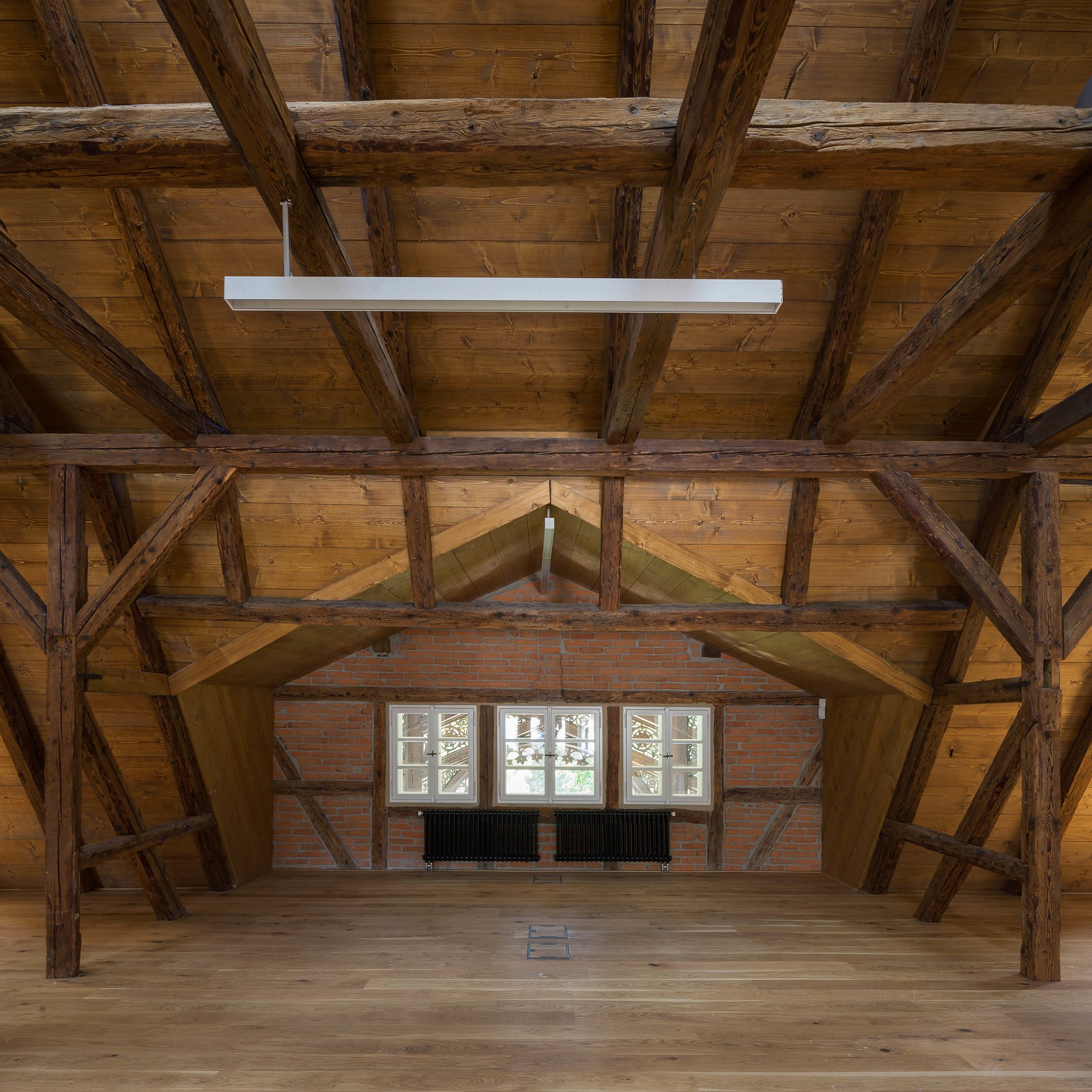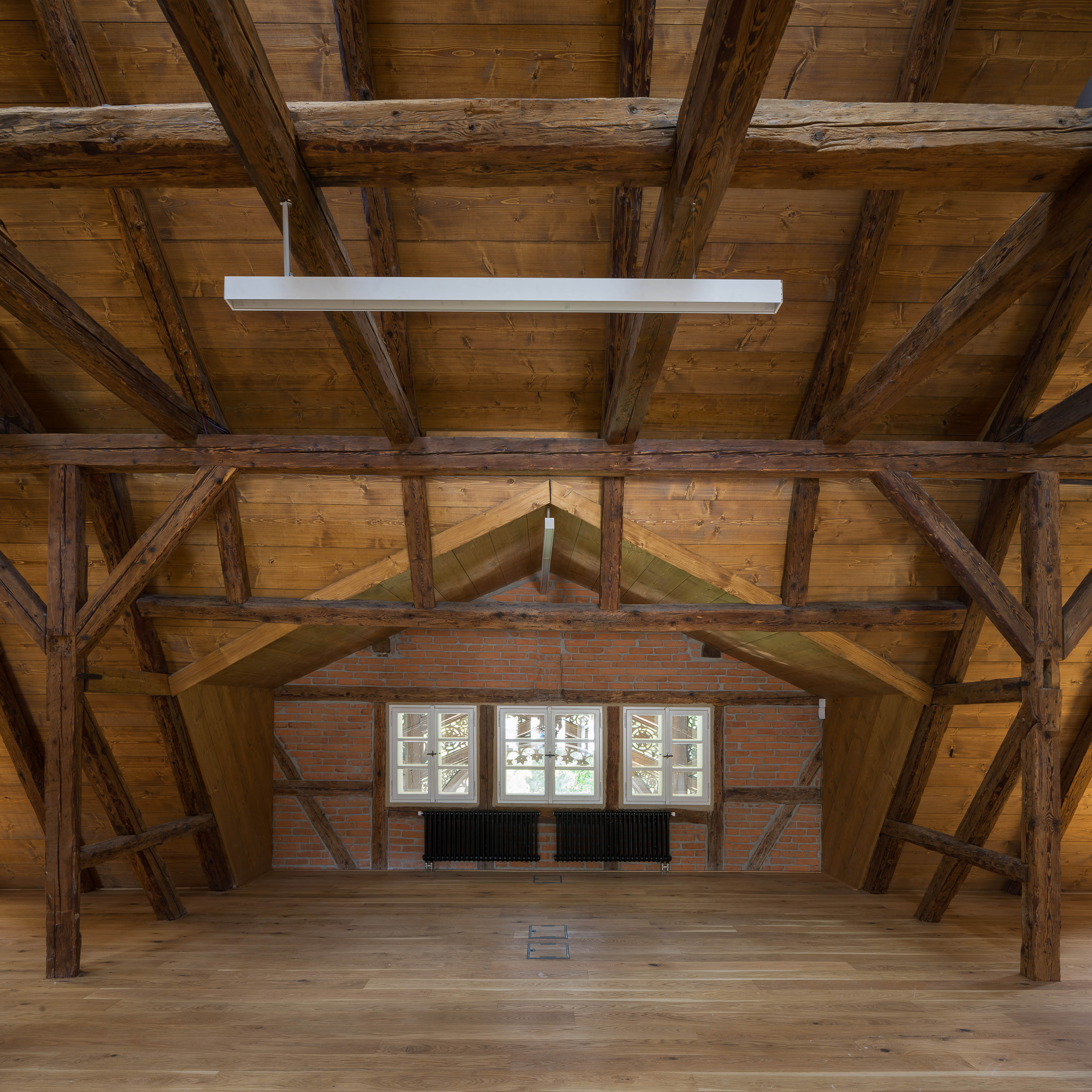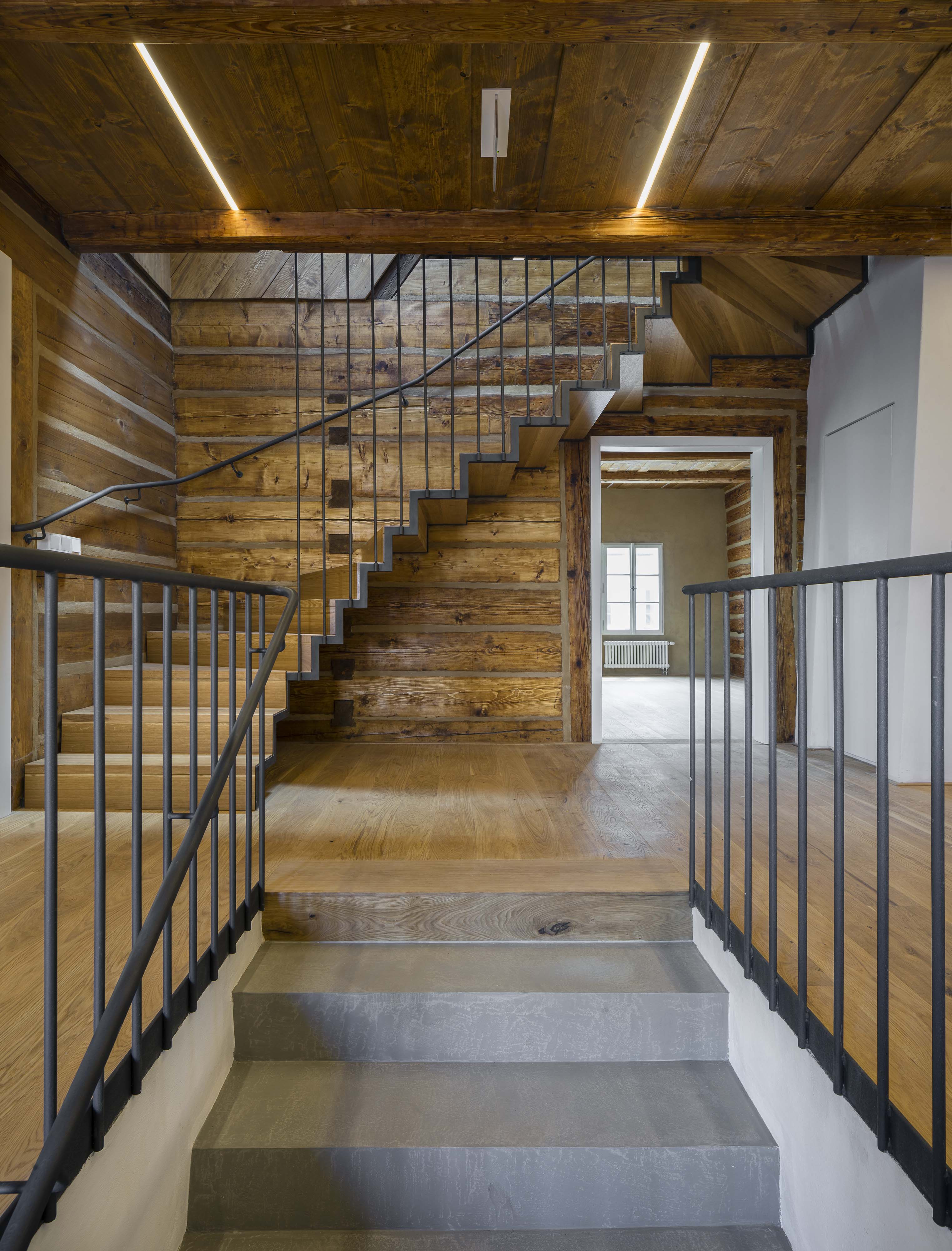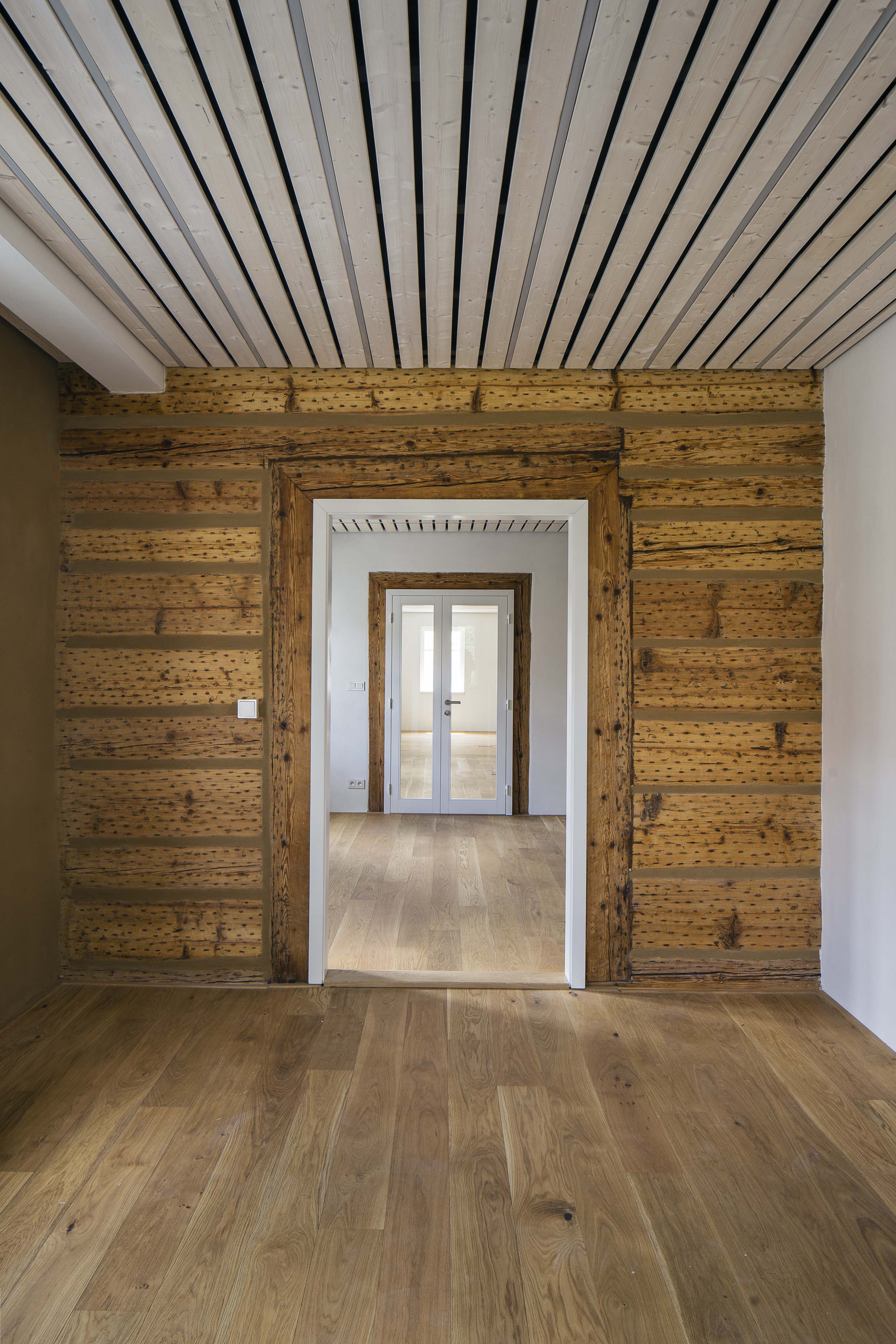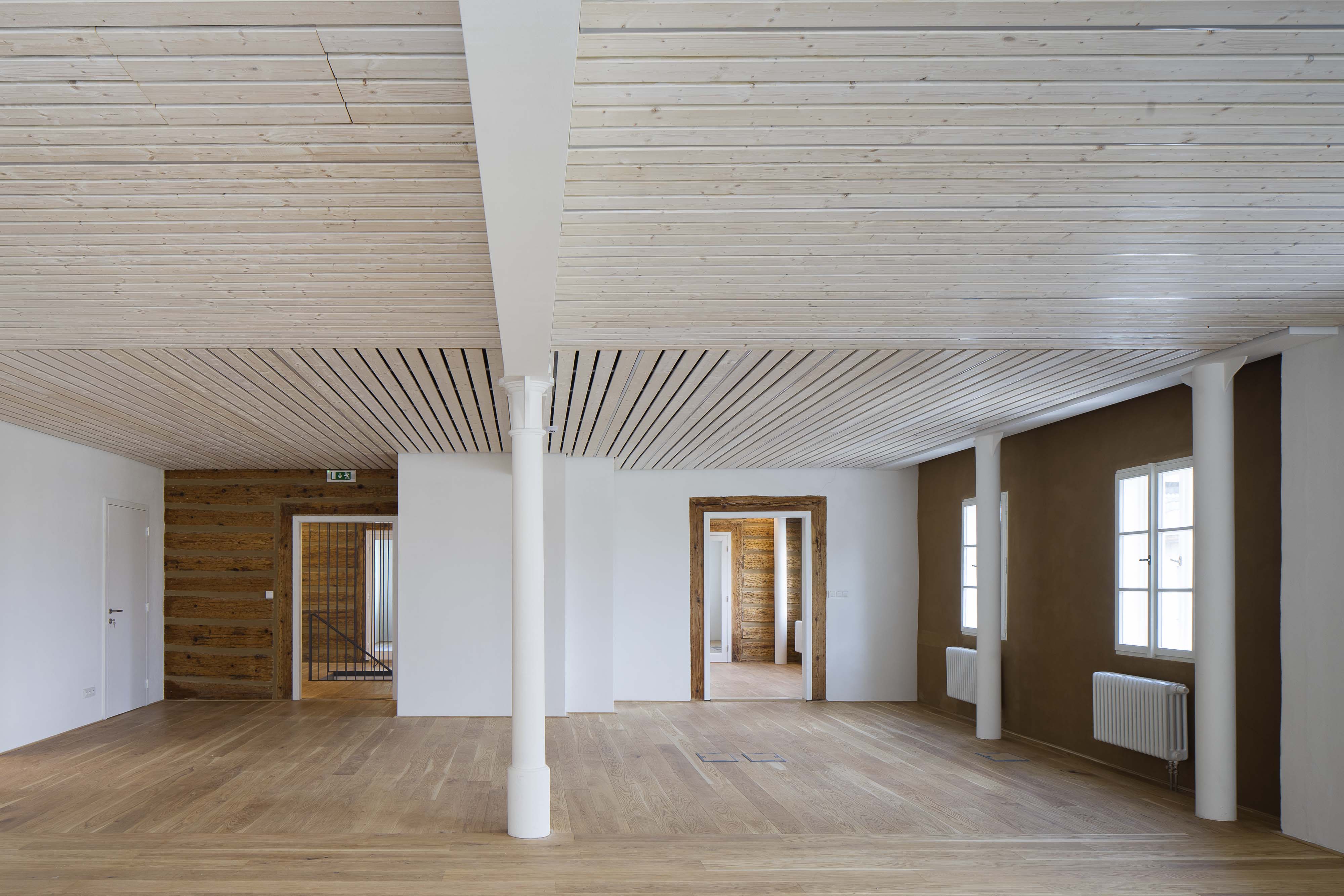 Dvojica pamiatkovo chránených domov (č. p. 170 a 171) prešla dôslednou rekonštrukciou. Objekty, očistené od nevhodných zásahov z 80. rokov, boli adaptované pre administratívnu prevádzku firmy. Odstránené zateplenie z vonkajšej strany nahradila hlinená omietka. Napriek nevyhnutnej výmene napadnutých trámov zostala podstata konštrukcie zachovaná. Pokiaľ to stav trámov umožňoval, zachránené boli aj krátke segmenty pôvodných hrád. Zobytnenie podkrovia umožnila nadkrokvová izolácia. Podlahy sú nanovo uložené na prevetrávaných tvarovkách. Na poschodí boli osadené suché skladby podláh na nové násypy, ktoré vytvárajú priestor pre vedenie sietí a zlepšenie akustiky.