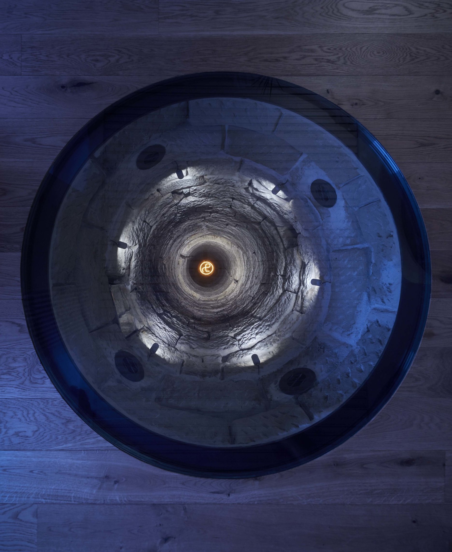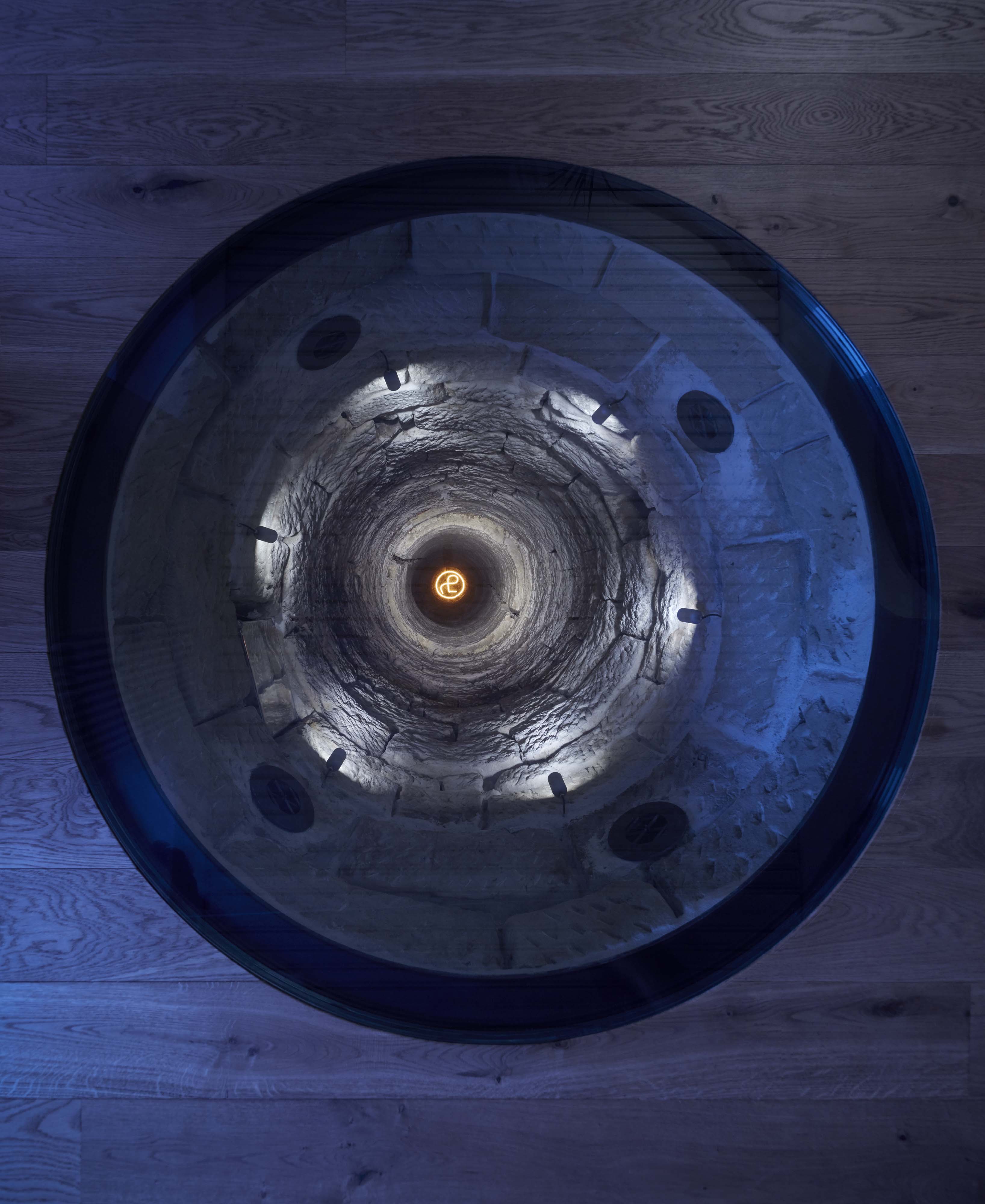 Pochôdzna sklenená plocha na prízemí umožňuje nahliadnuť do dvadsaťmetrovej studne, ktorá bola objavená počas stavebných prác. Na jej dne žiari logo firmy.