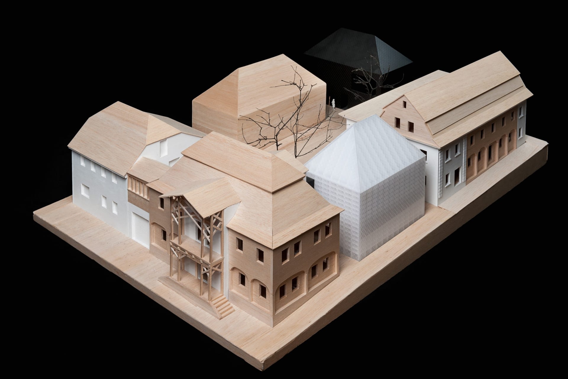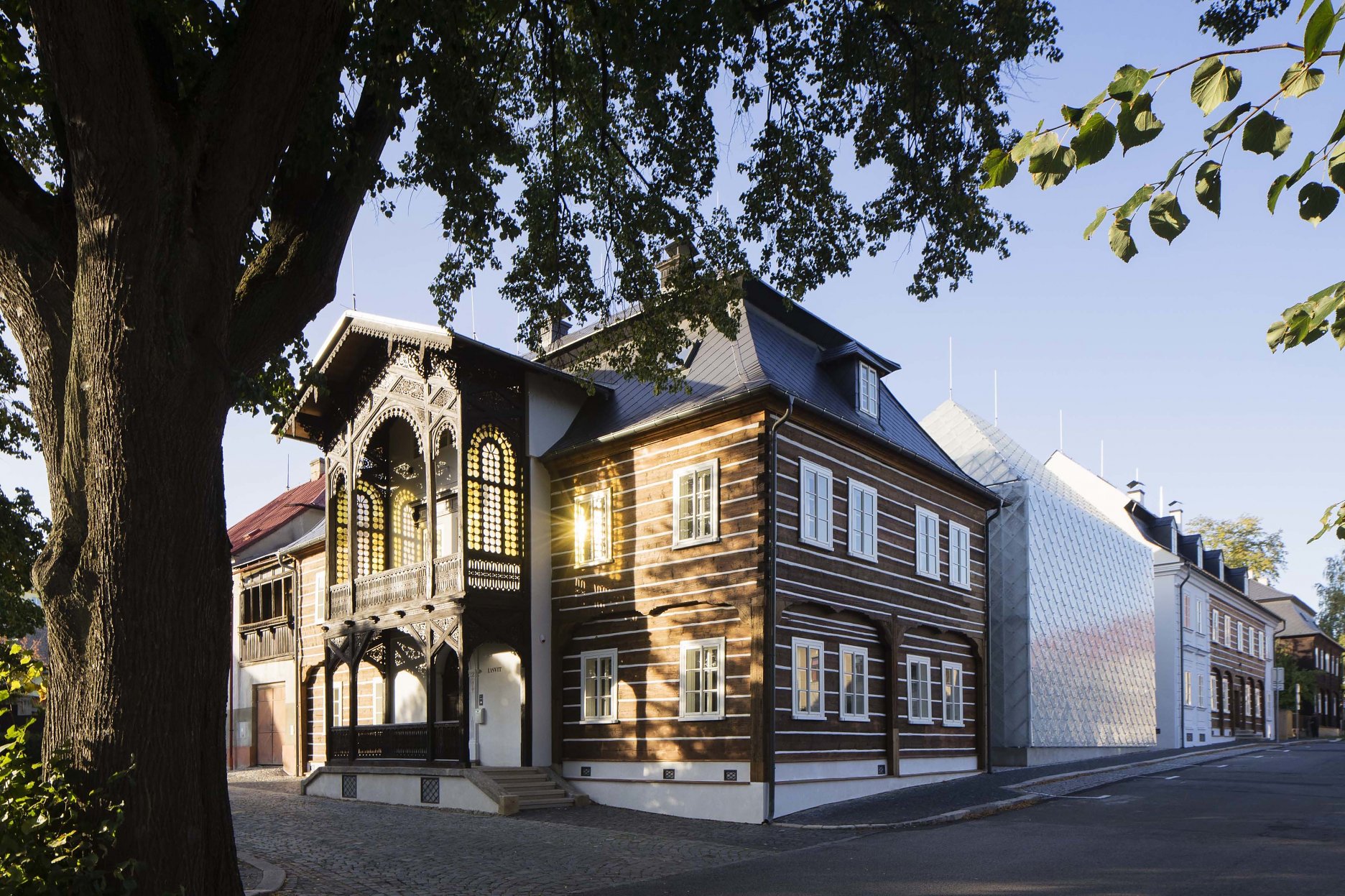 Cieľom obnovy a doplnenia areálu firmy LASVIT je jeho zjednotenie do kompaktného bloku. Dvojicu pamiatkovo chránených domov doplnili dve novostavby, ktoré vychádzajú z proporcií okolitých objektov. Tvar domov je abstrahovaný do jednoduchej formy zastrešenej valbovou strechou. Rozmerový modul daný použiteľnou dĺžkou trámu – spravidla štyri až päť metrov je v podobných proporciách prenesený do nových pôdorysov (3 x 2 moduly).