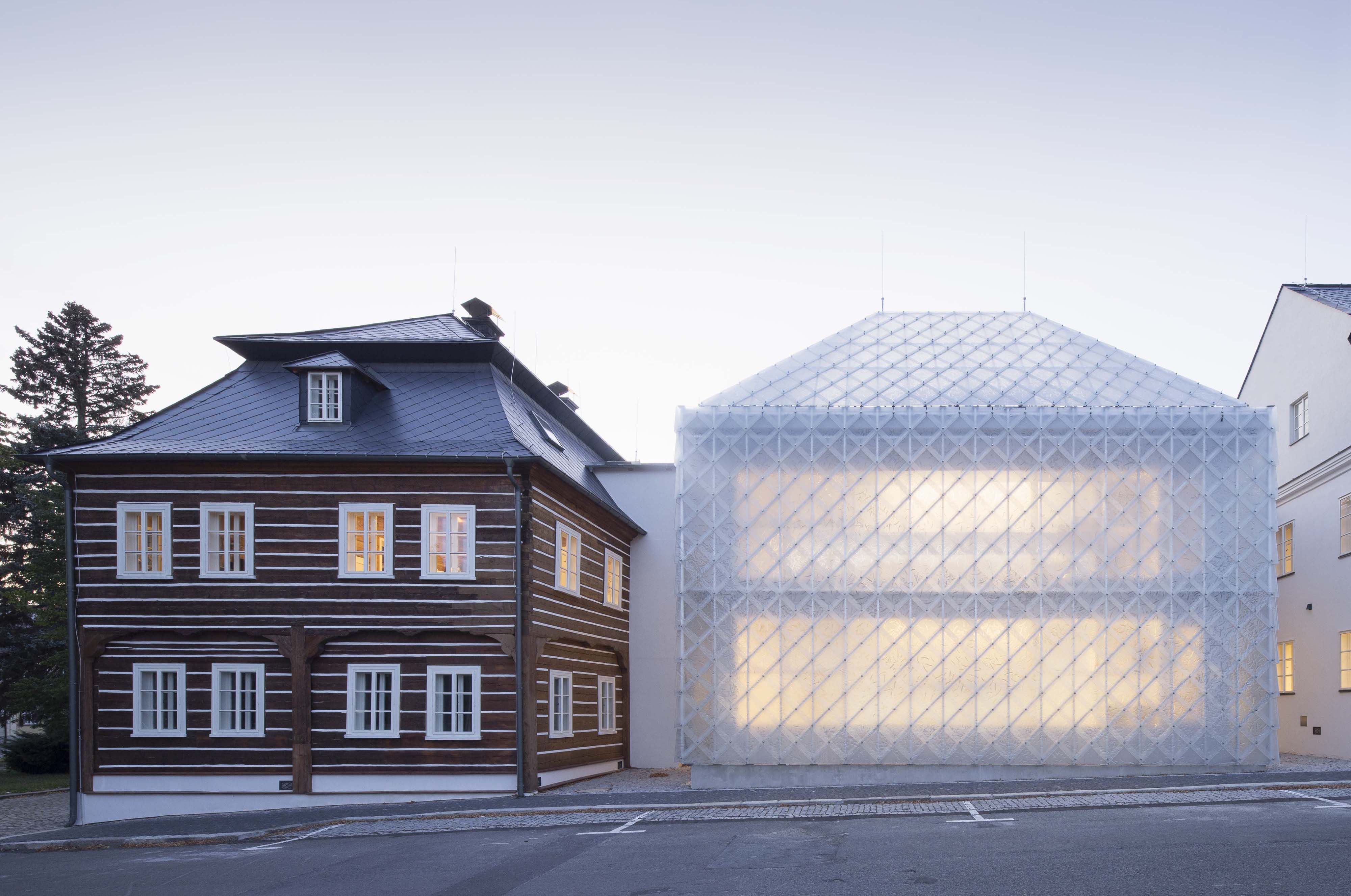 Klient zakúpil historické domy v centre Nového Boru už s úmyslom prestavať ich na svoje sídlo. Domy prešli počas dvestoročnej existencie pestrým stavebným vývojom. “Domy byly historicky sklářskými dílnami, byla zde hospodářská zvířata, bydlelo se v nich. Koncem druhé poloviny dvacátého století zde dokonce byla sklářská škola a byly prohlášeny kulturními památkami,” vysvetľujú architekti.
