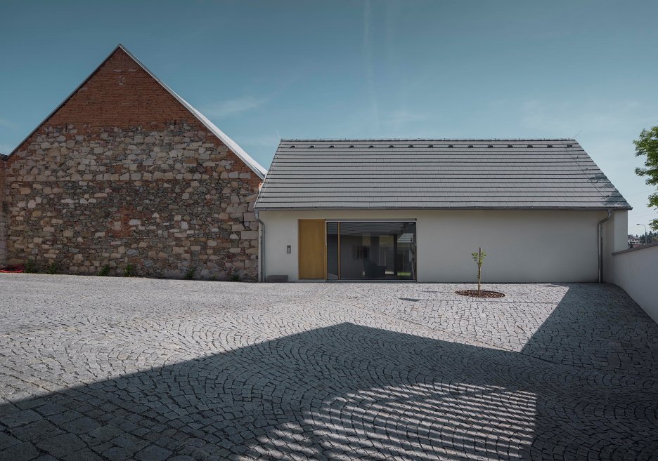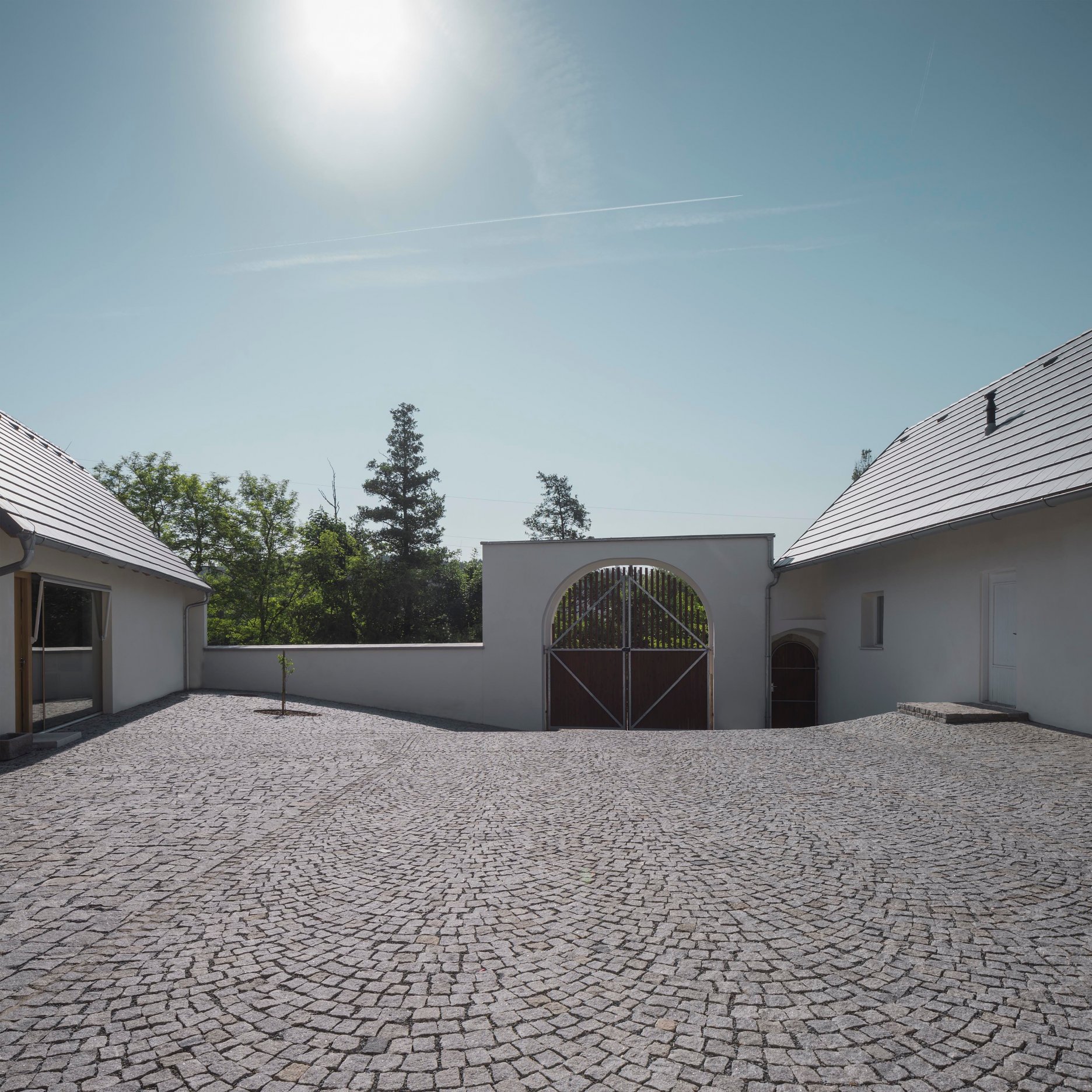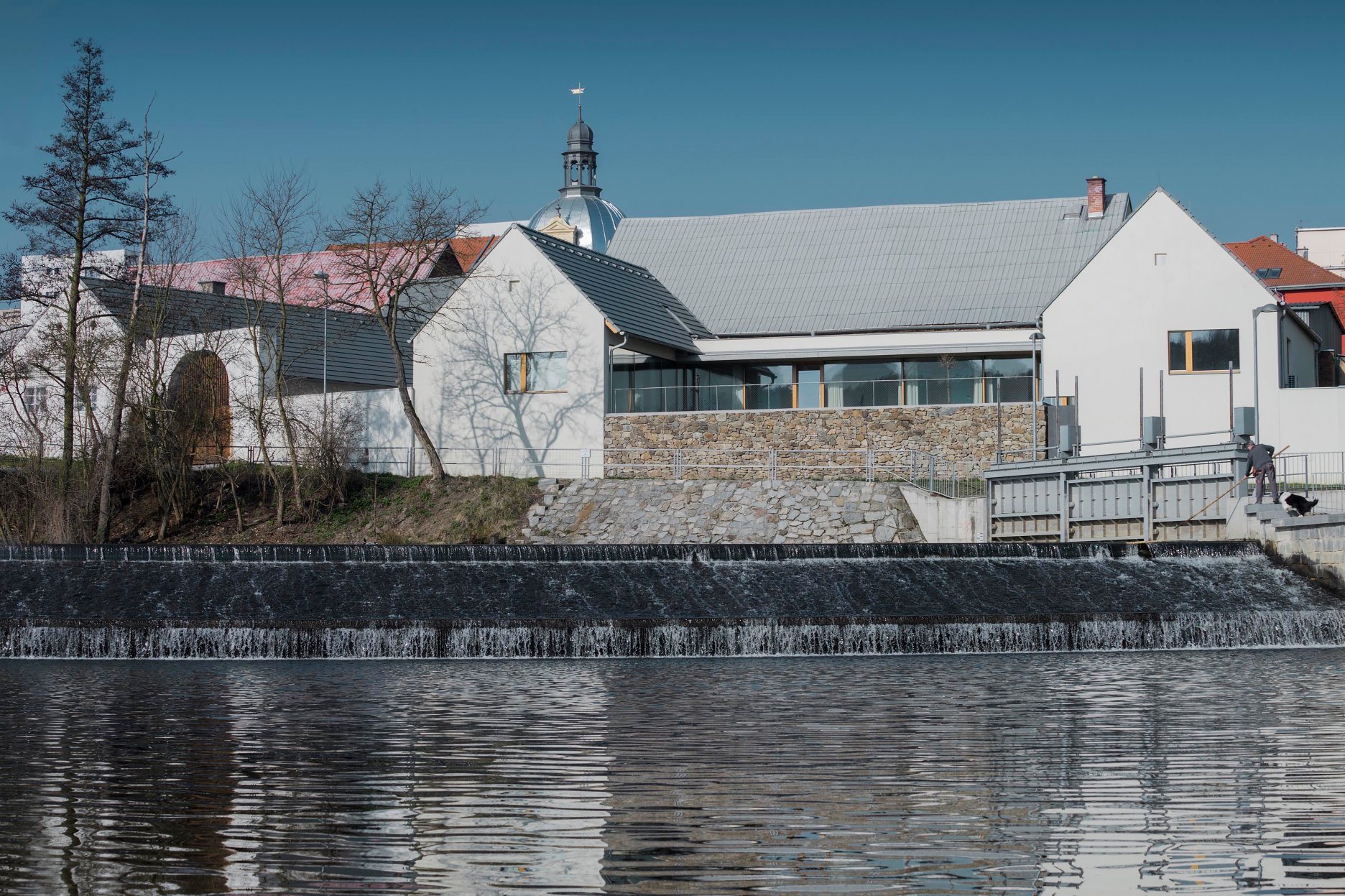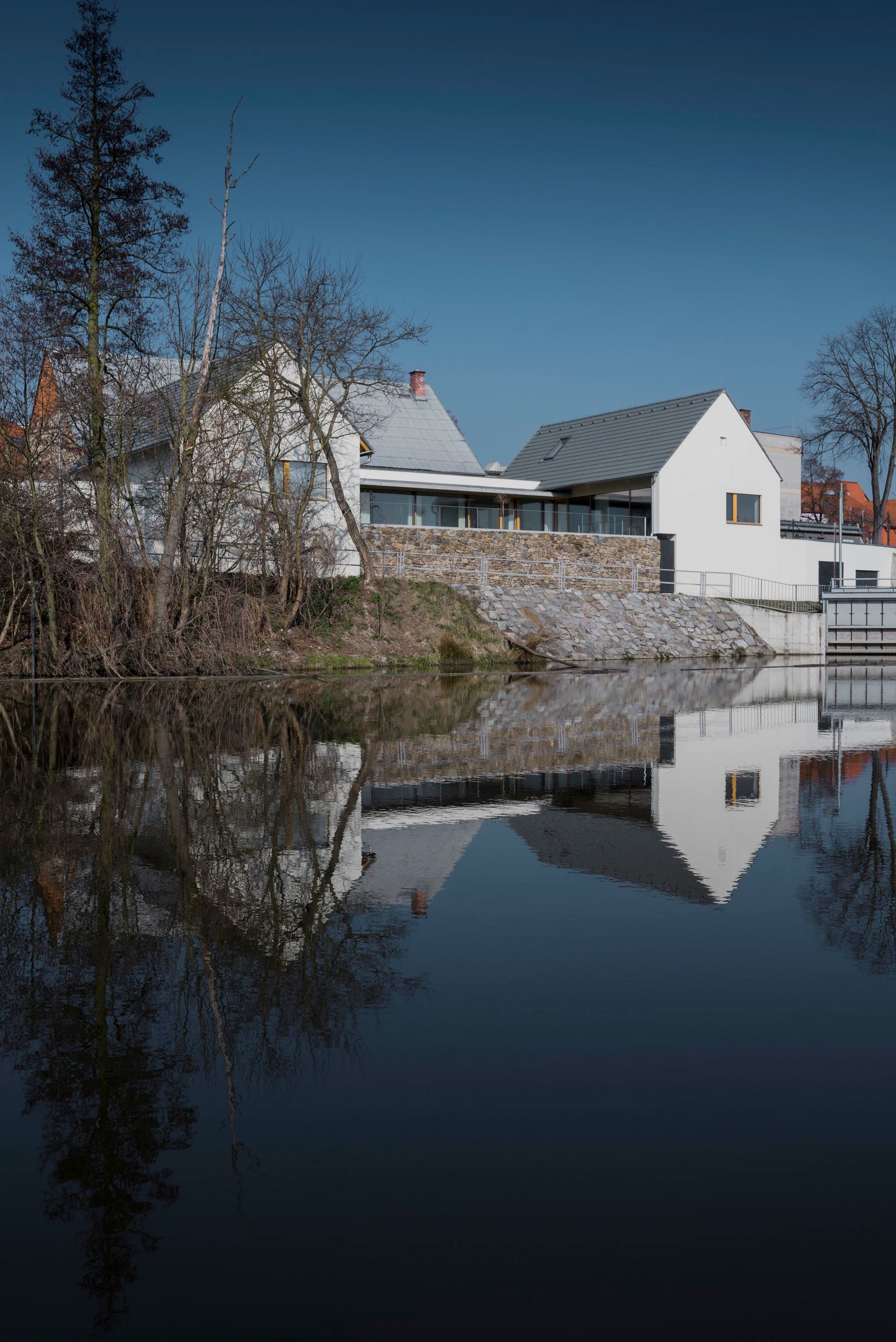 Nová kompozícia firemných objektov nestrháva na seba pozornosť, skôr jemne dopĺňa drobnú štruktúru okolitej zástavby. Forma novostavieb čiastočne vychádza zo stopy historickej zástavby bývalého statku s prejazdným dvorom. Nová je dvojica jednoduchých domov, otvorených širokým priehľadom k rieke. Pôvodná chalupa a stodola boli zrekonštruované a sú dôležitou súčasťou firemného sídla.
