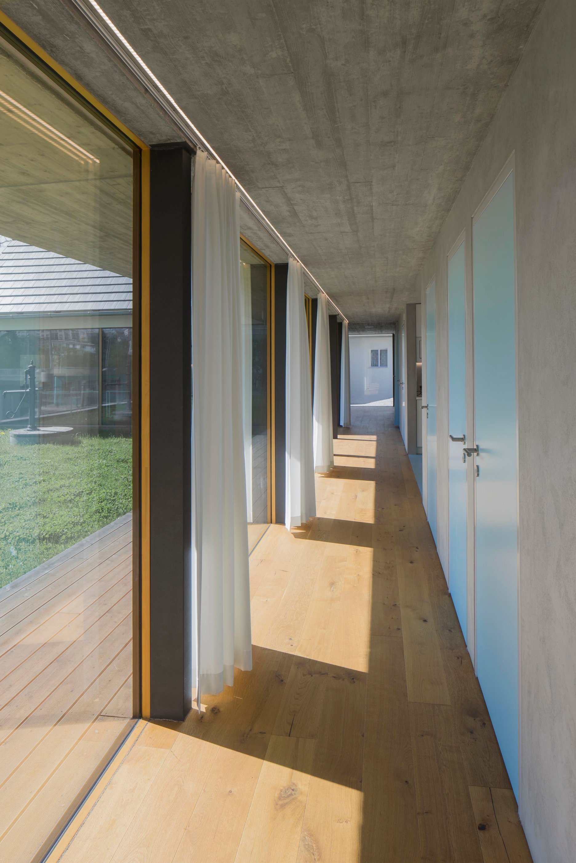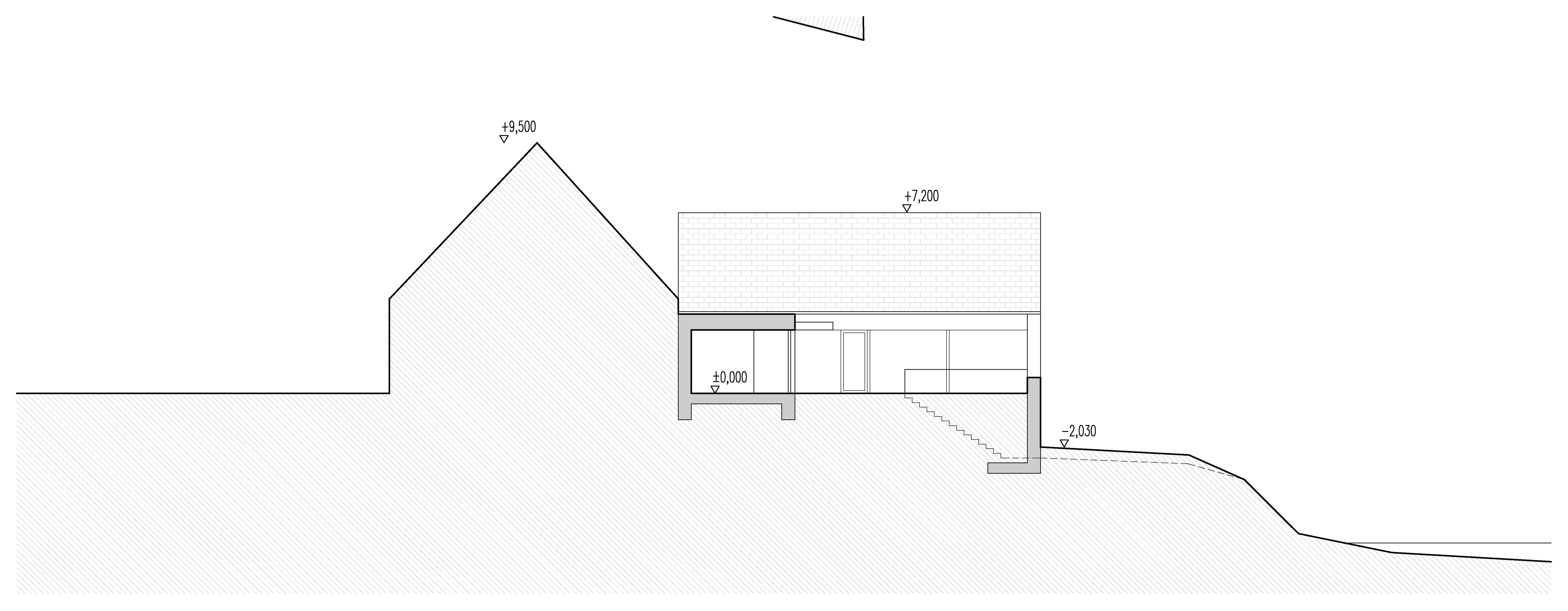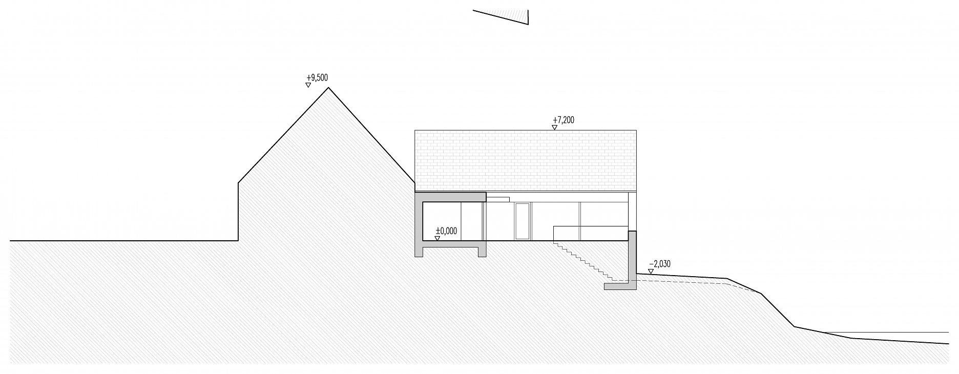“Zadáním stavebníka byl kancelářský dům, sídlo firmy Reno Energie, s důrazem na neformální rodinné prostředí. Naším cílem bylo postavit kanceláře se současným standardem a nepokazit atmosféru chalup u řeky,” pokračujú autori.