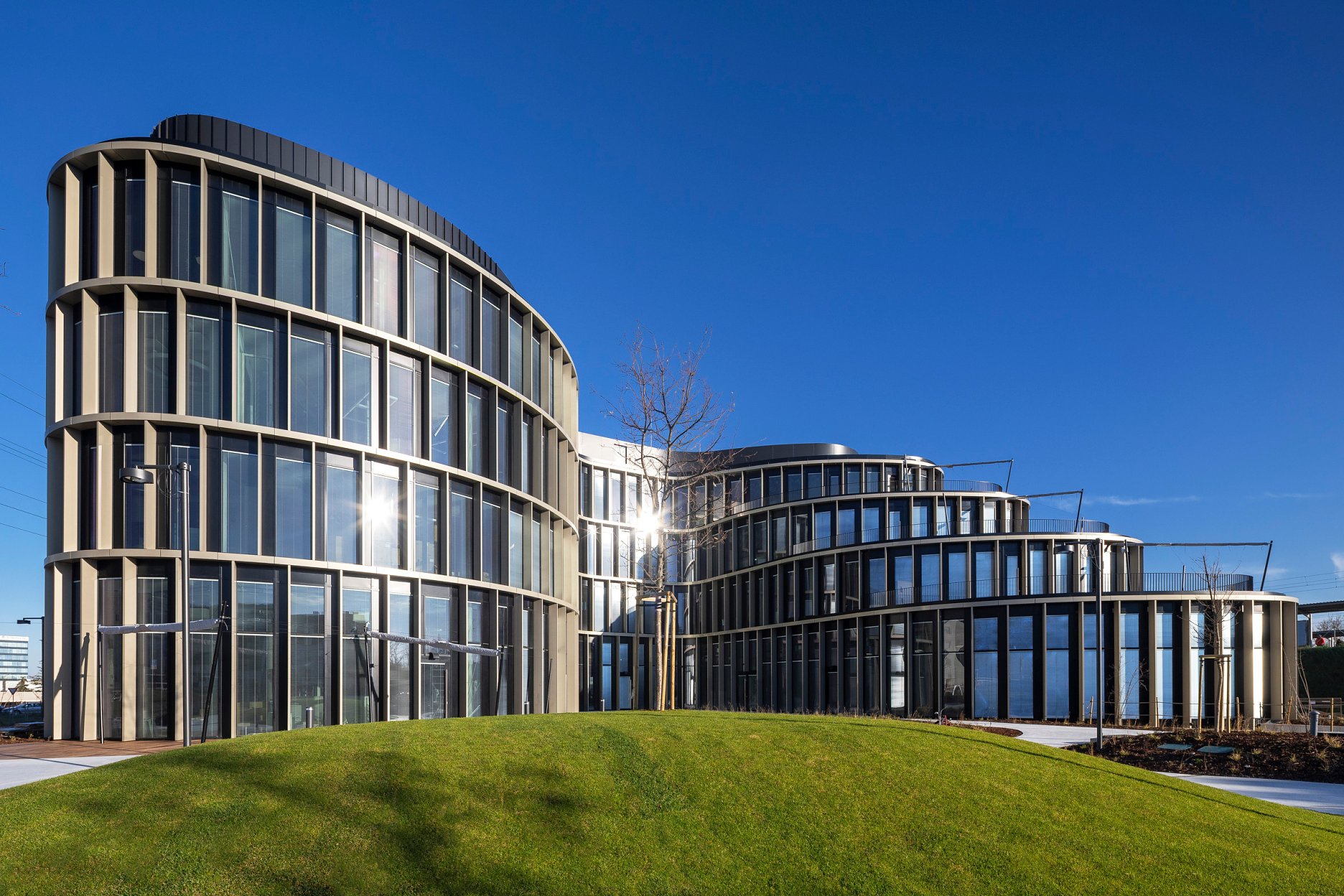 Víťazom sa stal ateliér A.M. architects s koncepciou kompaktného kampusu, voľne tvarovaného okolo centrálneho átria do tvaru písmena U. Zaoblené krídla, vrstvenie hmôt a jemná rytmizácia presklenej fasády dáva sídlu výraz technologicky precíznej, no zároveň ľudskej a mierkou zrozumiteľnej architektúry.