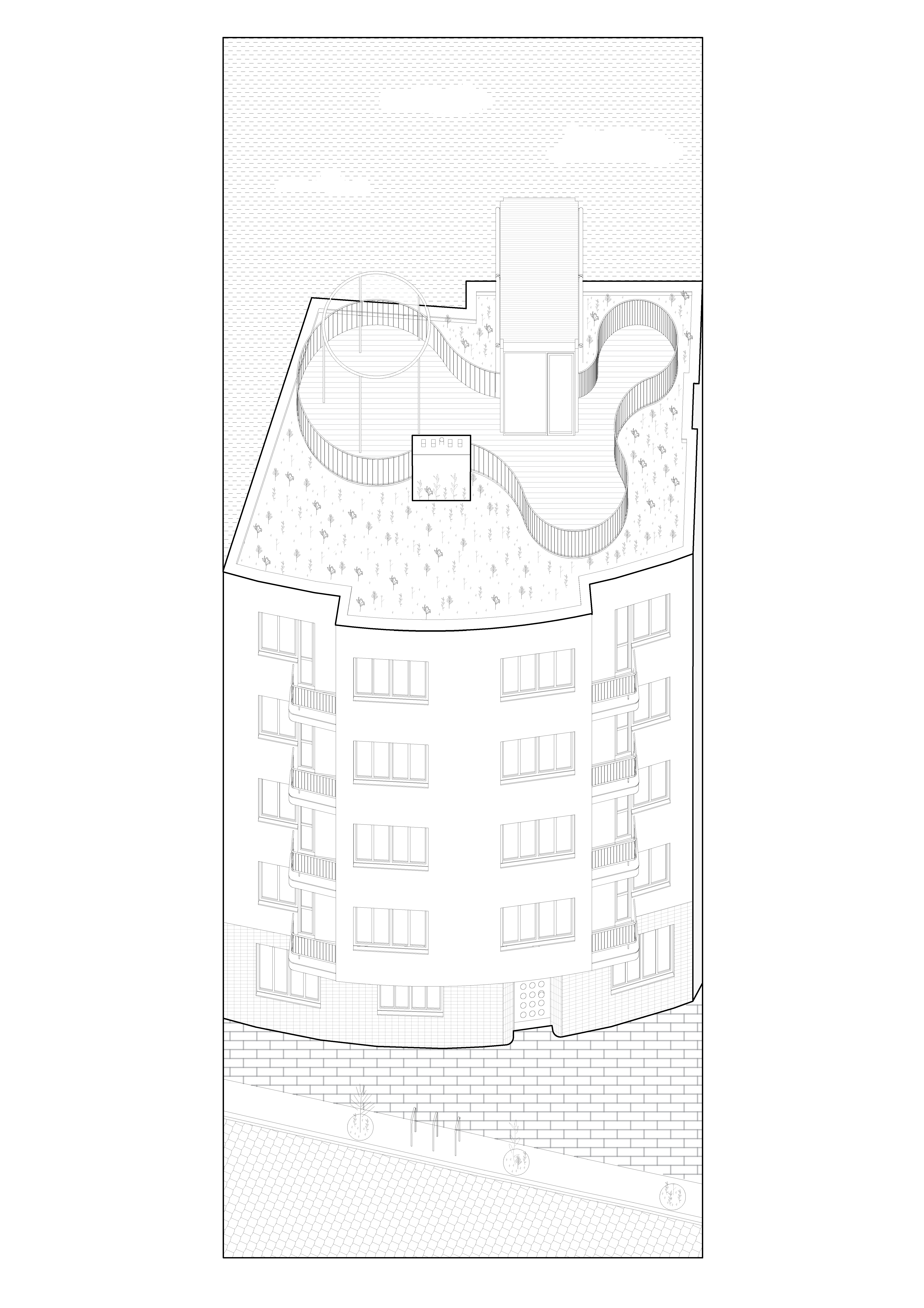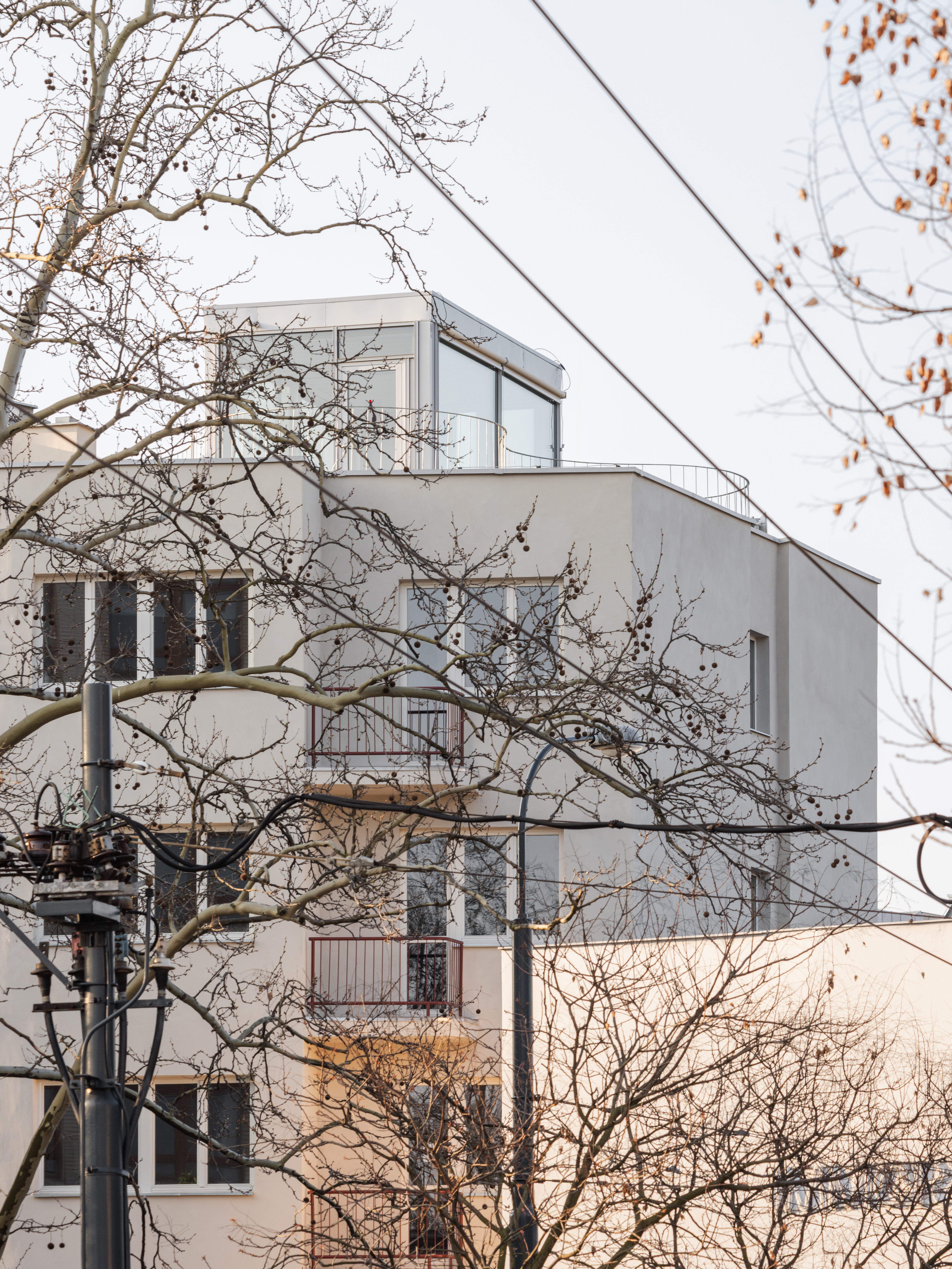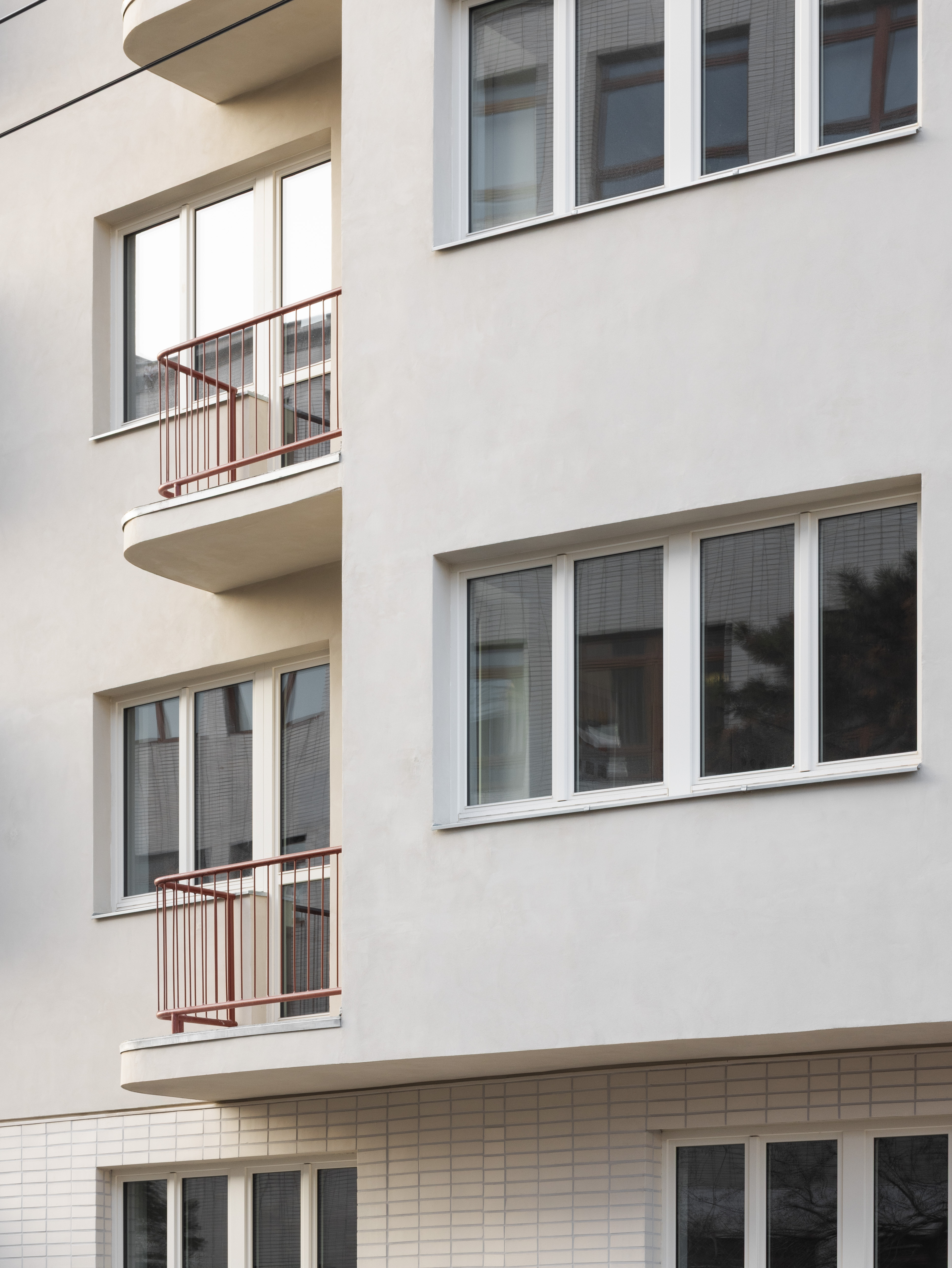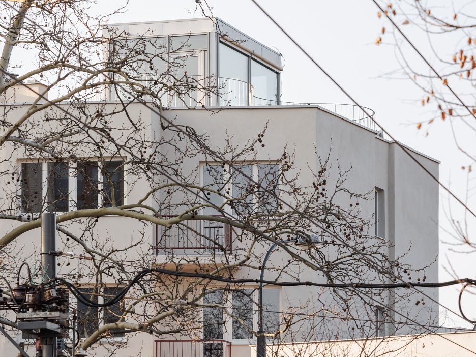 Autori zachovali autentické proporcie a remeselné detaily, pričom fasádu doplnil kvalitnou minerálnou izoláciou, keramickým kabrincovým obkladom v parteri a replikami pôvodných oceľových zábradlí. Nový sklenený výlez a organicky tvarovaná strešná terasa vnášajú do prísnej uličnej zástavby súčasný akcent bez naušenia historickej vrstvy.