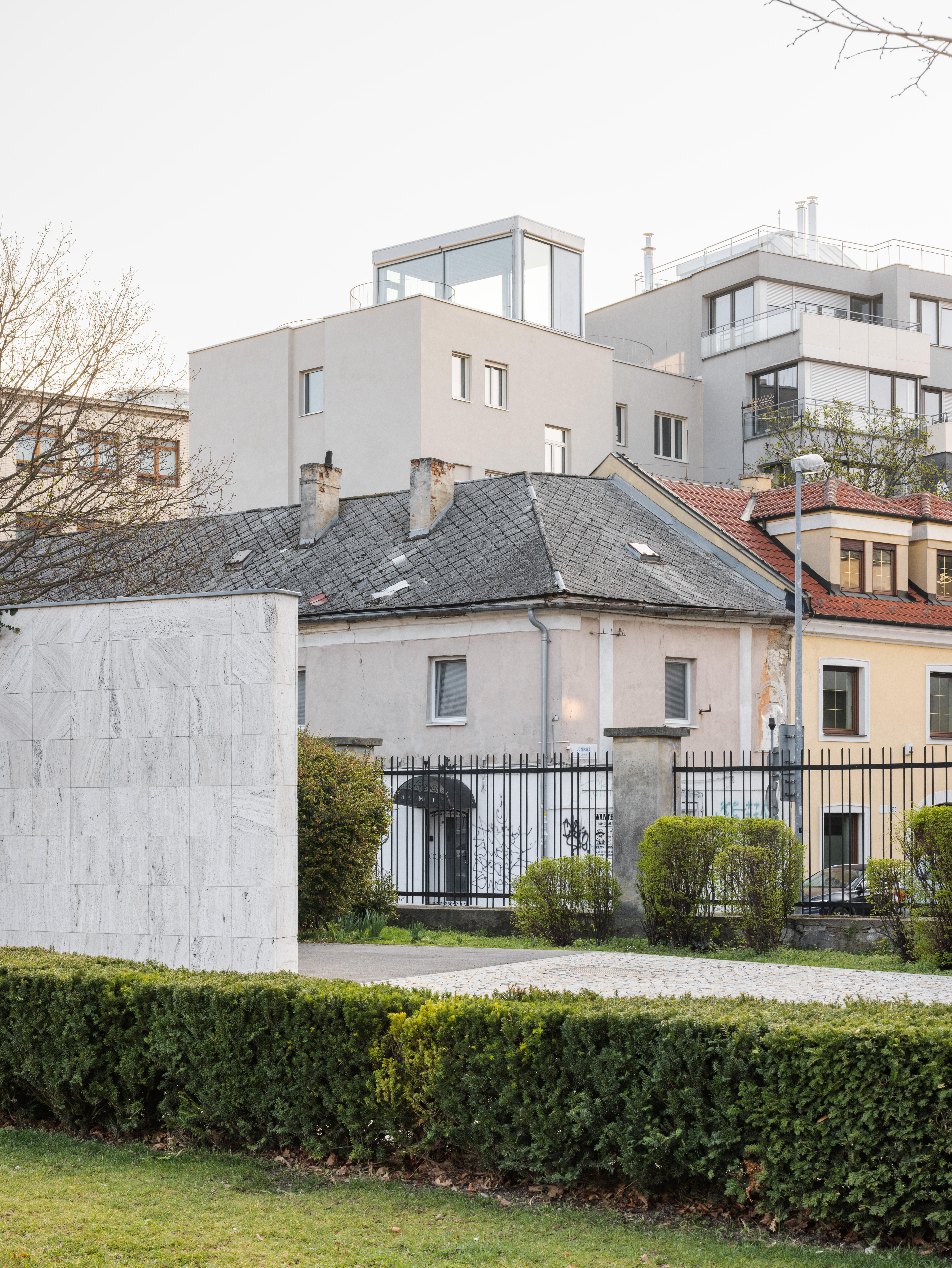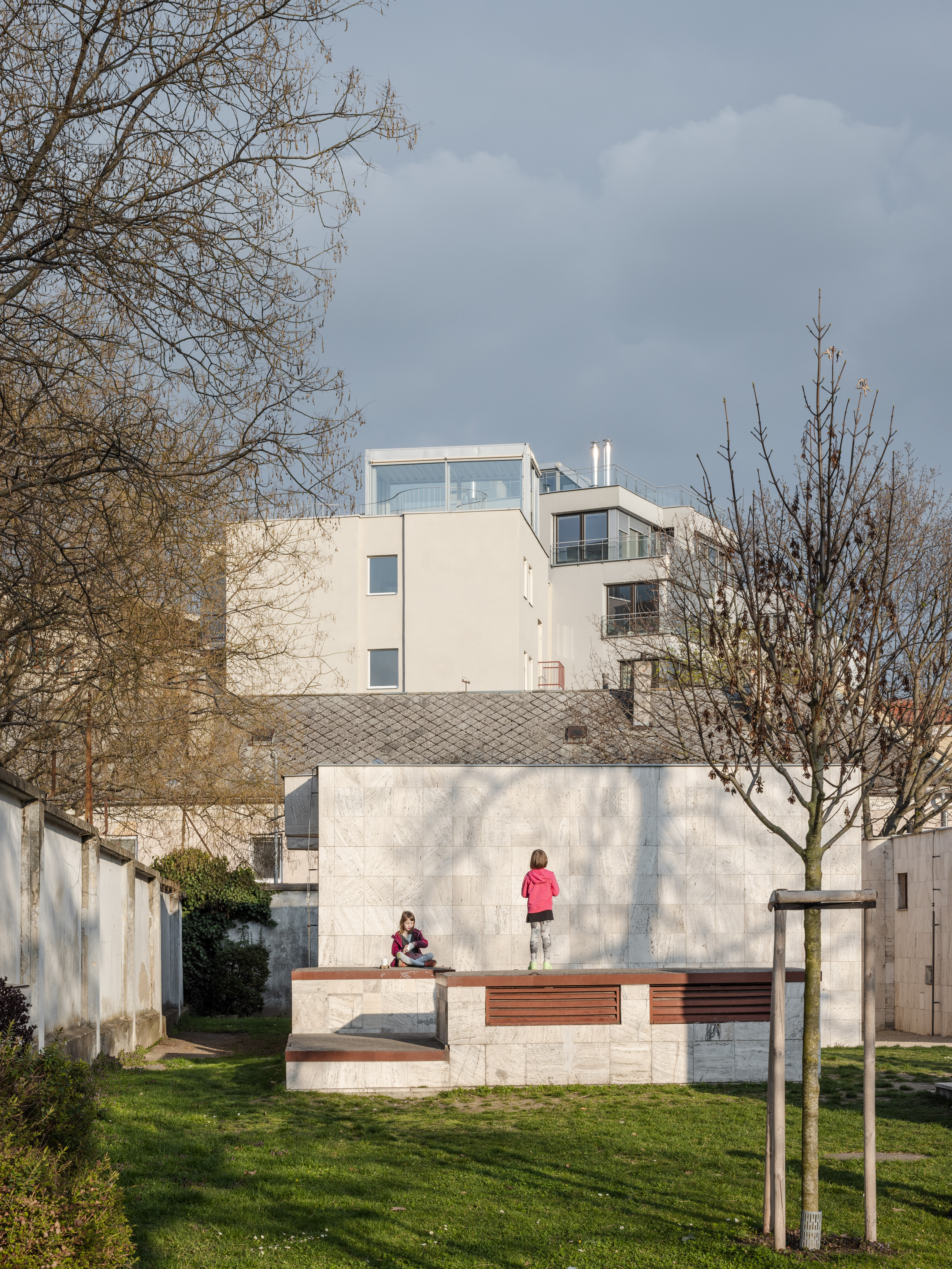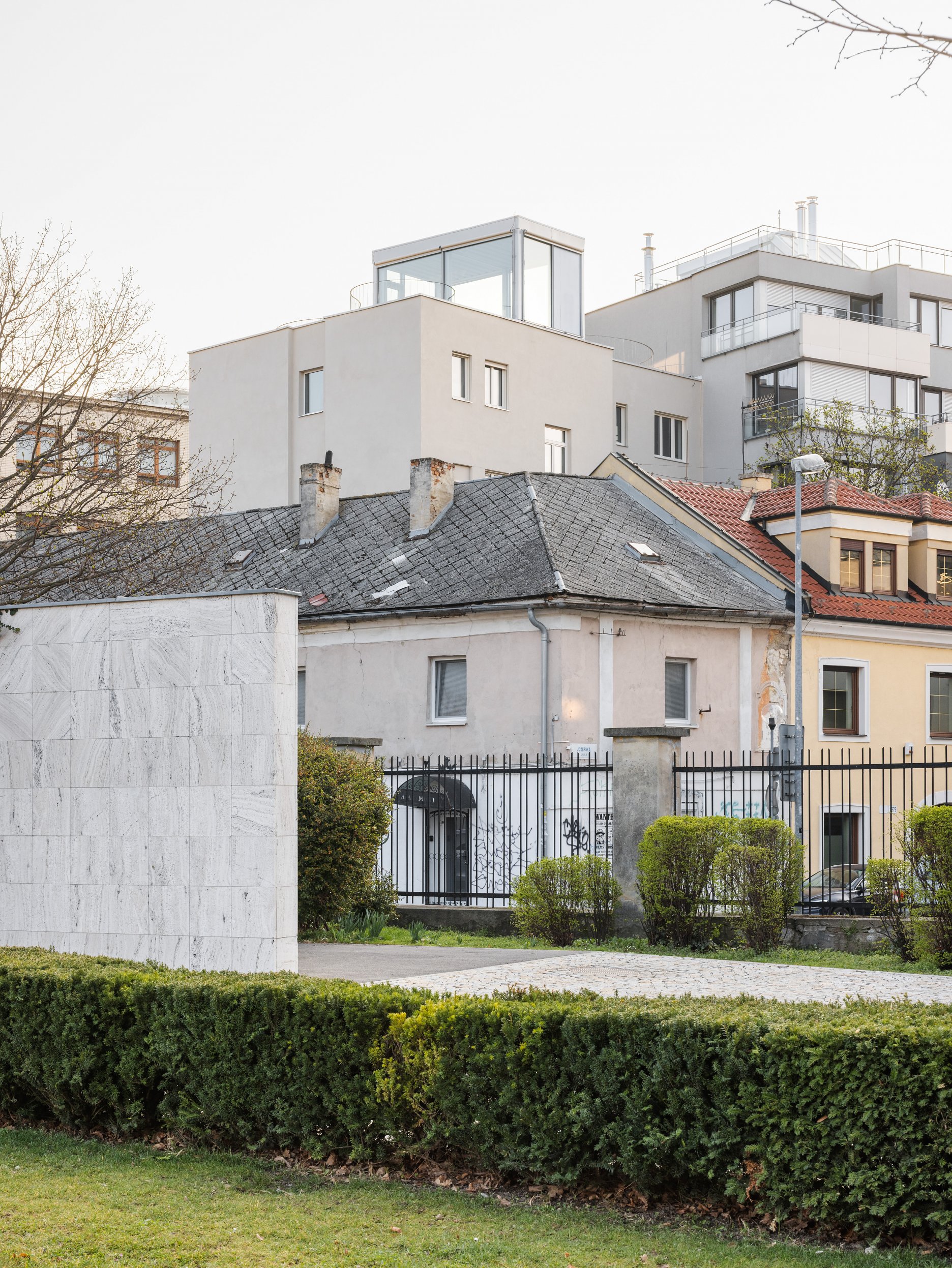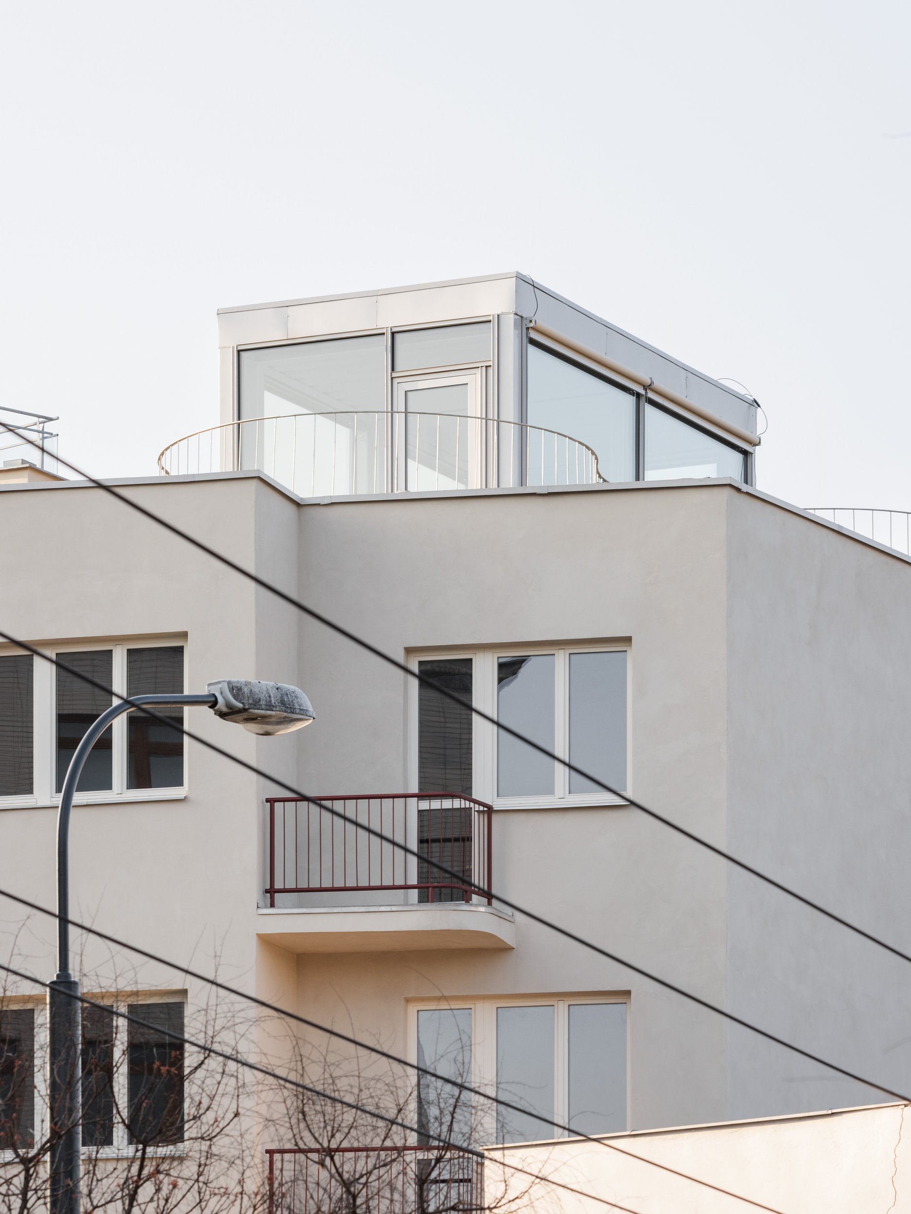 Jasne sme vnímali hodnotu charakteru pôvodného bytového domu a snažili sme sa k nemu pristúpiť s rešpektom a odstrániť všetky nevhodné zásahy. V tomto „obyčajnom“ typickom mestskom dome sme našli zaľúbenie. Ide o typológiu, ktorá sa pomaly, ale isto vytráca z našich ulíc. V rámci I. etapy rekonštrukcie došlo ku kompletnej obnove fasády, k výmene pôvodných plastových okien a dverí za drevené a k úprave strechy a strešného plášťa. Súčasne bol realizovaný presklený výlez na strechu a pobytová strešná terasa. Výlez na strechu je jediný novodobý prvok, ktorý je jasne architektonicky odčlenený od zvyšku objektu svojím výrazom, materialitou,…