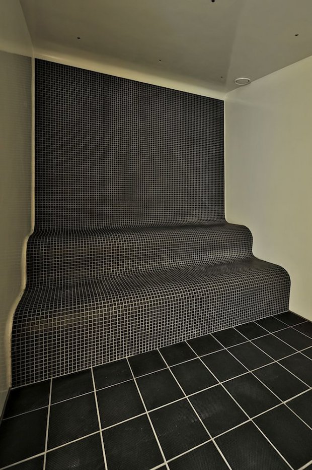 Fascinujúce je najmä ich minimalistické poňatie so stropmi z pohľadového betónu doplnené o typicky škandinávsky brezový akustický obklad. Jediným grafickým výstrelkom, ak sa to dá vôbec tak nazvať, ktorý narúša dokonalú jednoduchosť priestoru, sú rôzne skrátené drevené lamely. Vytvárajú nepravidelnú krivku, ktorá necháva fantázii voľný priebeh, či už v nej vidíte rytmus srdca, siluetu mesta, vrcholce stromov, alebo niečo iné.