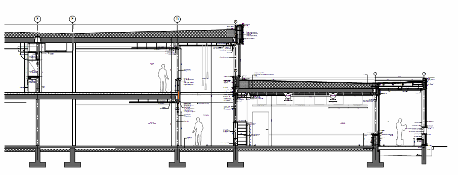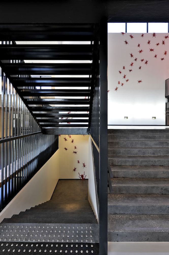 Dynamiku získava priestor nielen vďaka výraznej červenej čelnej stene východného krídla, ale najmä vďaka viacúrovňovému usporiadaniu. Živá komunikácia tak môže prebiehať na rôznych výškových úrovniach.