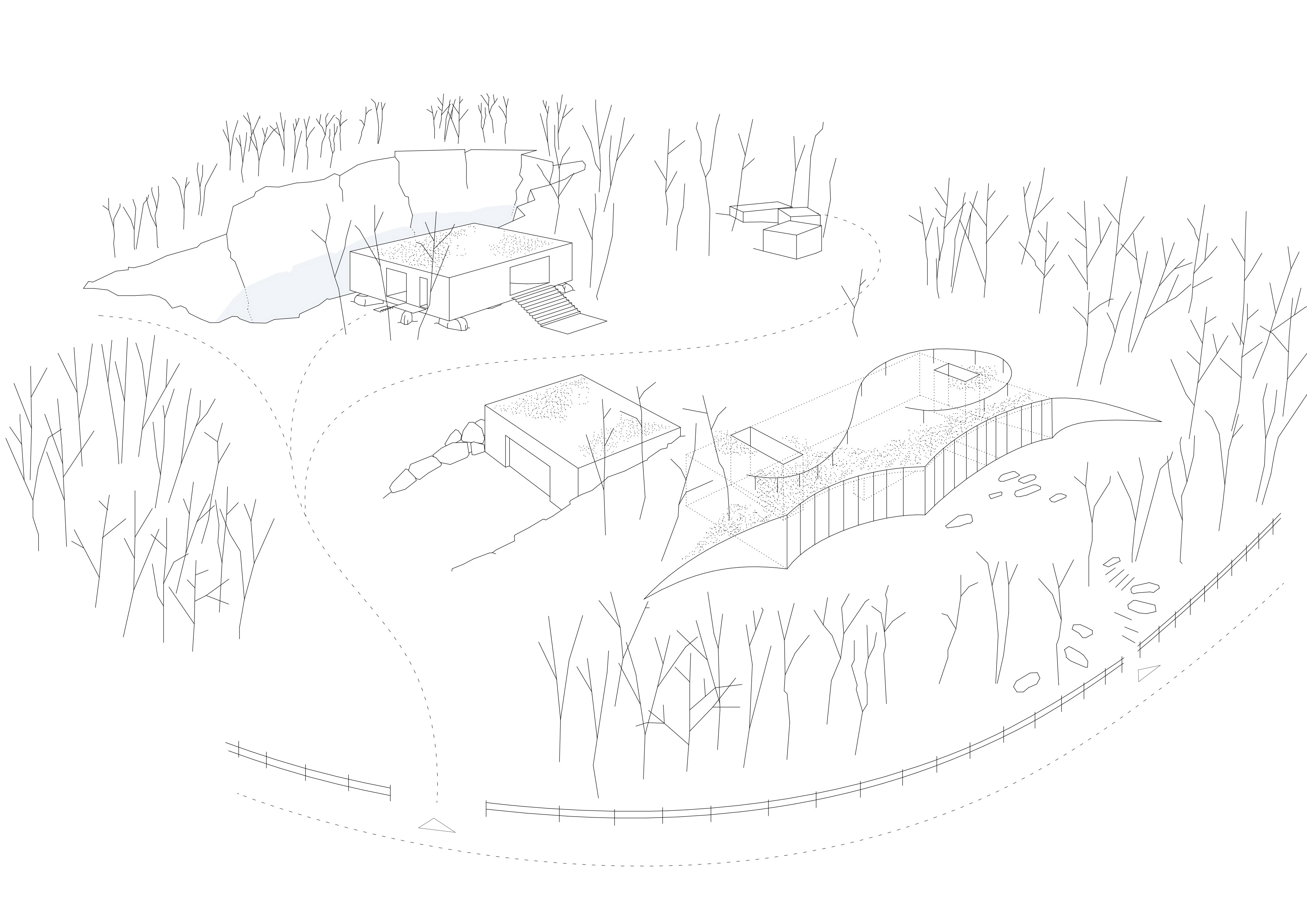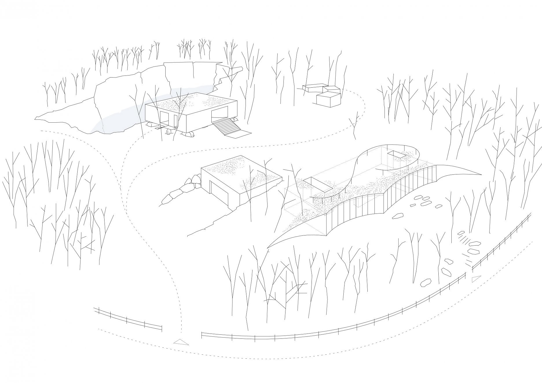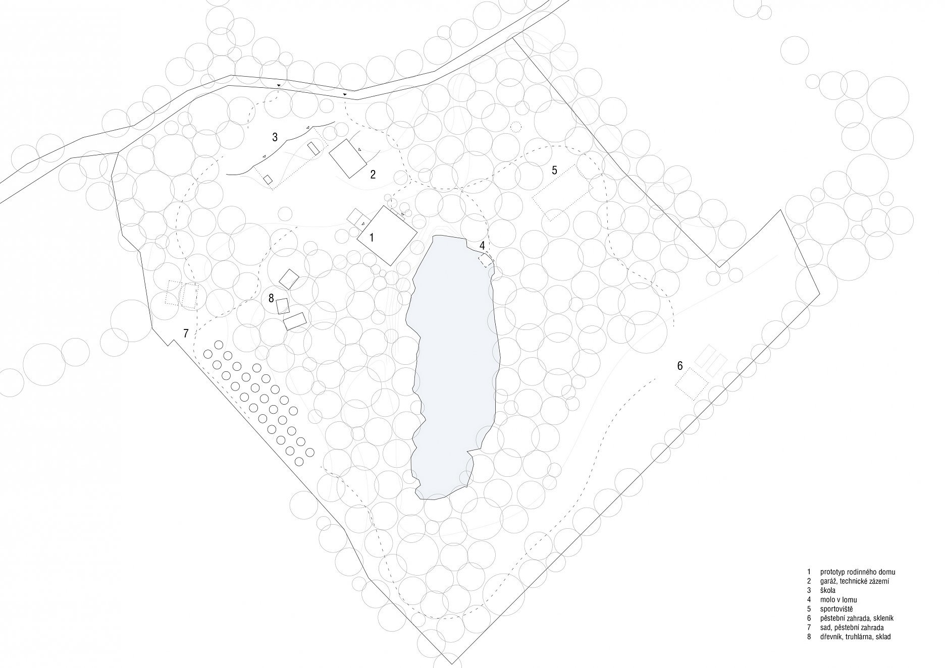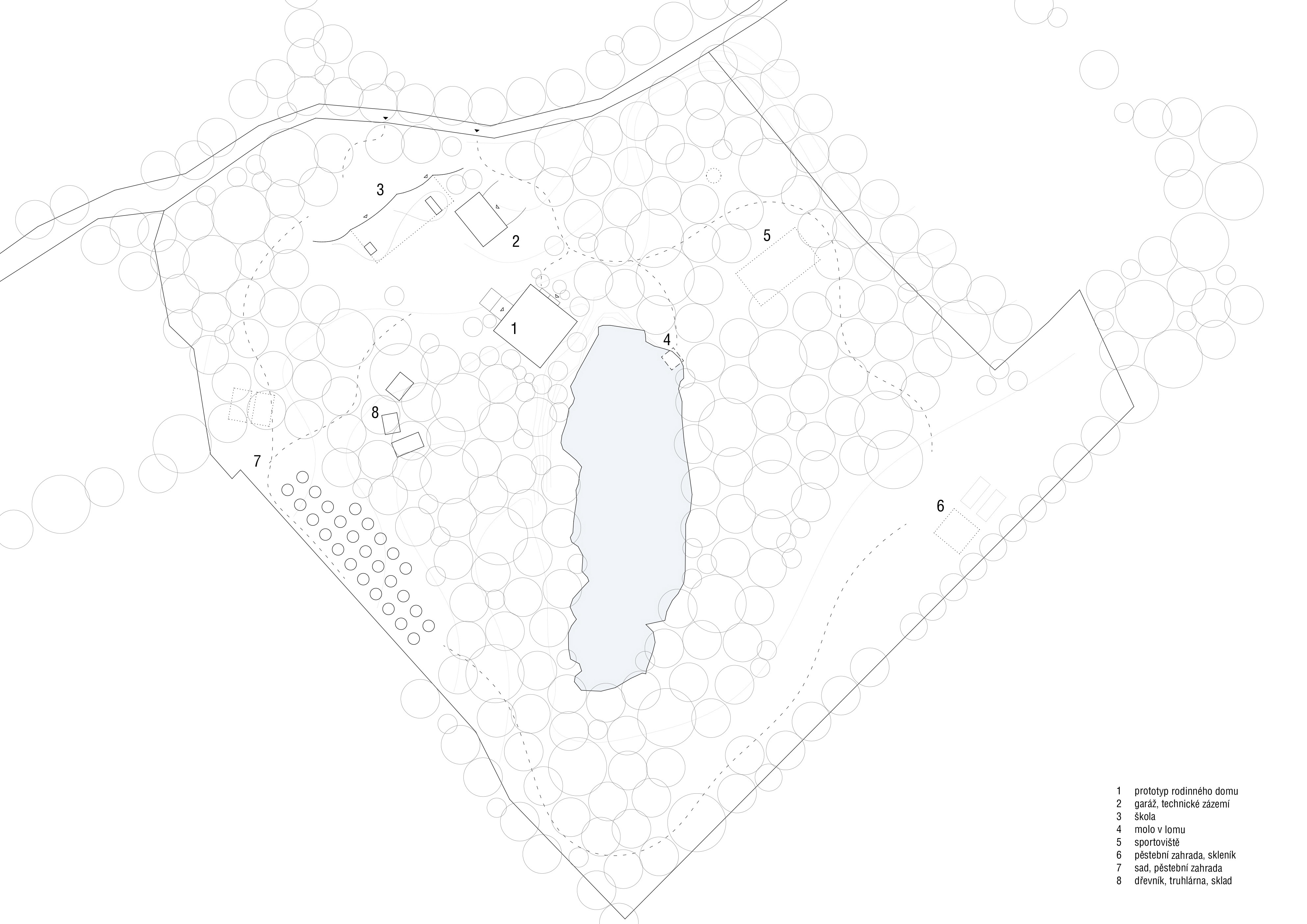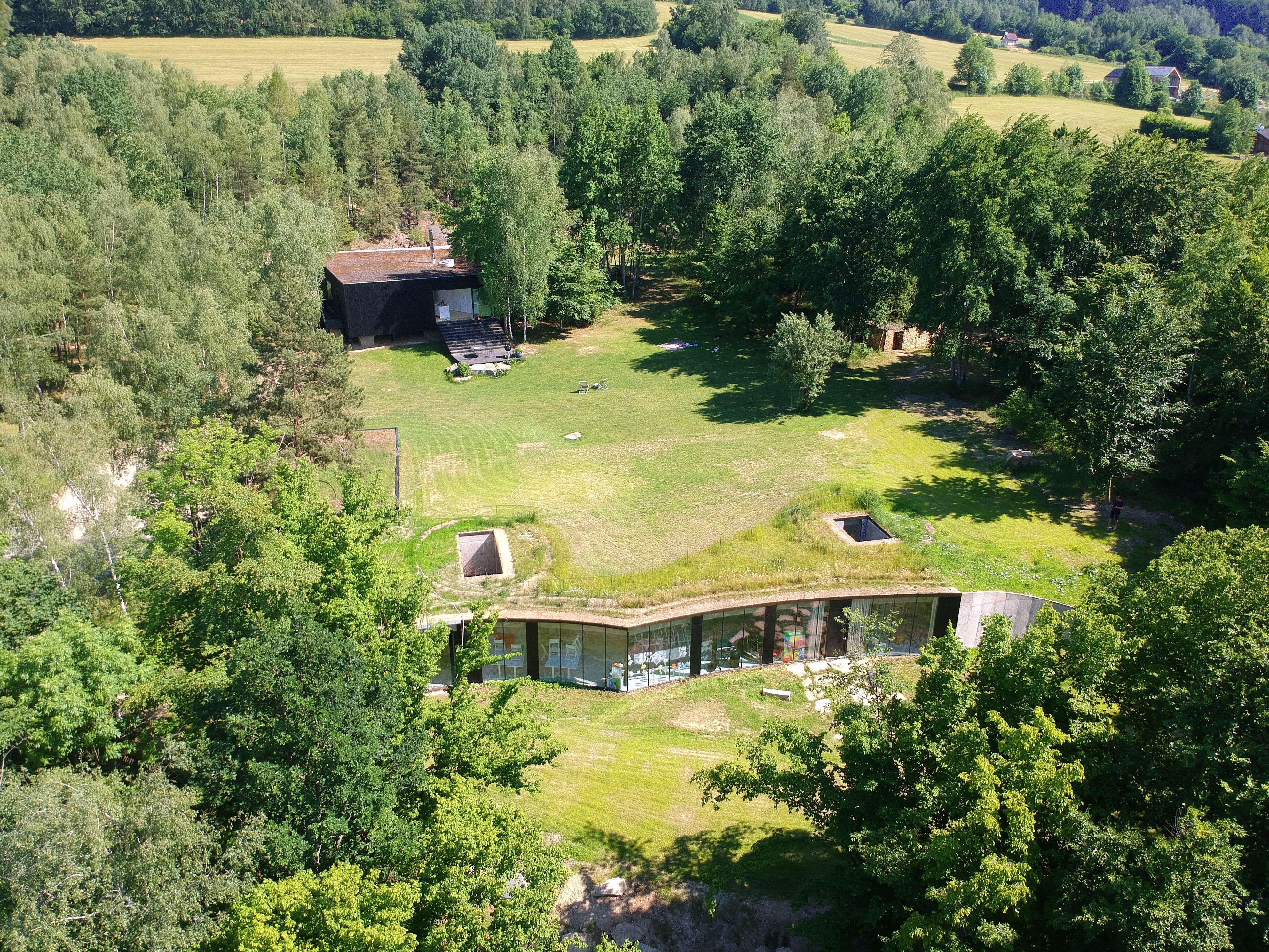 Na pozemku okolo zatopeného lomu v českom regióne Posázaví postupne vzniká súbor drobných stavieb, dopĺňajúcich bývanie v dome na hrane lomu. Investor sa rozhodol pre svoje ratolesti a deti z okolia postaviť alternatívnu školu. Priestory pre vzdelanie ďalej rozšíril pre aktivity svojej ženy. Školu tak dopĺňa dielňa, ordinácia východnej medicíny a priestor pre jogu.