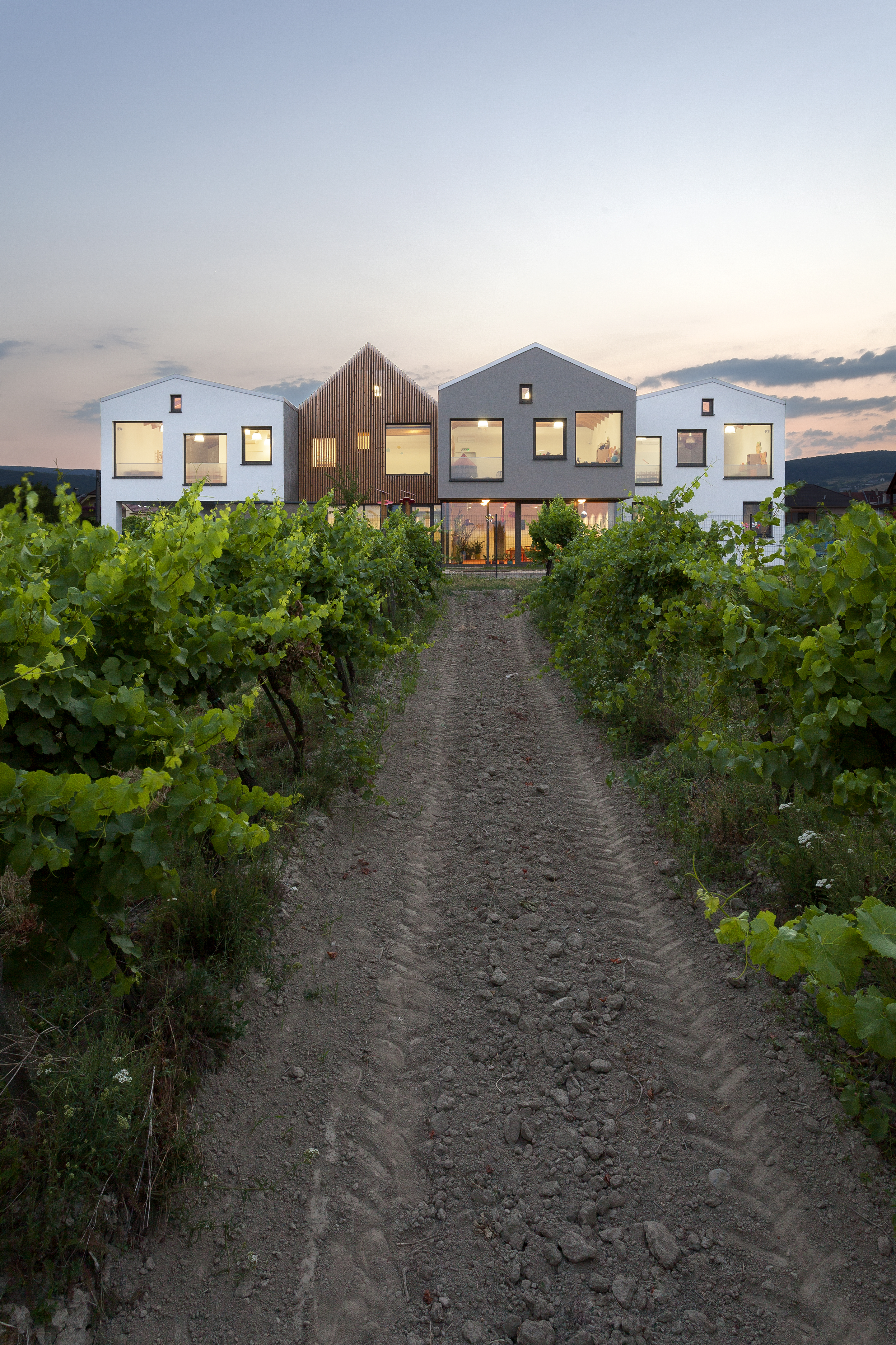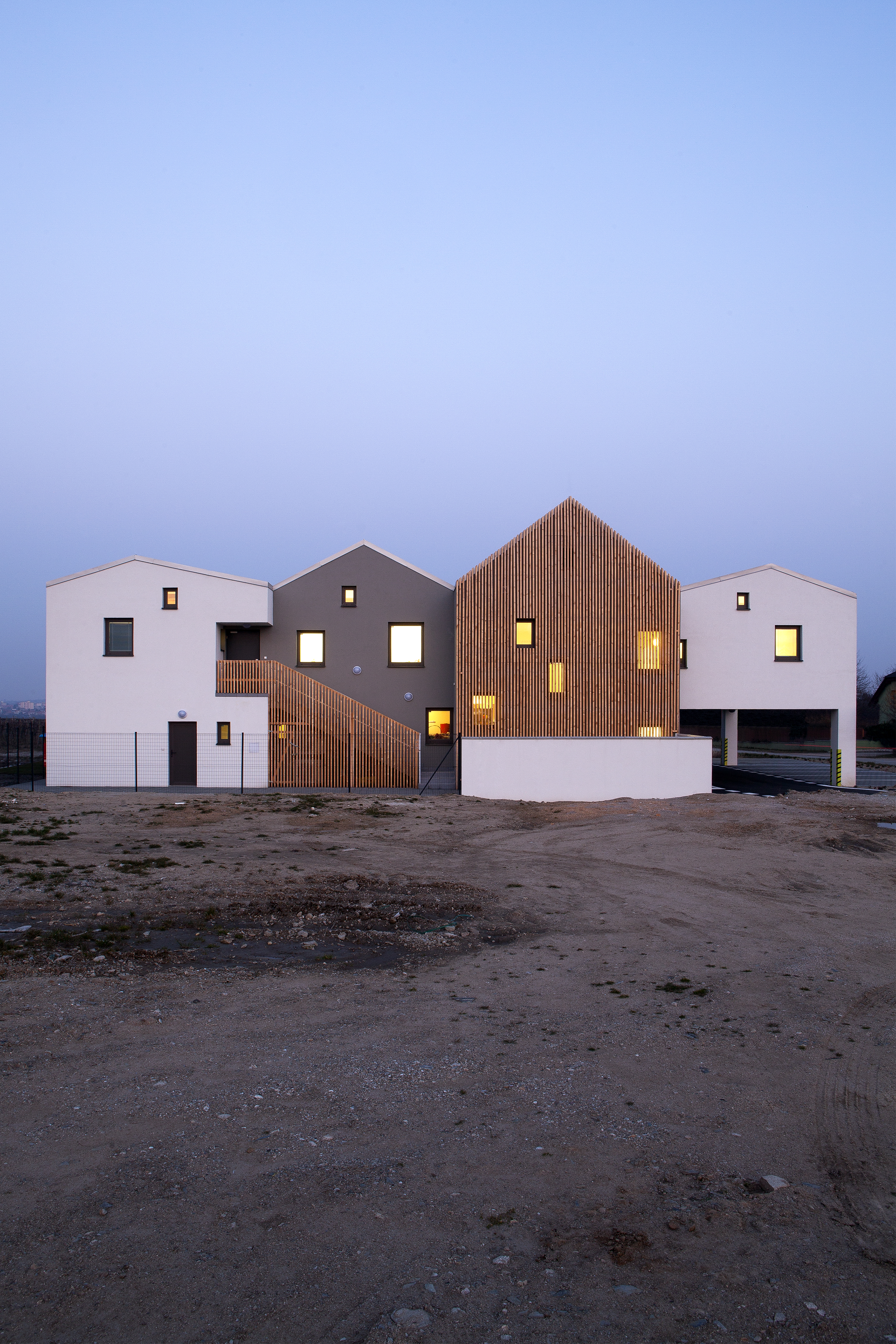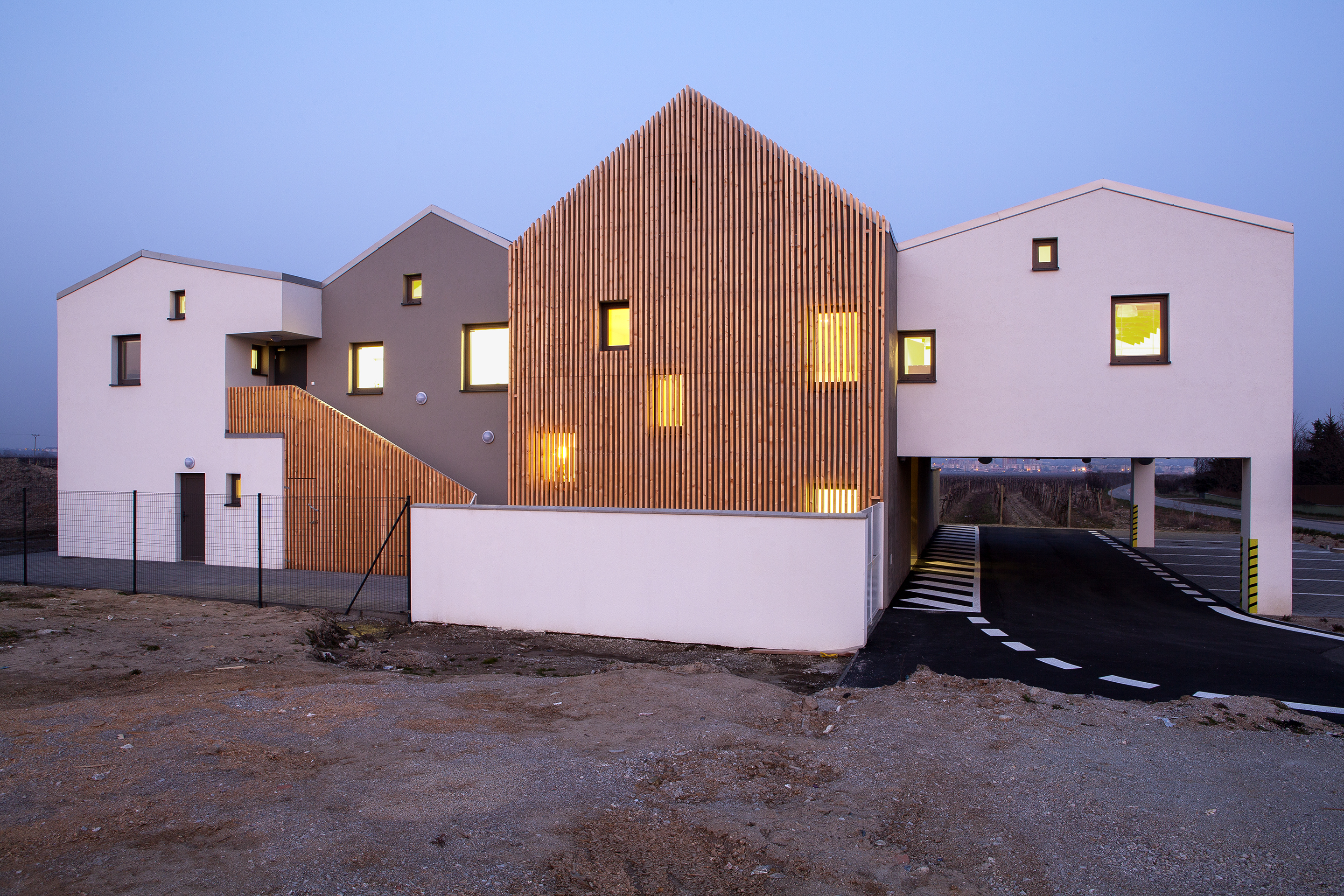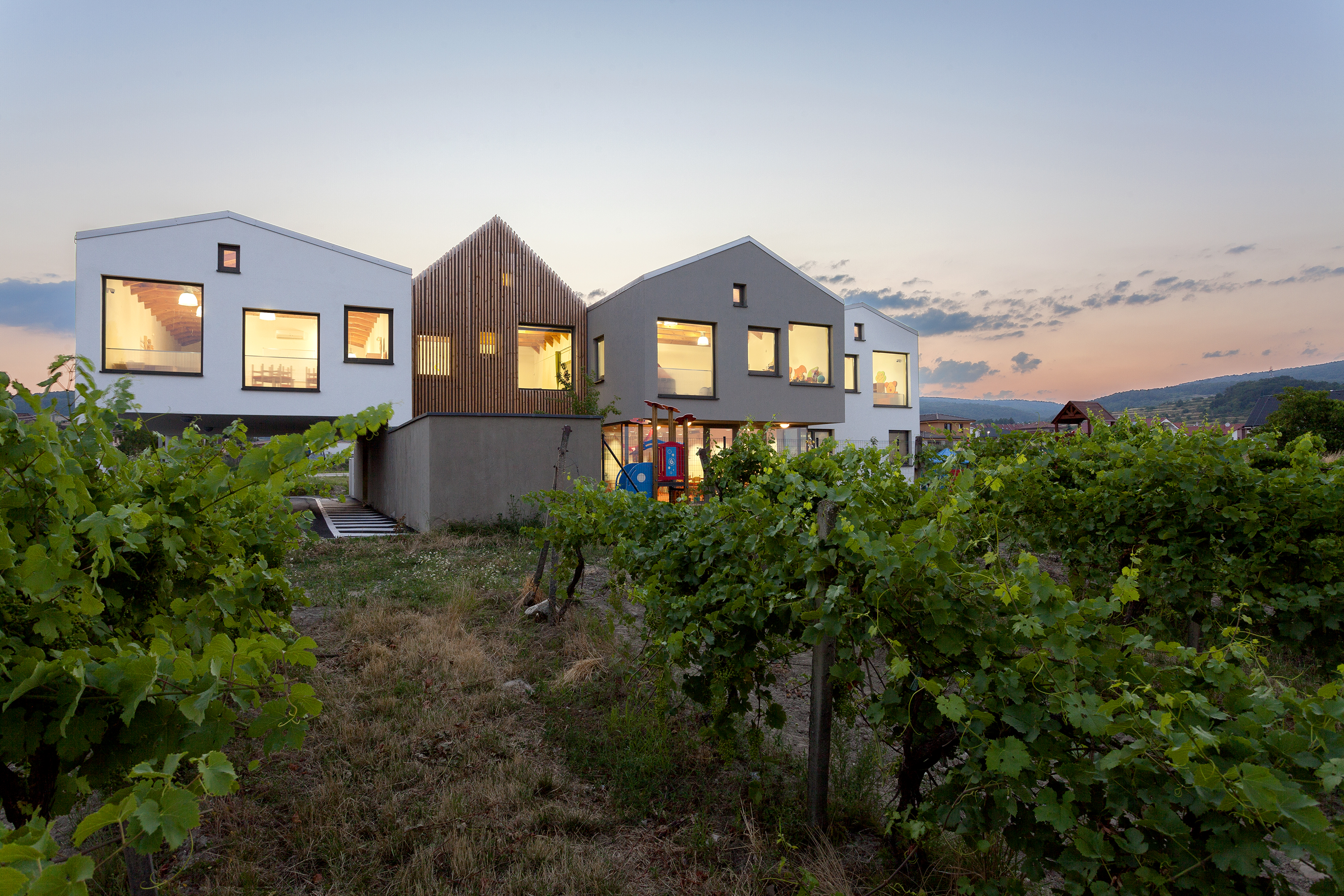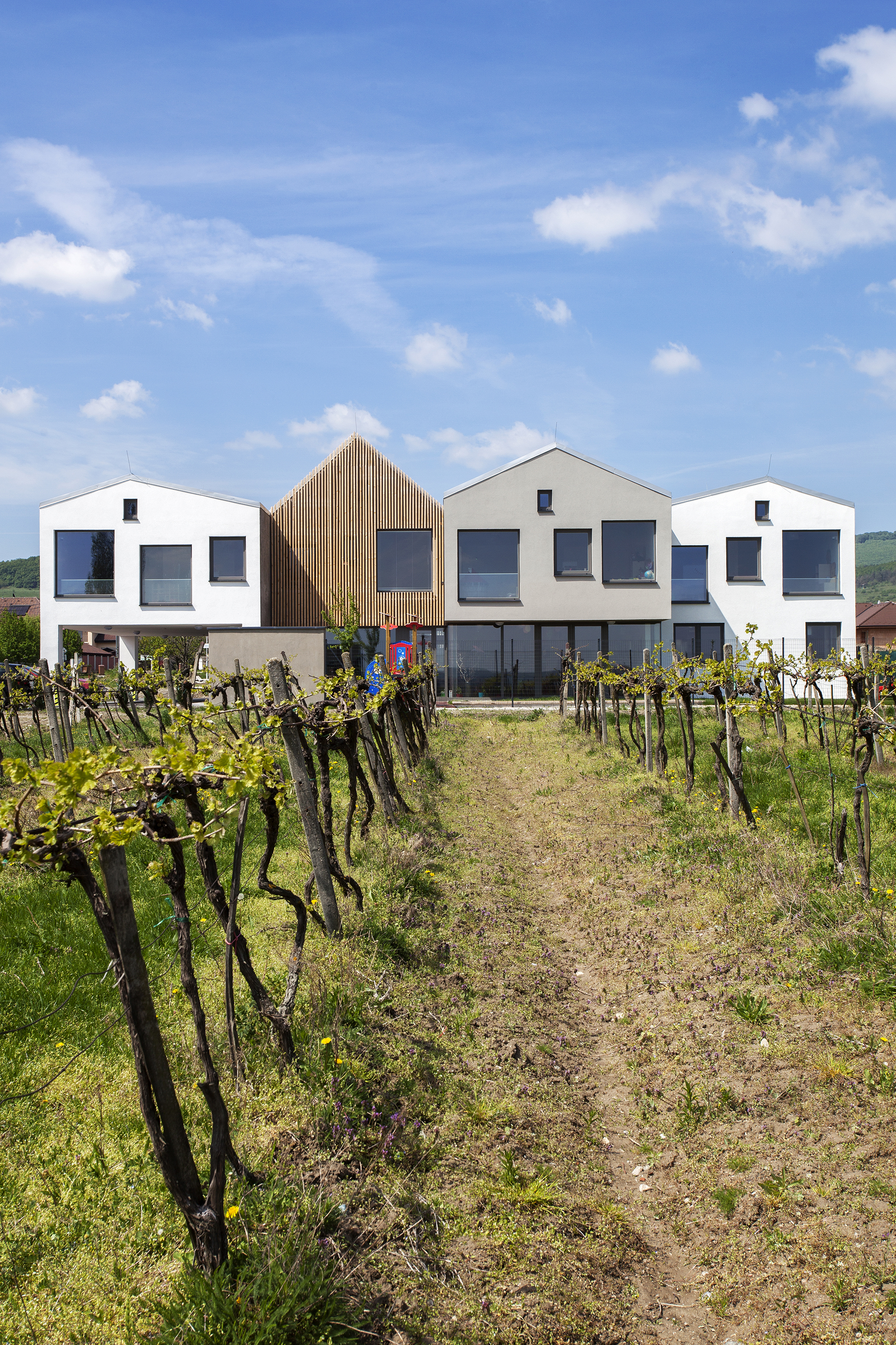 Navrhnúť škôlku pre 40 detí na extrémne malom pozemku vo vinárskej obci Limbach bolo pre nás náročným, ale zaujímavým zadaním. Na ploche pozemku s rozlohou iba 935 m2 sme museli umiestniť triedy pre deti, spoločenskú miestnosť, kanceláriu riaditeľa, kuchyňu so zázemím, plochy na hranie a parkovanie pre rodičov a personál. Umiestnenie tried na horné poschodie sa ukázalo nakoniec ako jediné možné riešenie. Škôlka má tri pavilóny: trieda pre 3-deti (kapacita 10 detí), trieda pre 4-5-ročné (kapacita 20 detí), trieda pre6-ročné (kapacita 10 detí). Technická časť sa dokonca nachádza pre nedostatok miesta až v najvyššej podkrovnej časti nad hlavným schodiskom. Hlavným vizuálnym prvkom objektu sa stal pre deti ľahko zrozumiteľný motív domu so šikmou strechou a s hravými okennými otvormi. Juhovýchodná orientácia okien do vinohradu vytvára priamy kontakt s vinicou a opticky tak zväčšuje menšie zelené plochy okolo škôlky.