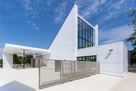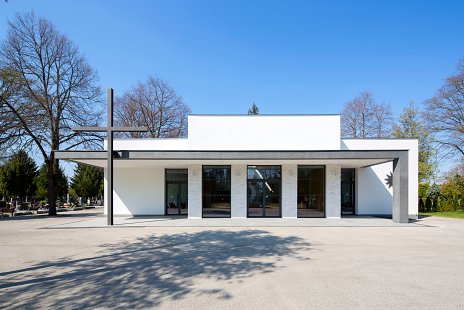 Dominantou v areáli naďalej ostáva kostol svätého Ducha so zvonicou a historickým kamenným múrom. Nová časť cintorína nadviazala na túto líniu, oplotenie však kopíruje klesajúci terén. Novostavba rozlúčkovej siene v tejto línii pokračuje a stavba sa tak stáva súčasťou panorámy okolitej krajiny. Na severnej strane je obdobne navrhnuté oplotenie novej regulovanej parkovacej plochy.