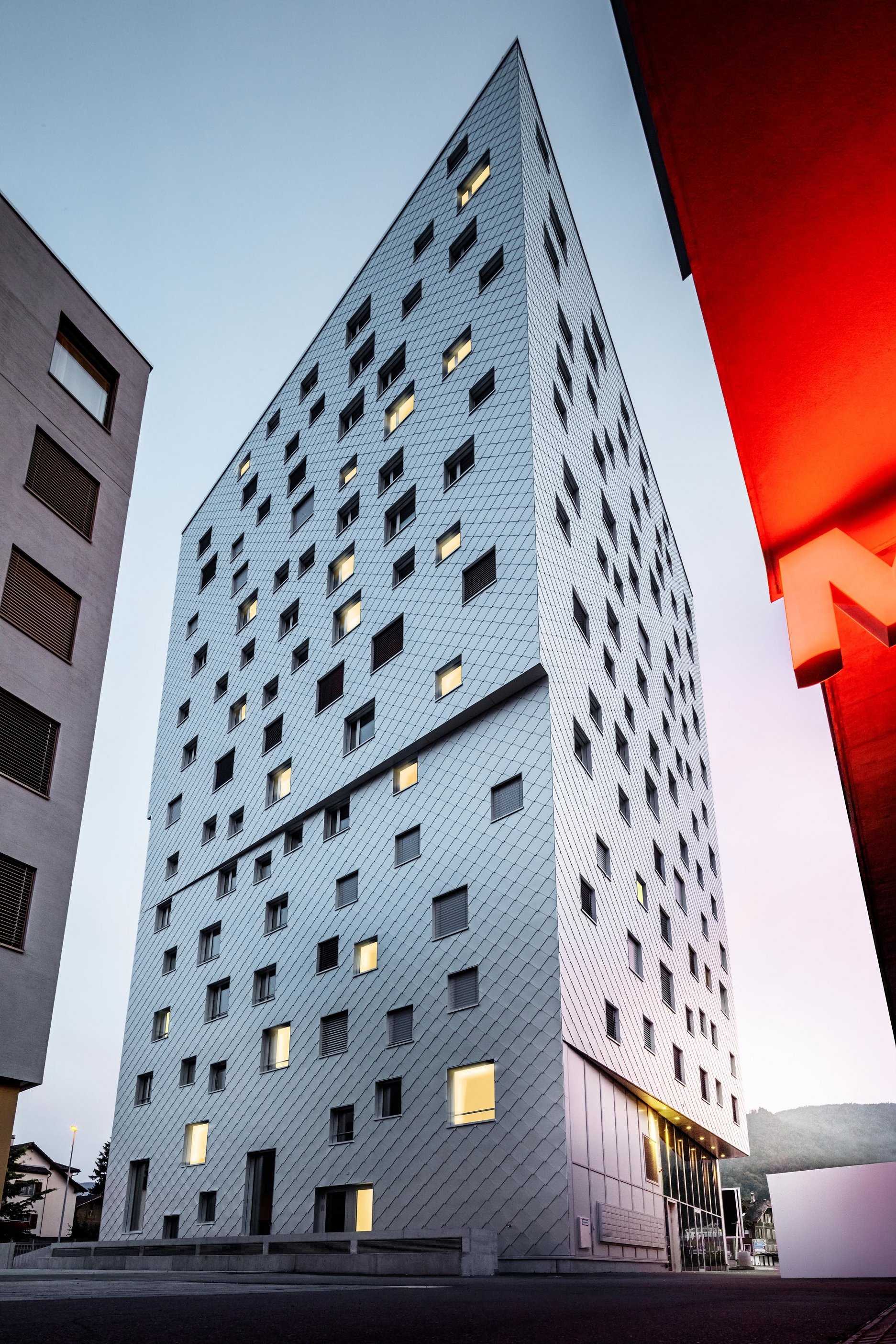 Výškové stavby, zvlášť obytné budovy sú vo Švajčiarsku zriedkavé. v kontexte Luzernského predmestia sa však zvolené riešenie javilo ako racionálna voľba. Budova v zahustenej mestskej štruktúre vyrástla na pôdoryse s výmerou 404 metrov štvorcových. Horných trinásť poschodí poskytlo priestor pre 46 nájomných bytov (2+kk až 4+kk). Zvýšené prízemie je určené pre občiansku vybavenosť. Obmedzený priestor bol výzvou najmä pri budovaní podzemného parkoviska, ktoré zaberá celú plochu pozemku. V prvej fáze výstavby bolo možné využiť plochy na susednom pozemku. Neskôr sa manipulačný priestor zredukoval na minimum.