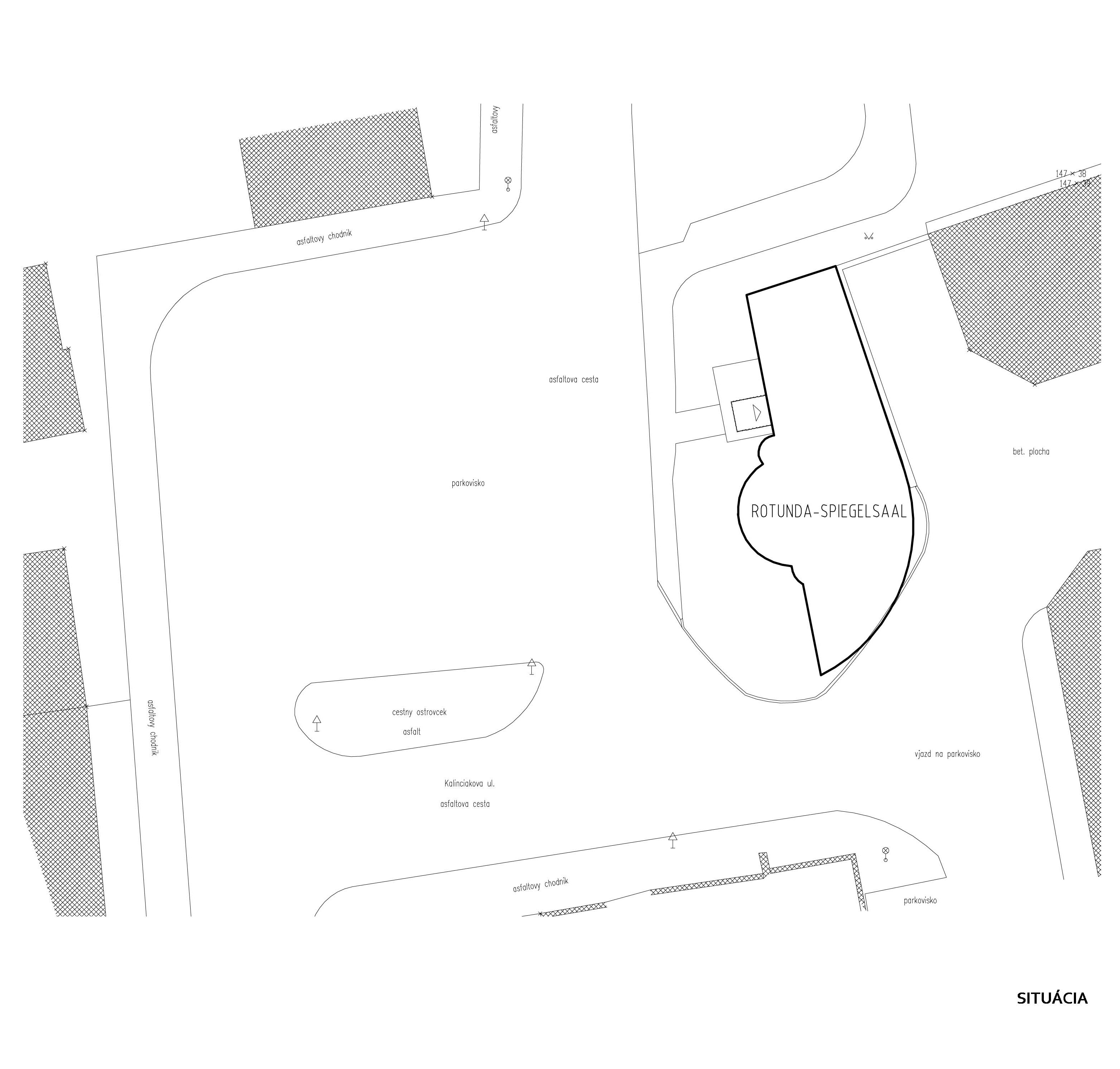 Spiegelsaal bol pôvodne pavilónom na konci záhrady, v ktorom majitelia usporiadavali tanečné večierky. Z celého objektu sa zachovala len Rotunda, ktorú jej noví majitelia chceli využívať ako kaviareň.