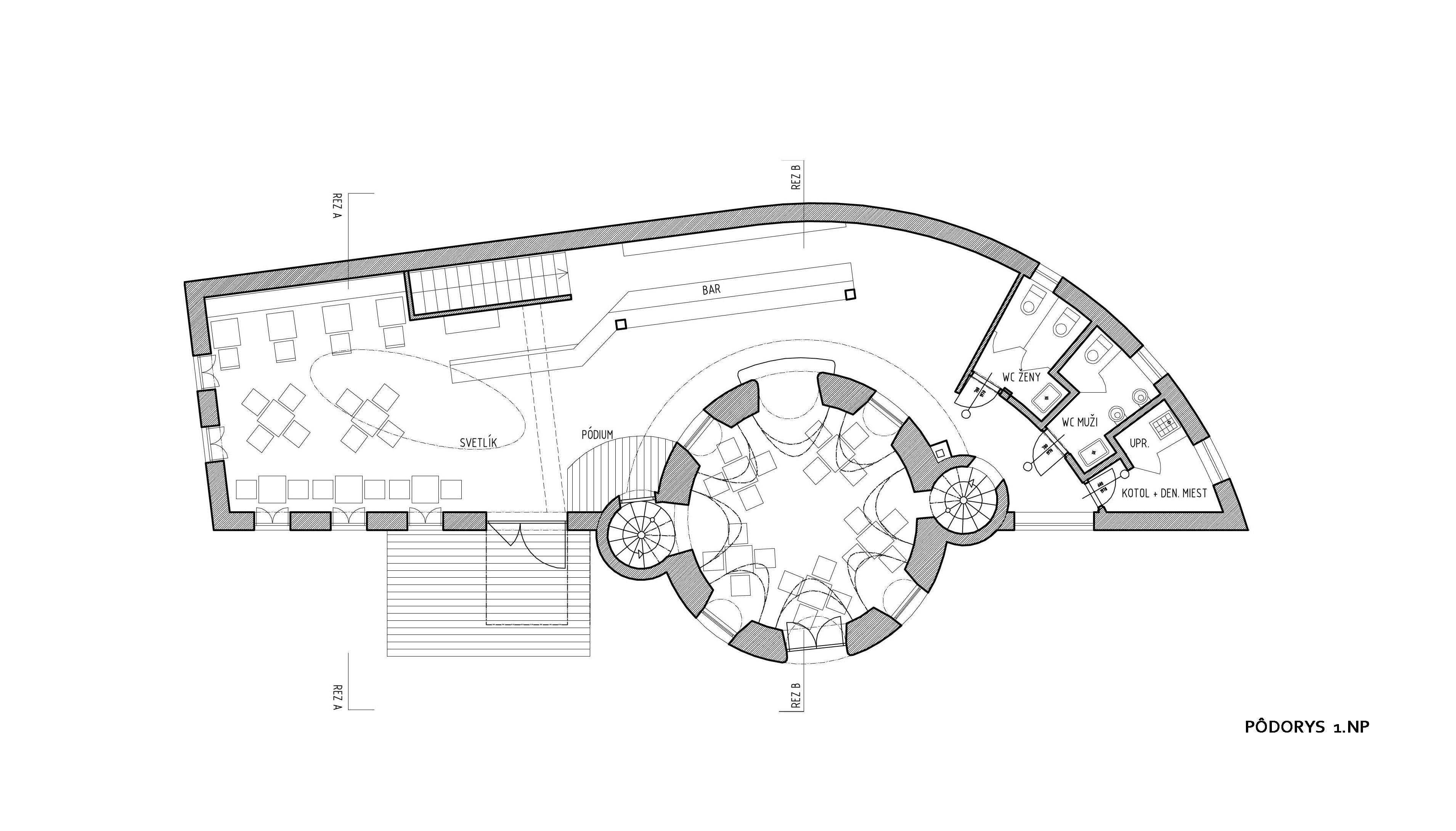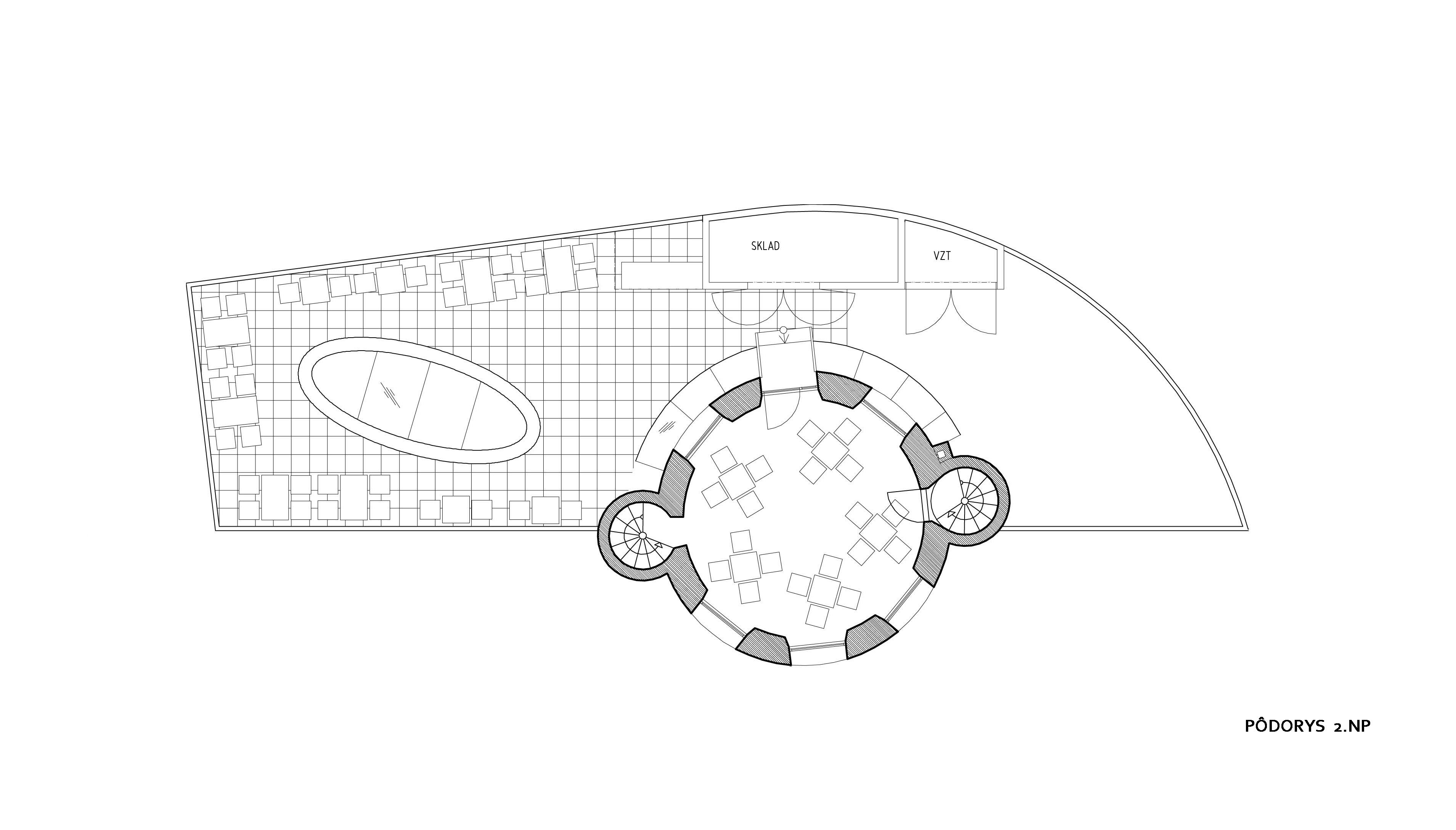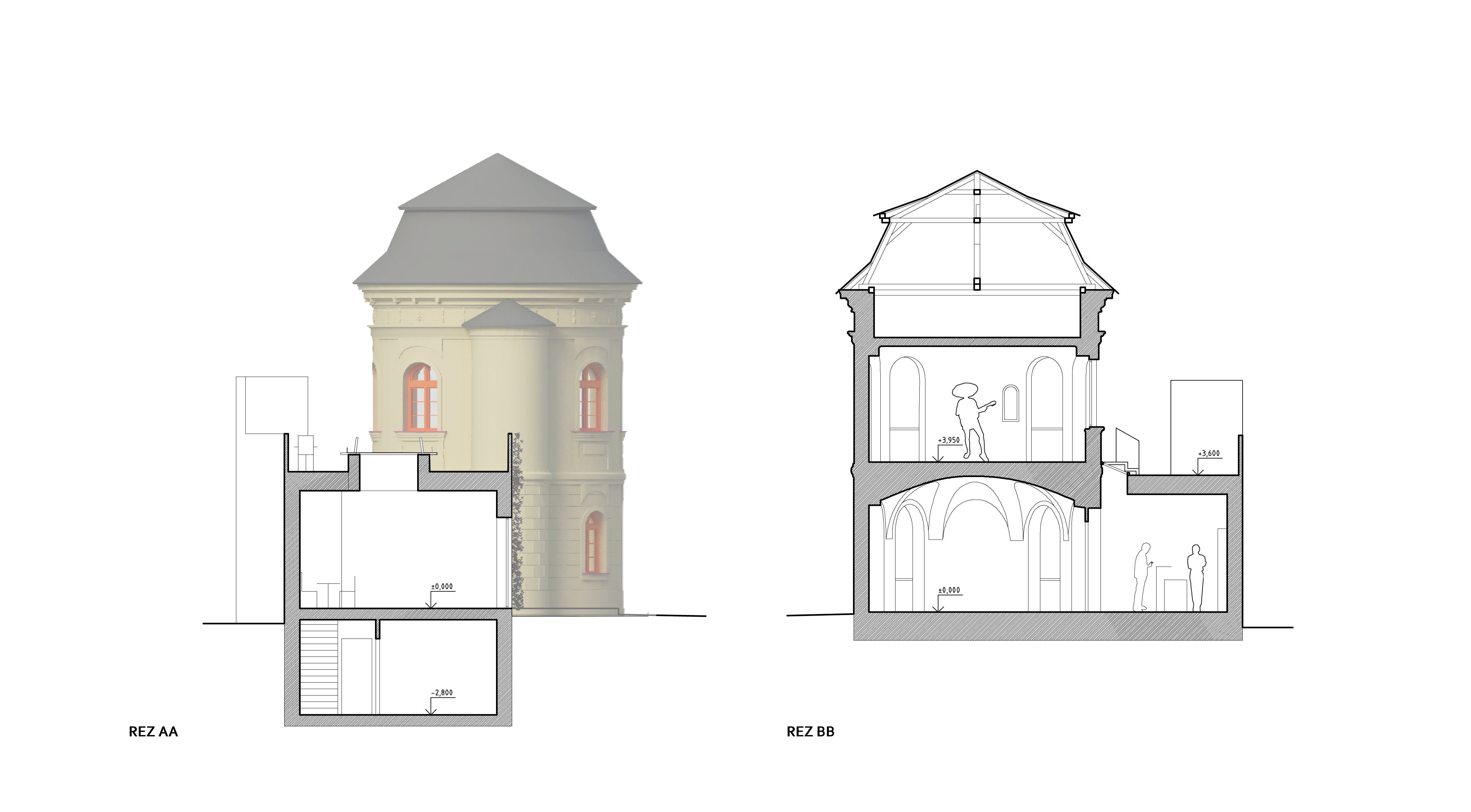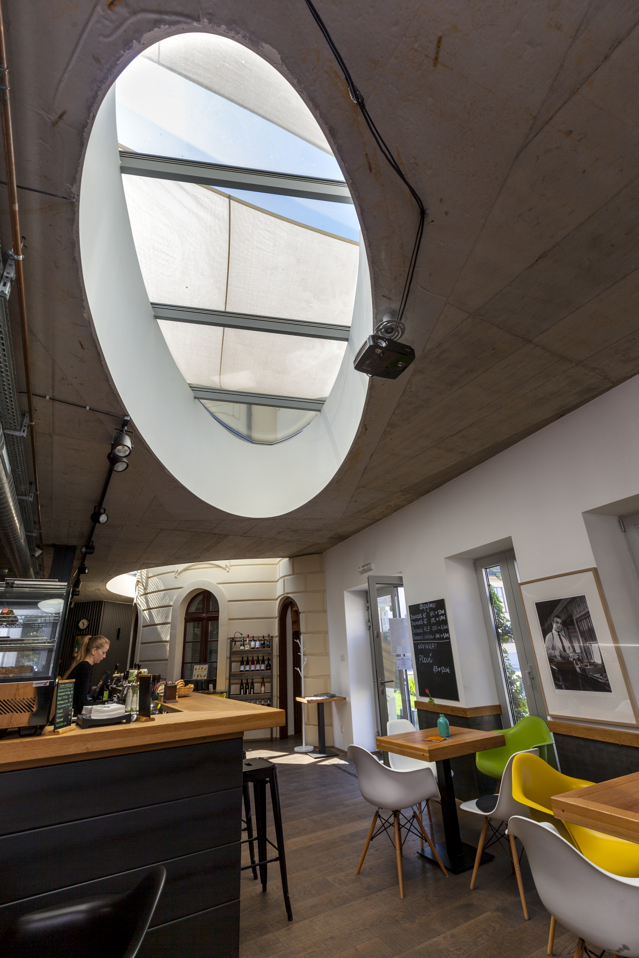 Nový projekt kaviarne a baru v tomto priestore oživil dlho uzavretú vzácnu stavbu. Samotná prístavba rešpektuje charakter kultúrnej pamiatky. Idea návrhu zdôrazňuje genius loci atraktívnej architektúry, vychádza z pôvodného účelu stavby, umiestniť rotundu do okolia živej popínavej zelene.