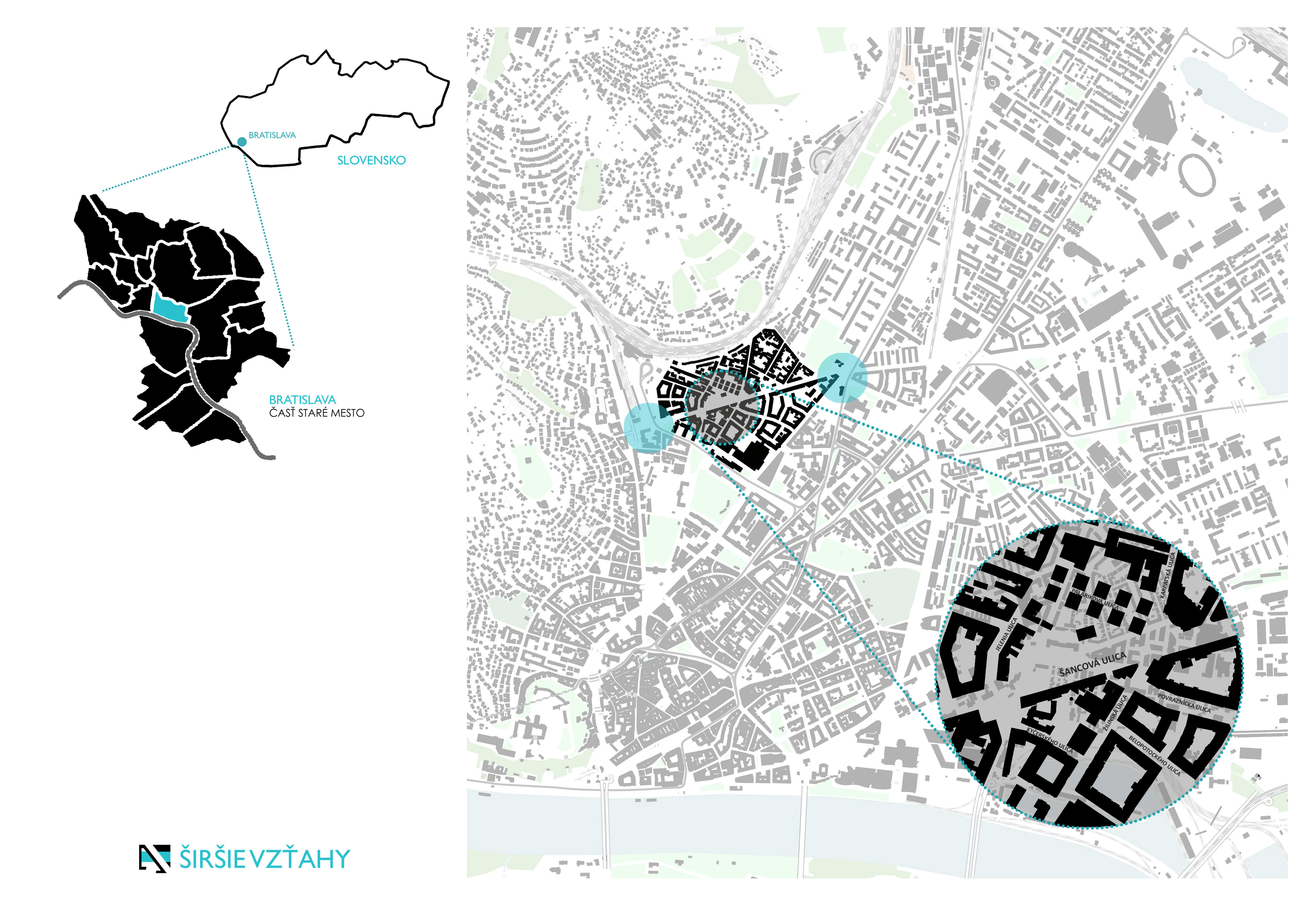 Riešené územie sa nachádza v hlavnom meste Bratislava a zároveň v okrajovej časti Starého mesta. Vzhľadom na jeho polohu by sme mohli povedať, že sa jedná o územie ľuďmi viac vyhľadávane, bohužiaľ, v tomto prípade tomu tak nie je. Jedna z najdôležitejších dopravných tepien mesta, Šancová ulica, ostala využívaná v prevažnej miere len dopravnými prostriedkami a potenciál mestského bulváru sa úplne vytratil z tohto územia. Šancová ulica postráda akúkoľvek reguláciu. Majitelia si na svojich pozemkoch stavajú bez rozmyslu a ohľadu na základné nadväznosti na okolie, či funkčné alebo výrazové. Nerešpektuje sa základný výraz ulice, ktorý je výškovo daný polyfunkčnými bytovými domami popri ceste. Malé objekty pôsobia ako vylámané zuby a na ostatné diery sa dávajú len provizórne náplaste.
