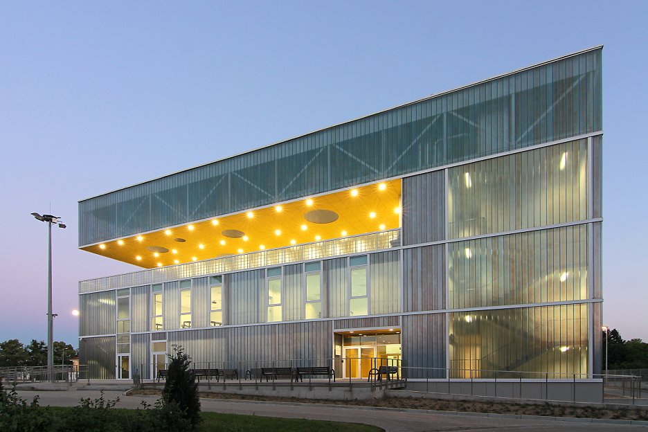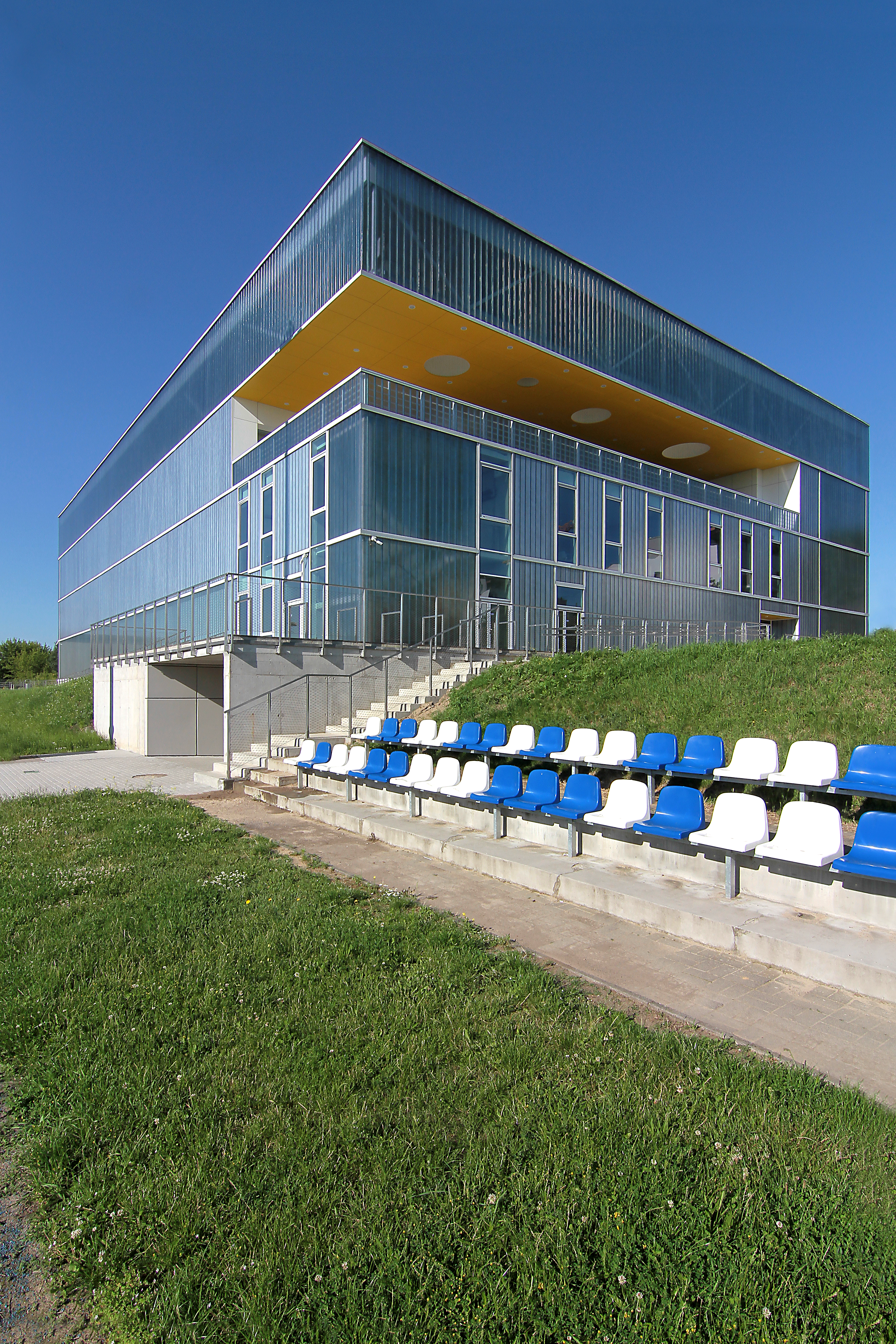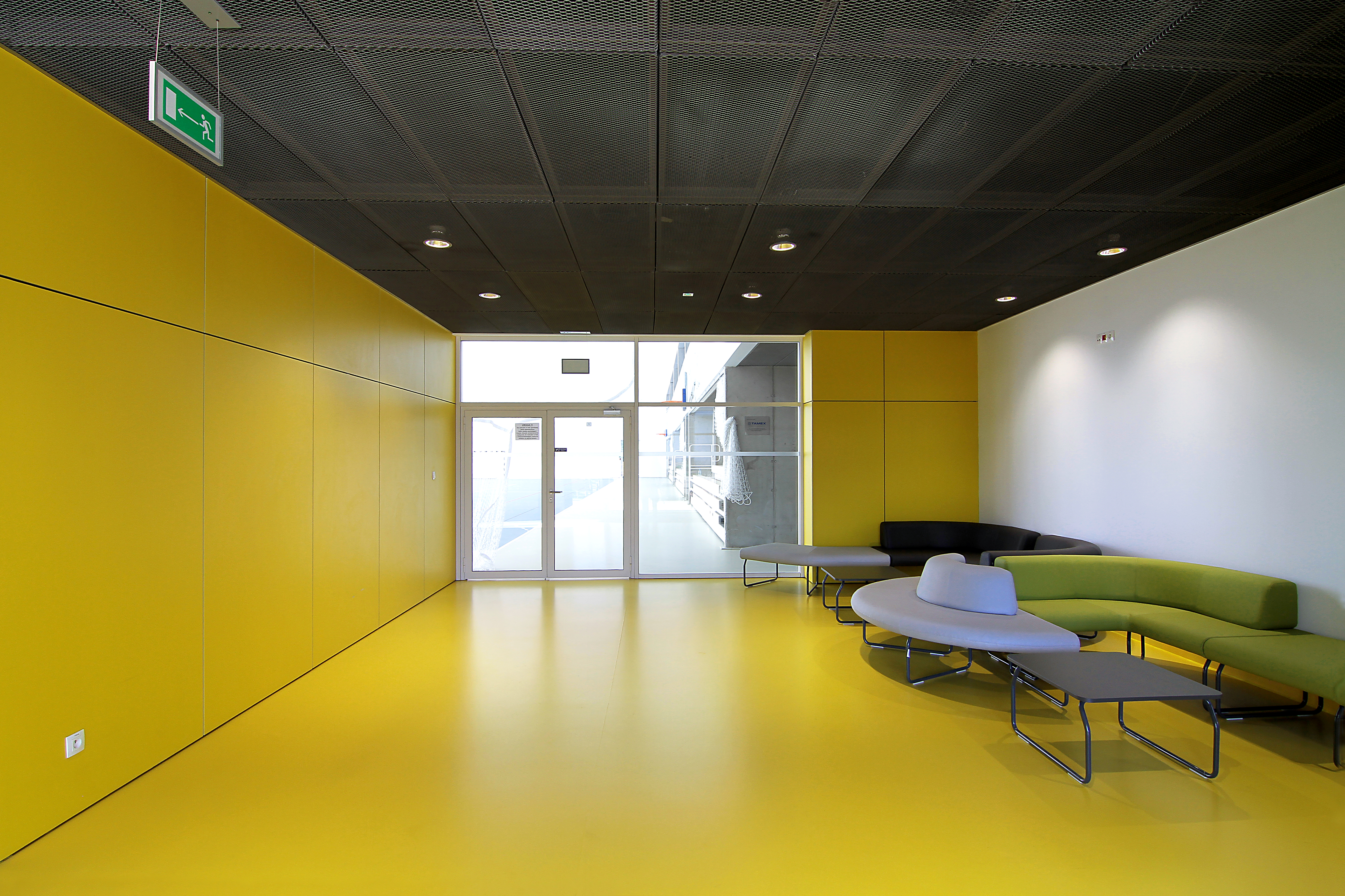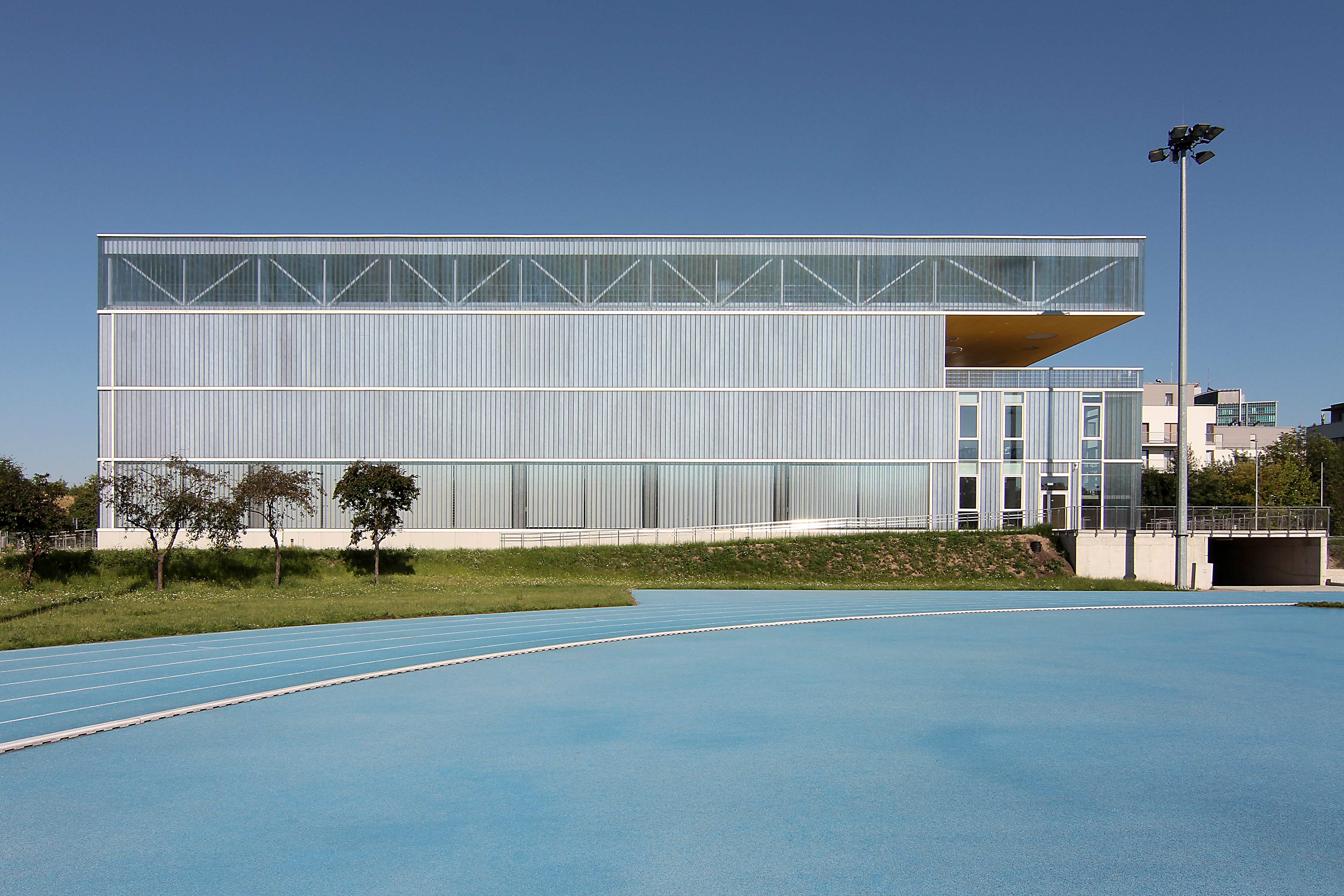 Objekt má tri nadzemné a jedno podzemné podlažie. Pôdorysný tvar budovy sa jasne odvíja od centrálneho multifunkčného športoviska, na ktoré nadväzujú jednotlivé bloky zabezpečujúce riadenie a prevádzku.