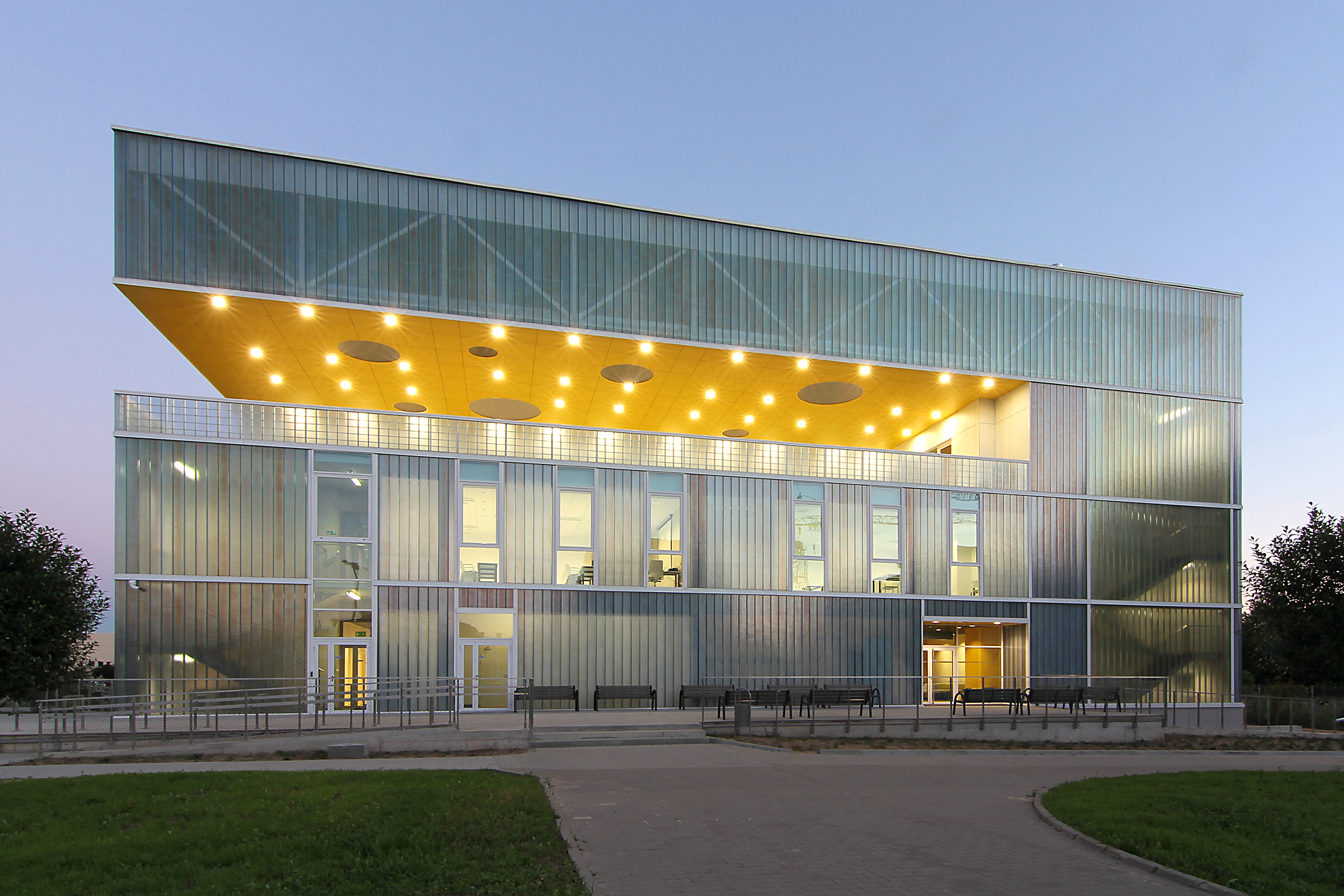 Forma vychádza zo snahy o čo najlepšie presvetlenie hlbokých vnútorných priestorov (svetlo bez ohľadu na čas a variabilné svetelné podmienky). Jednoduchý tvar je akcentovaný prostredníctvom kontrastných "výrezov". Výsledkom je charakteristická budova so silným prejavom.