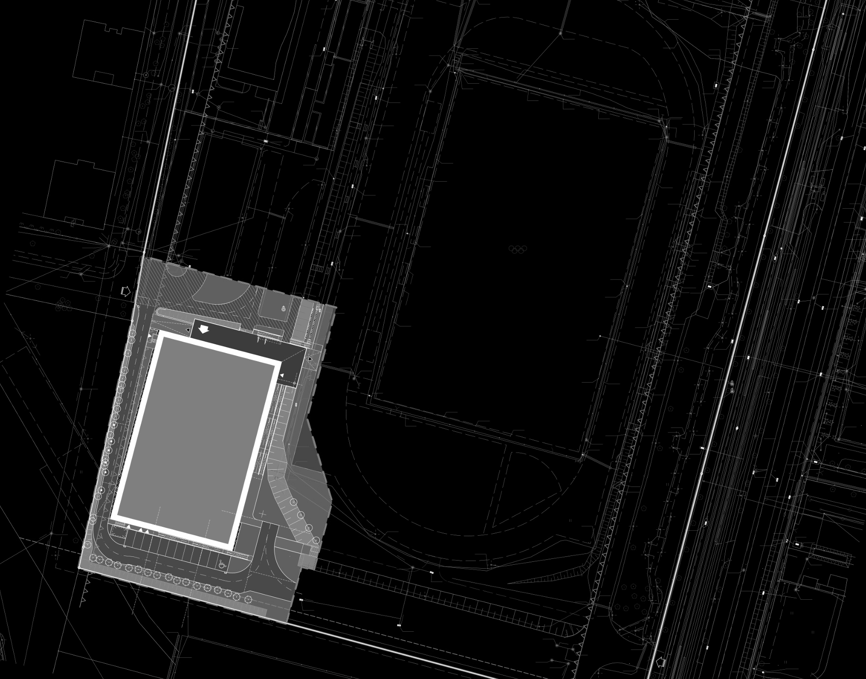 Objekt je osadený na základe geometrie, ktorá je definovaná ortogonálnym pôdorysom športového areálu. Budova je orientovaná rovnobežne s osou štadiónu. Príjazdovoá komunikáciá - ulica Olimpijska vedie k novej hale zo západu. V areáli Akadémie sa nachádza nesúrodá zástavba s rozmanitým programom. Športová hala bola poslednou dokončenou stavbou v rámci programu modernizácie a dostavby športoviska. Stáva sa novou dominantou a zdôrazňuje formálne dokončenie areálu.
