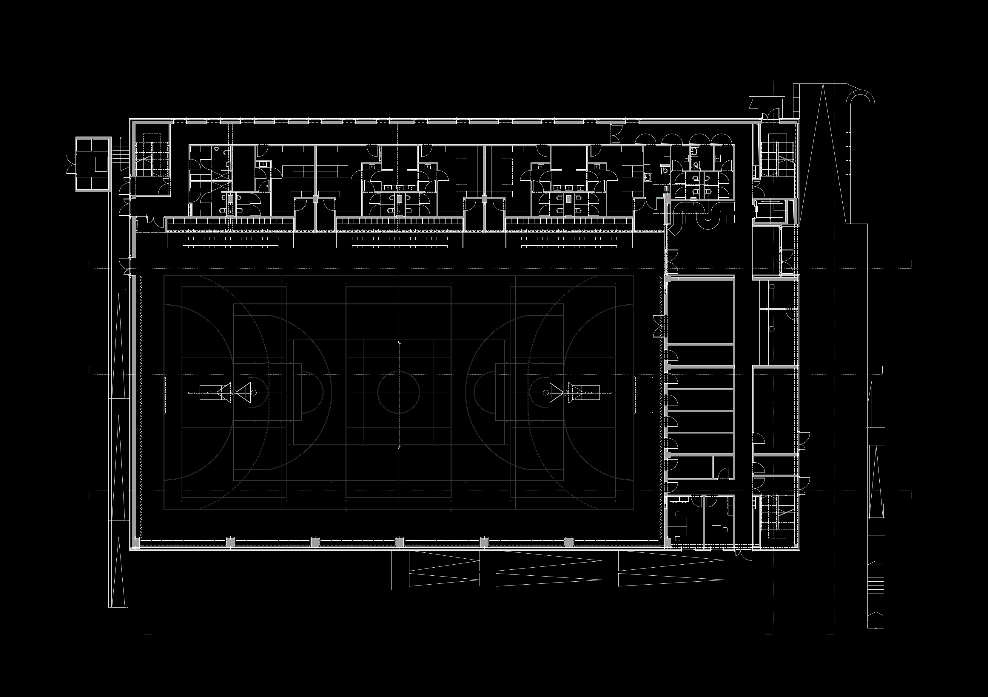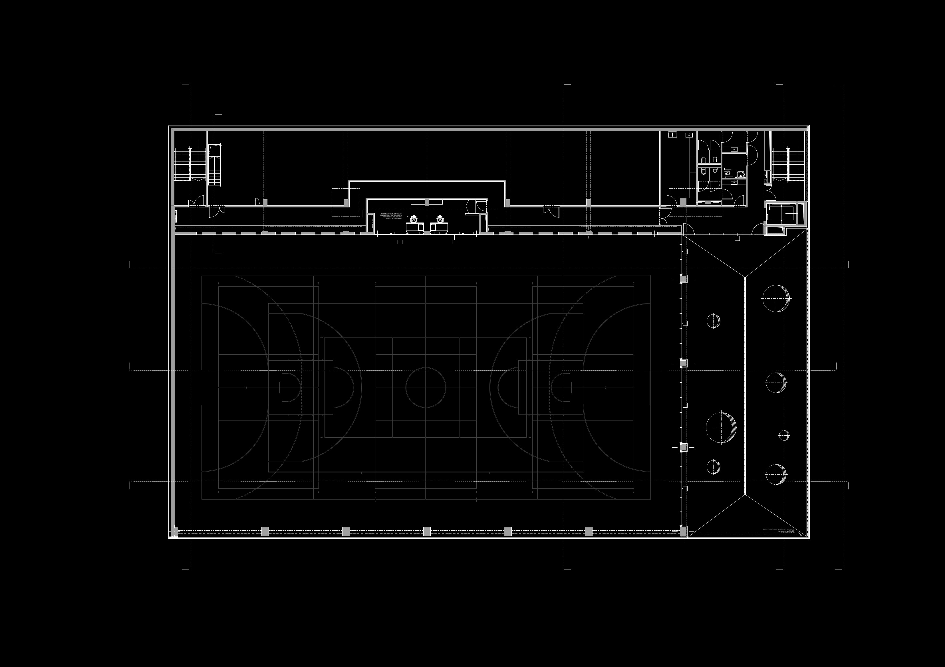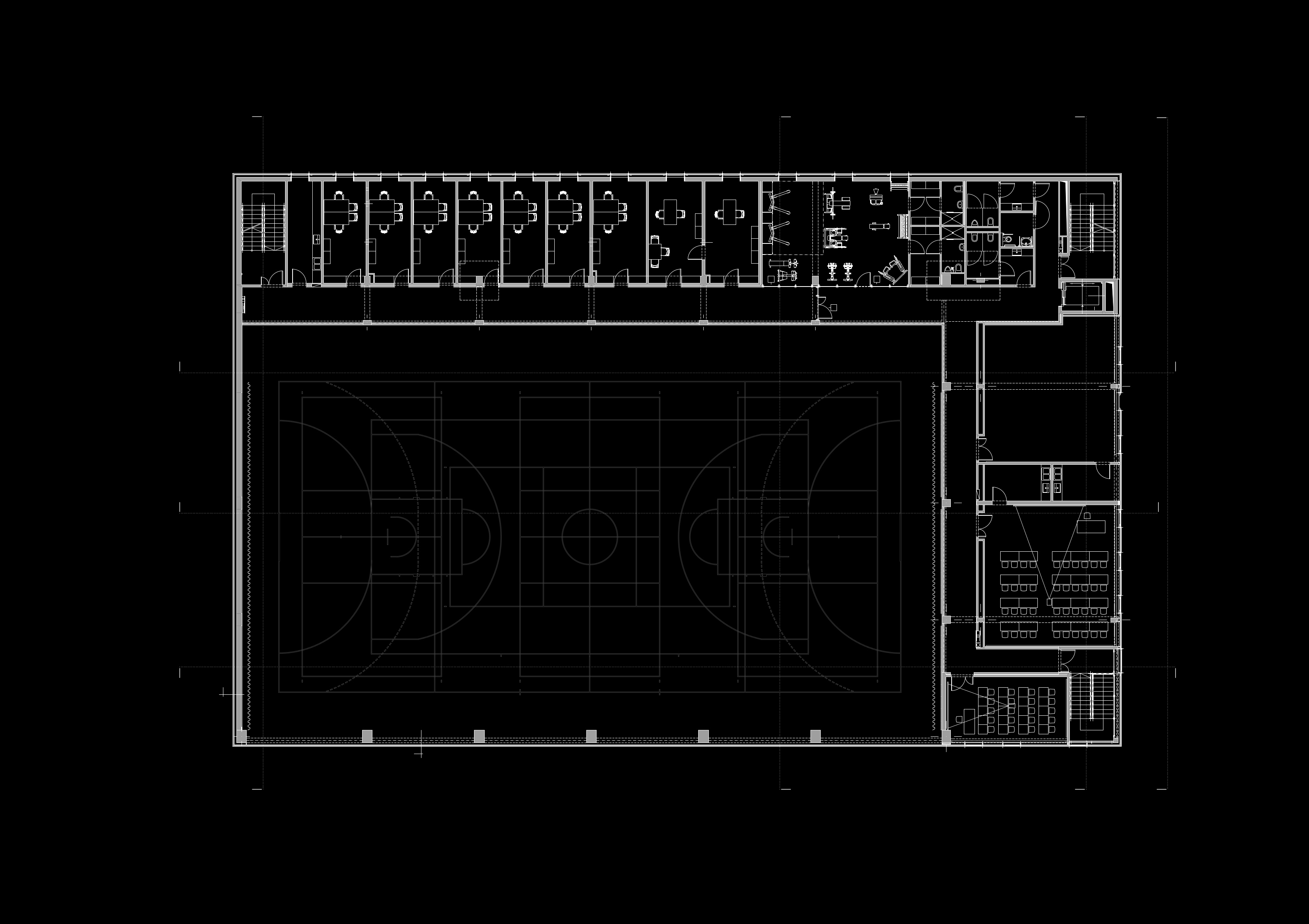 Svetlá výška multifunkčnej športovej haly je 12 metrov. Hala poskytuje dostatok miesta pre ihriská na športy ako hádzaná, basketbal a volejbal. Osvetlenie je riešené pomocou presklenej steny prostredníctvom systému sklenených profilov s rôznym stupňom transparentnosti. Na protiľahlom okraji sú umiestnené posuvné tribúny s kapacitou 228 miest.