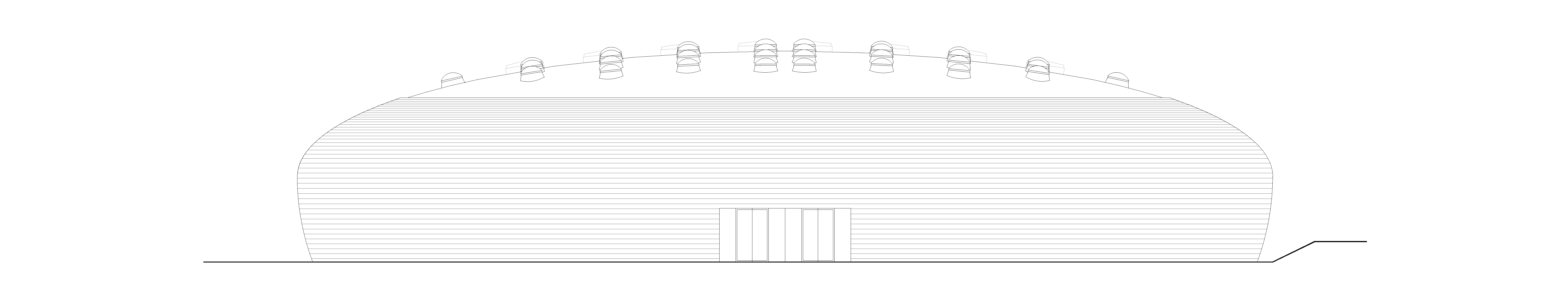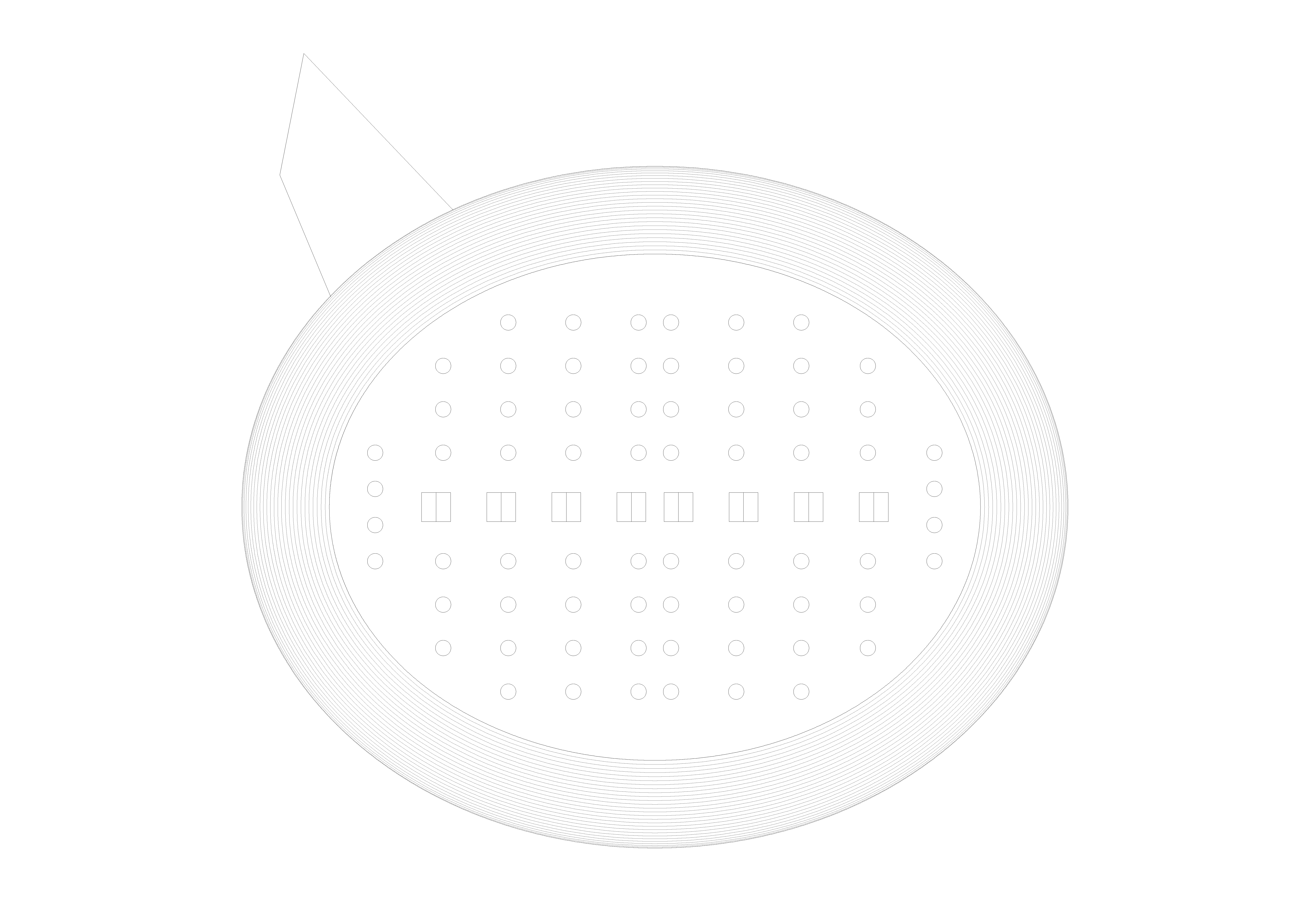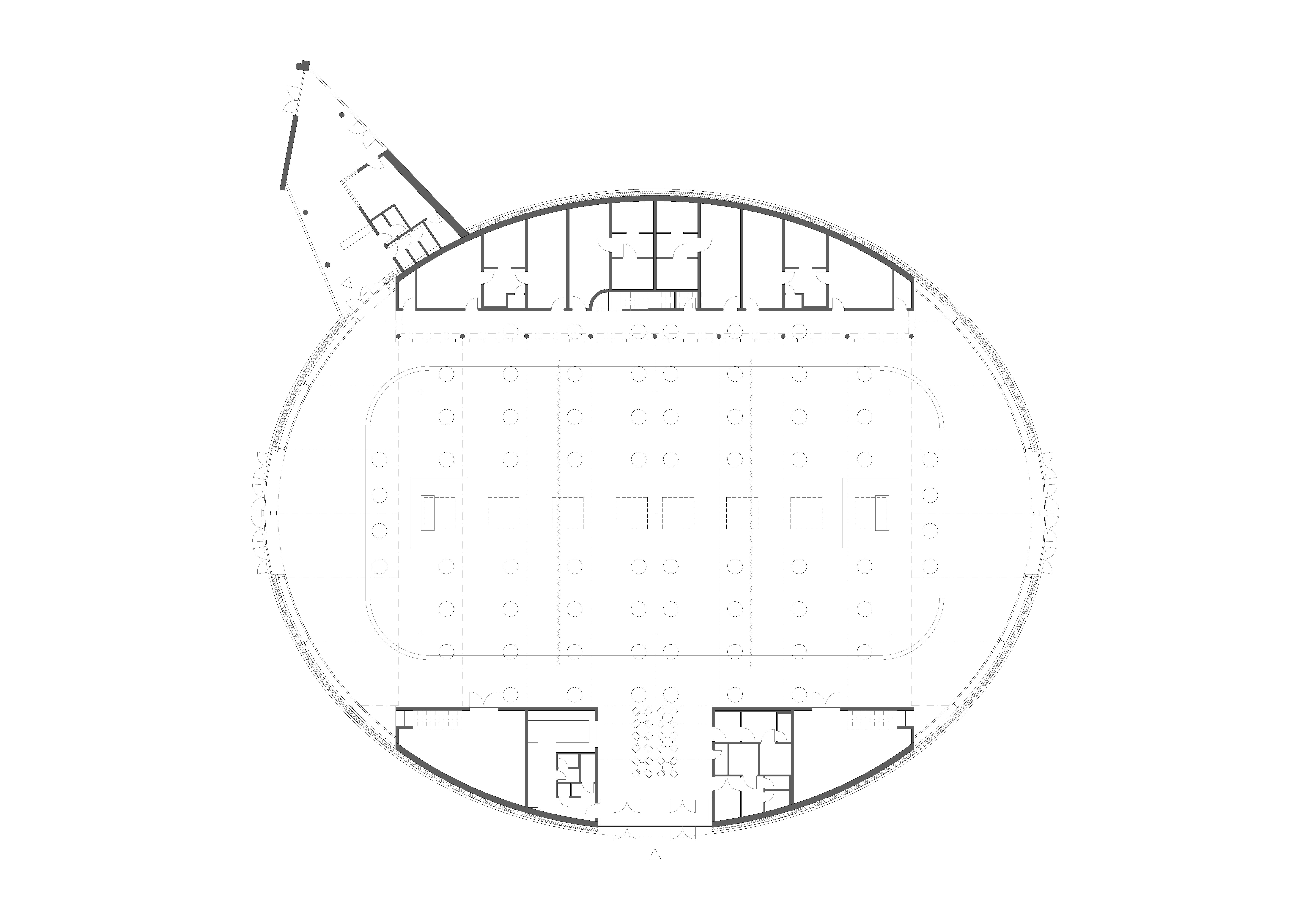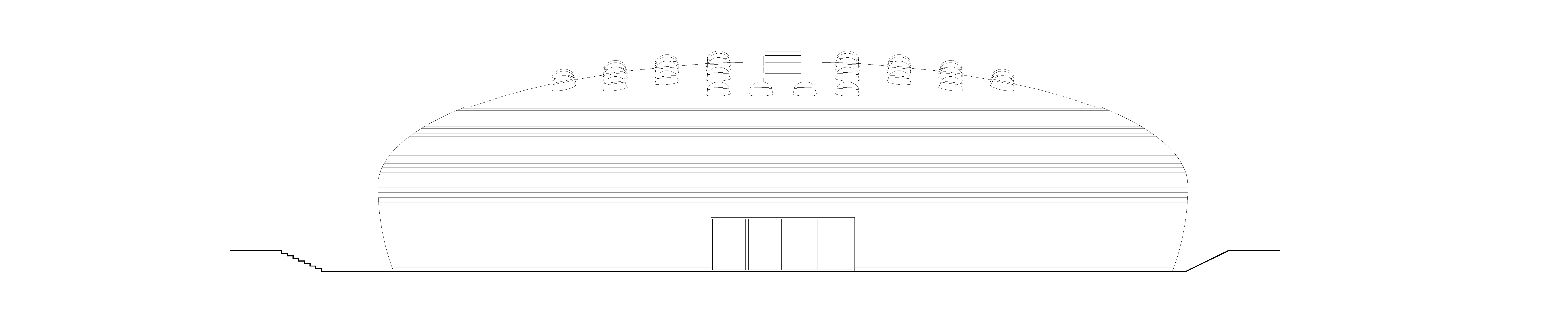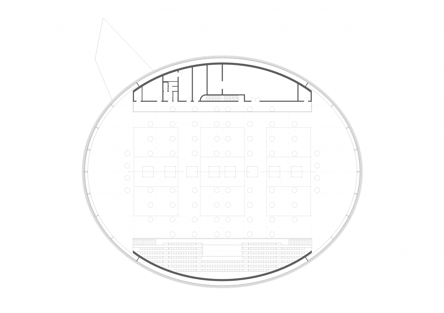 “Tvar haly je oblý, hladký a abstraktní. Kupole přibližuje měřítko člověku, kovový povrch zrcadlí okolí, hranice oblohy a střechy je nejasná,” priblžujú návrh autori. Stavba dobre maskuje svoje skutočné rozmery. Široké schodisko pred halou vzniklo vďaka zapusteniu stavby do terénu, vymedzuje hranicu verejného priestoru a tvorí prirodzený amfiteáter.
