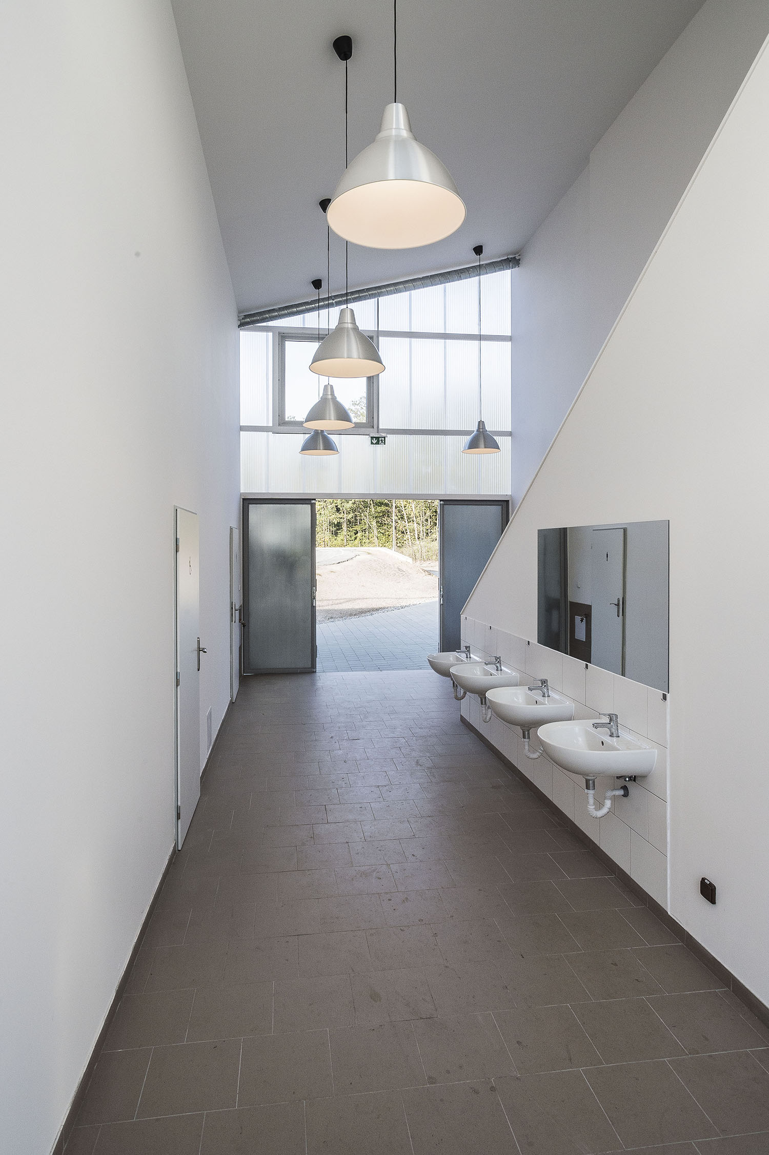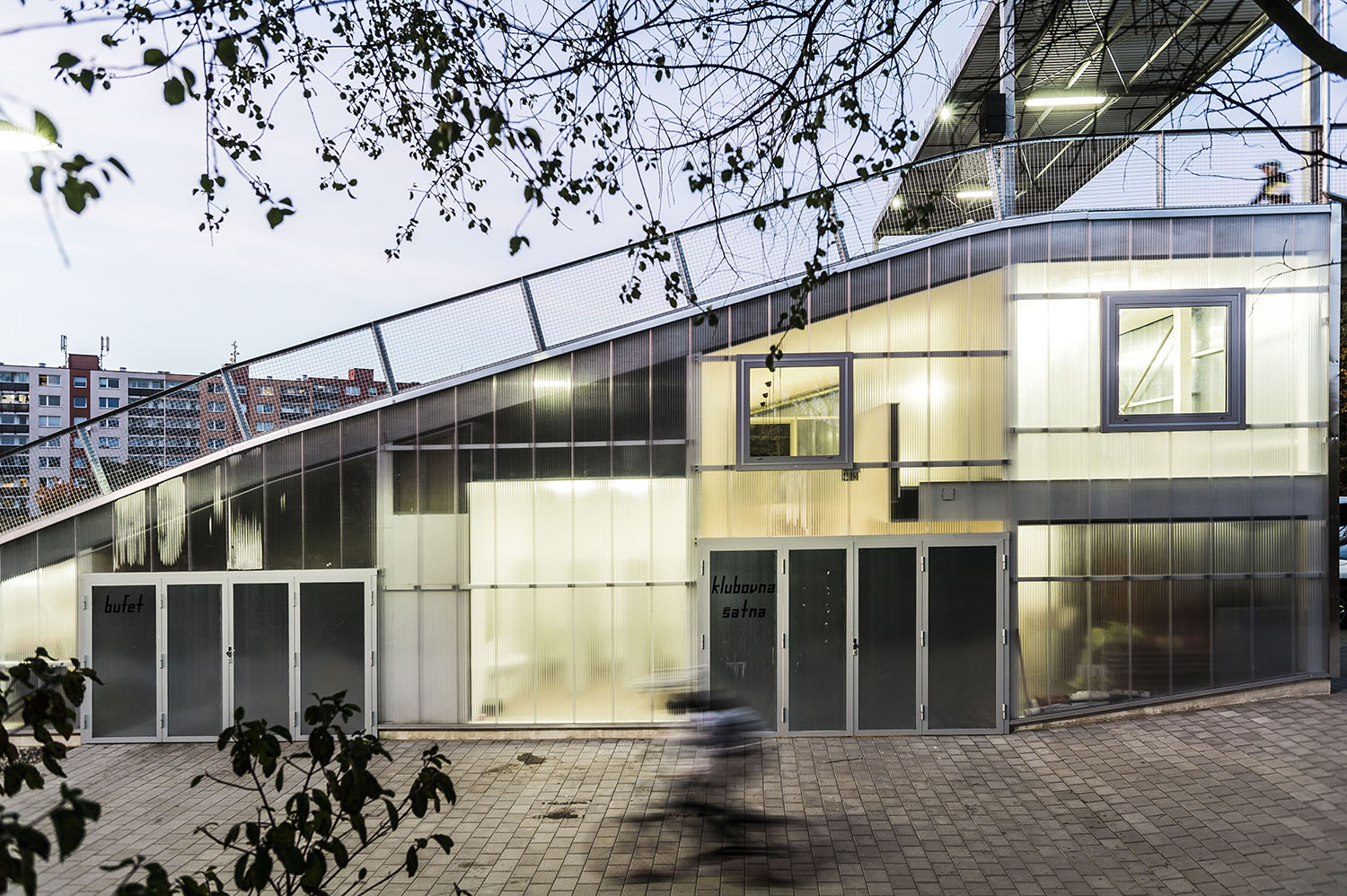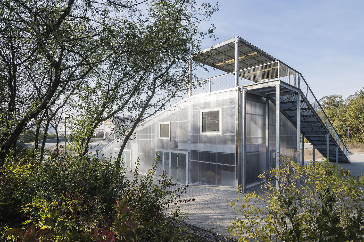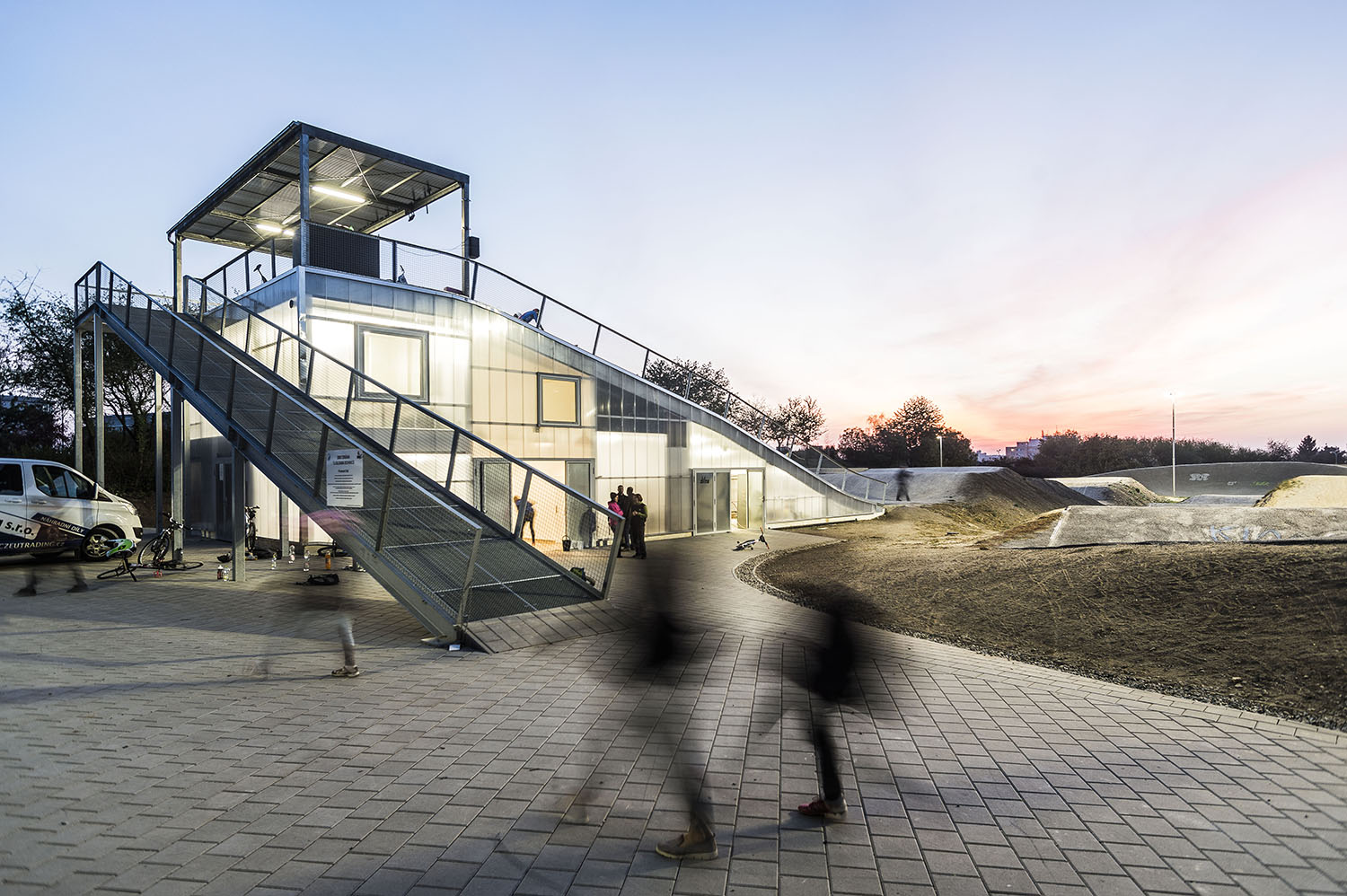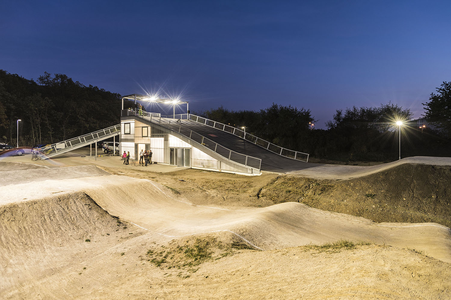 Keďže areál je využívaný len sezónne, obvodové konštrukcie nemusia byť zateplené. Ľahká oceľová montovaná konštrukcia je prekrytá ľahkými polykarbonátovými komôrkovými panelmi. Priestory nie sú vykurované. Cyklisti pri nástupe na štart využívajú nástupnú pororoštovú šikmú lávku.