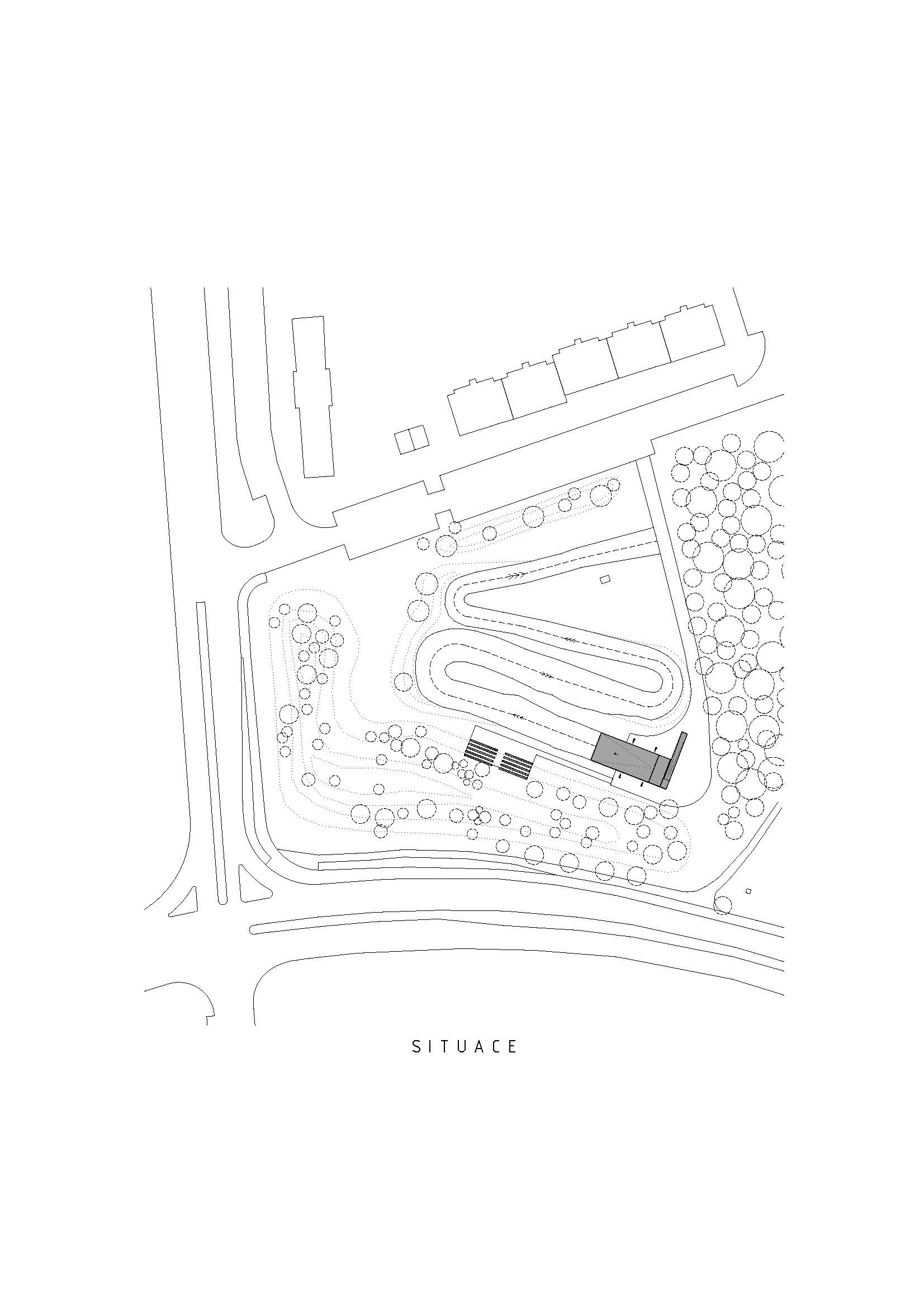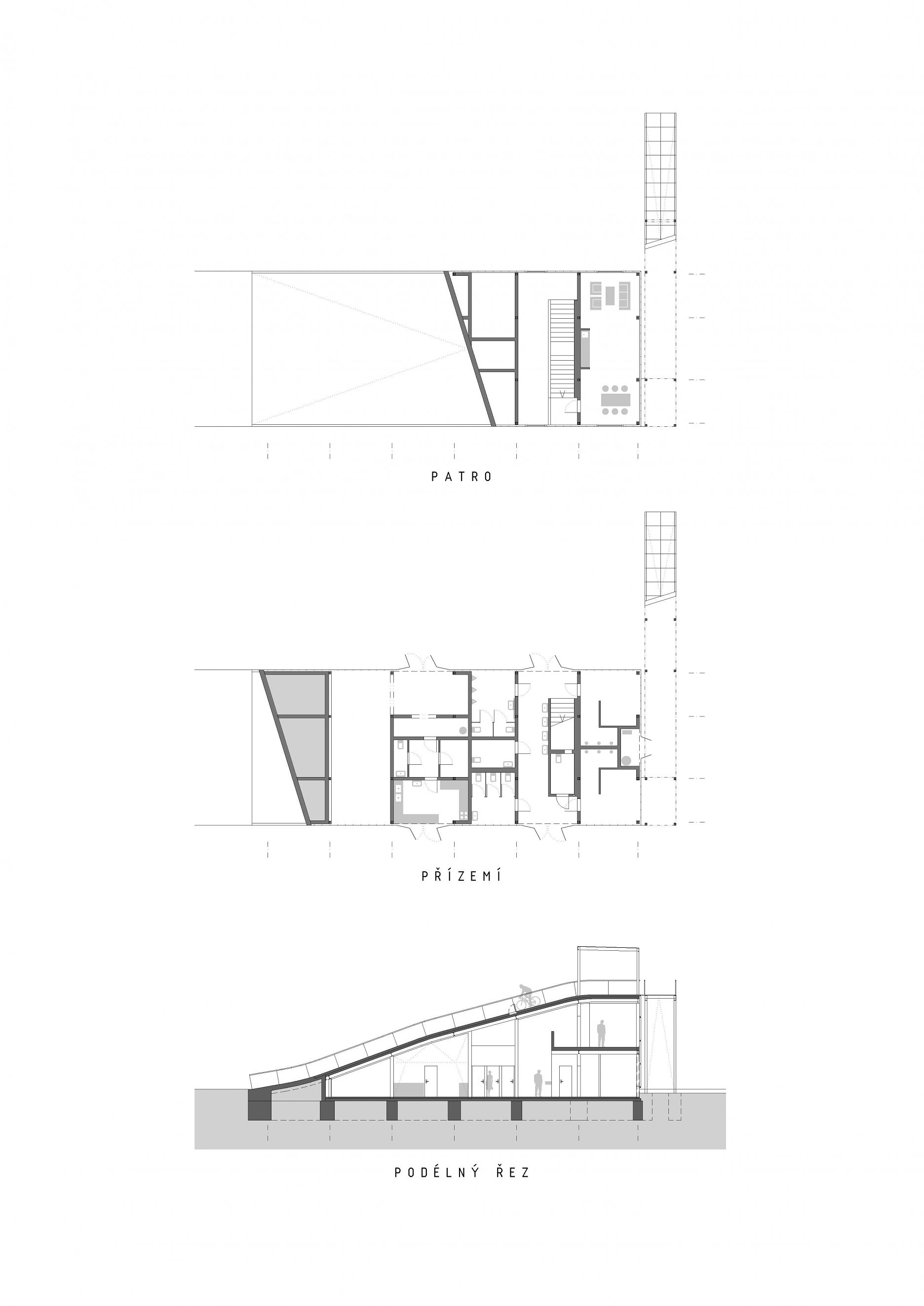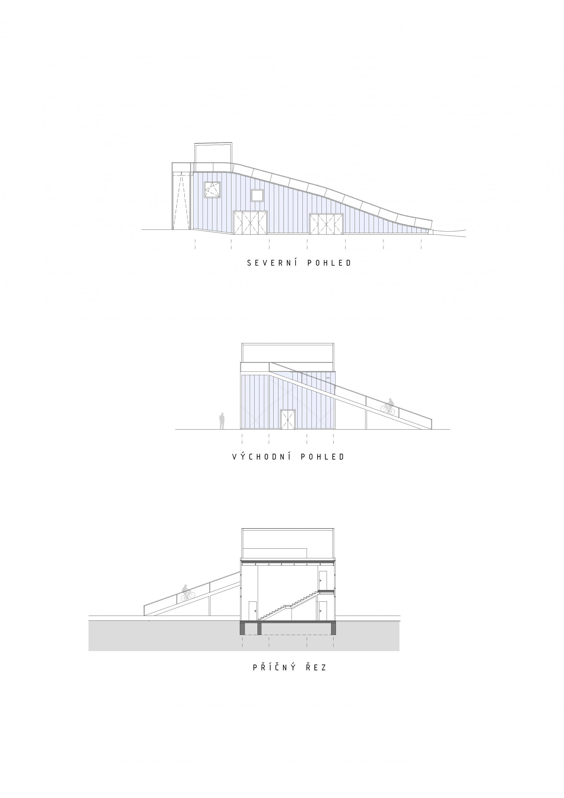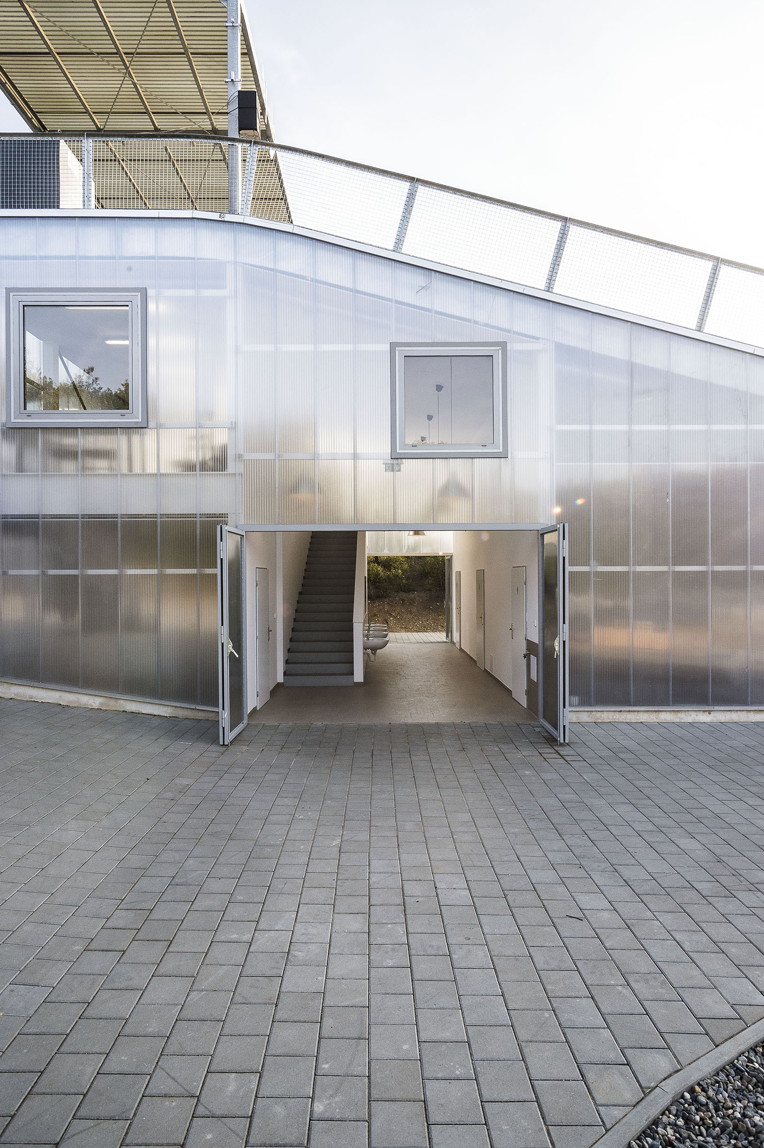 Vznikla nová štartovacia rampa s výškou päť metrov, ktorá zároveň slúži ako viacúčelová stavba. Pod šikmou strechou, ktorá funguje ako rozjazd, je situované základné zázemie pre športovcov. Nájdu tu šatne, hygienu a sklady. Súčasťou stavby je tiež klubovňa a bufet. Zvažujúca sa strecha jasne určuje využiteľnosť vnútorného priestoru.