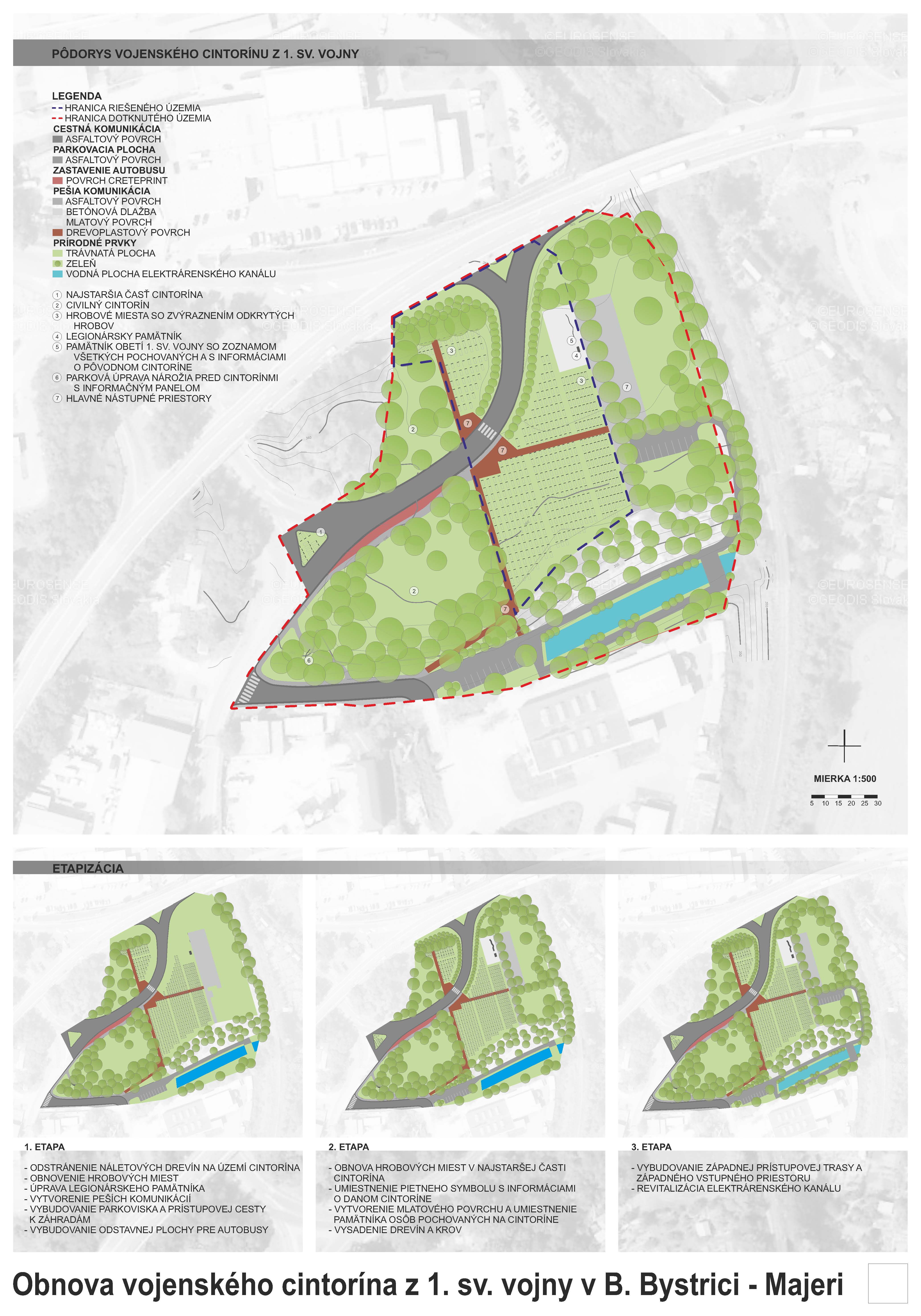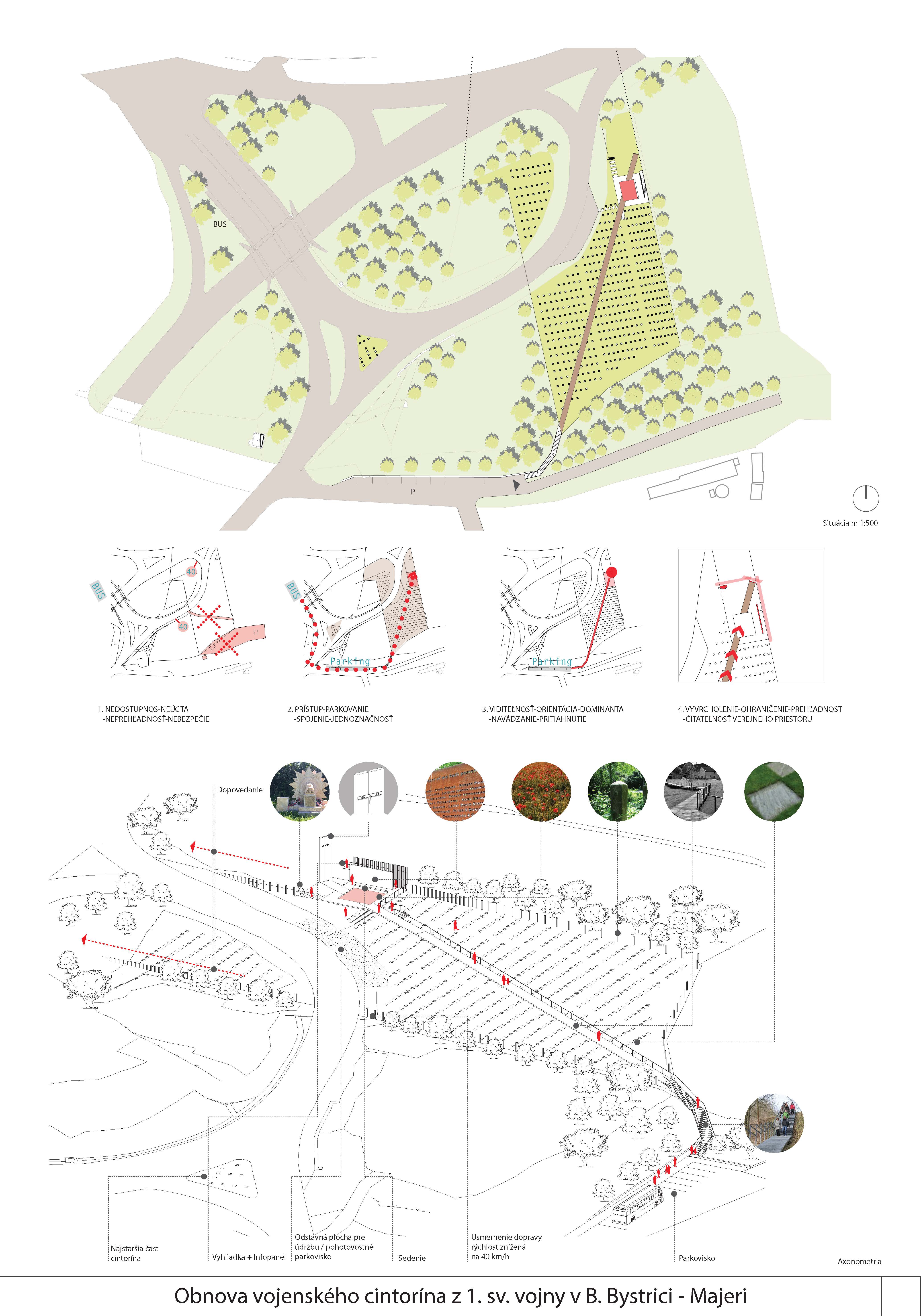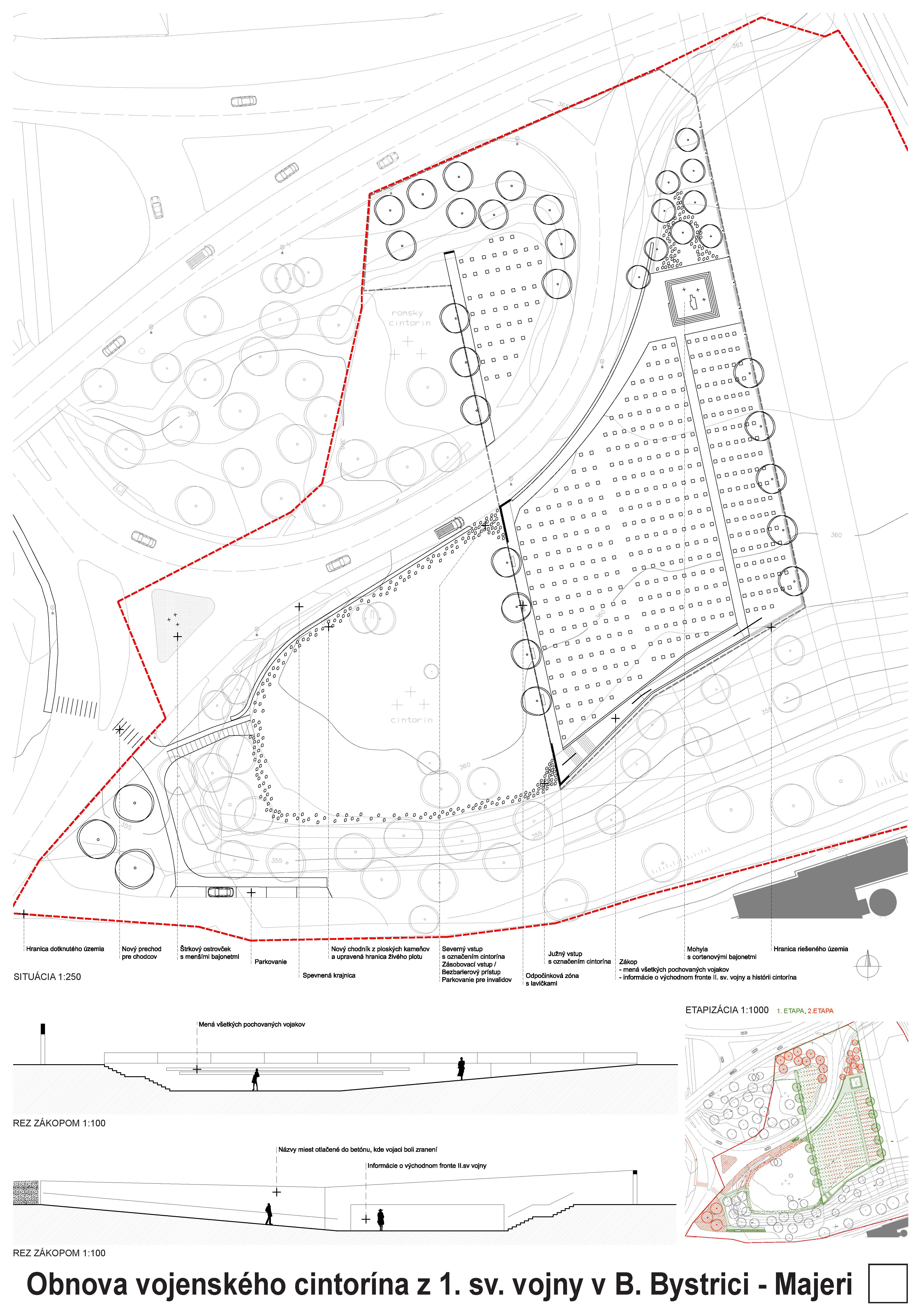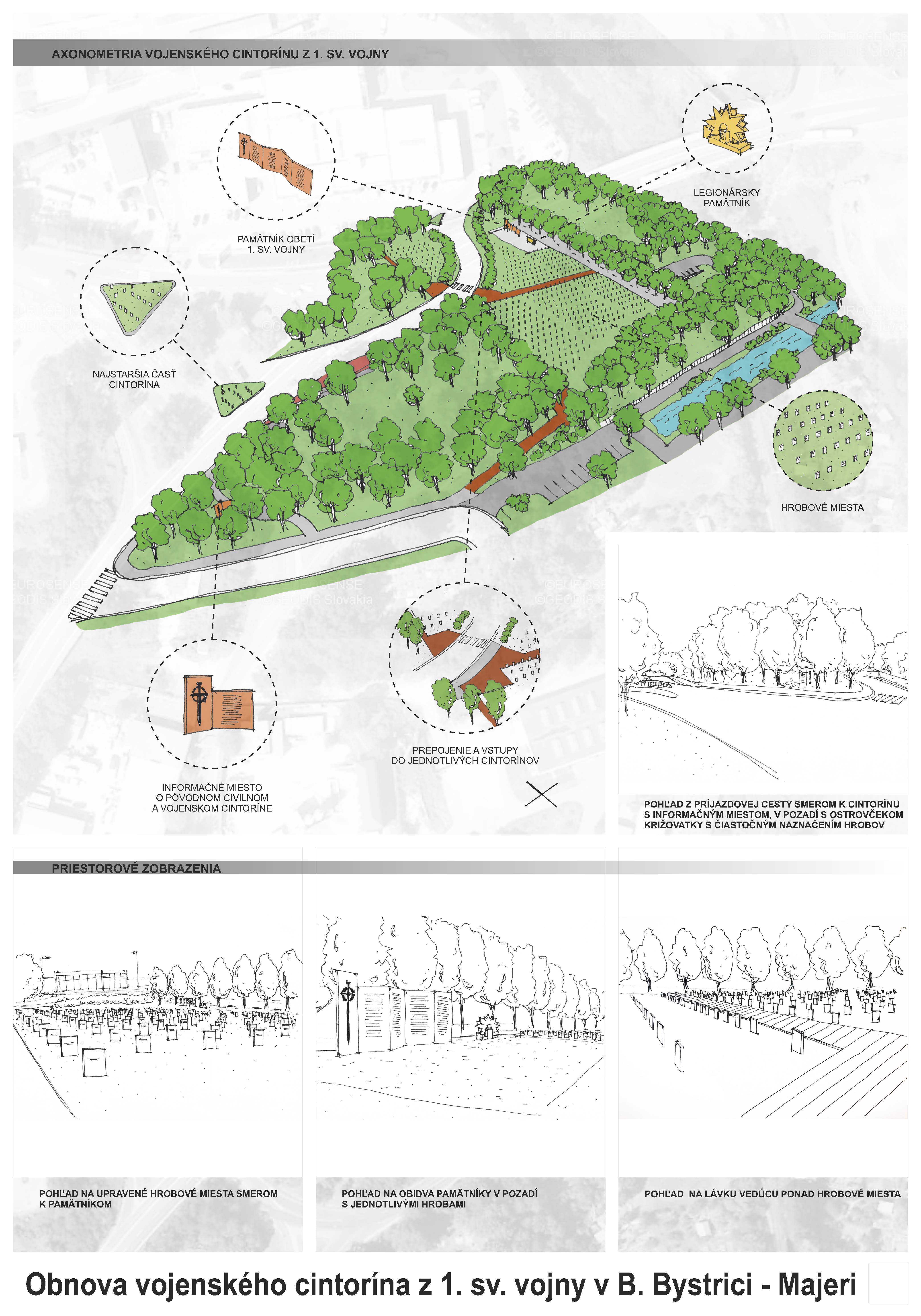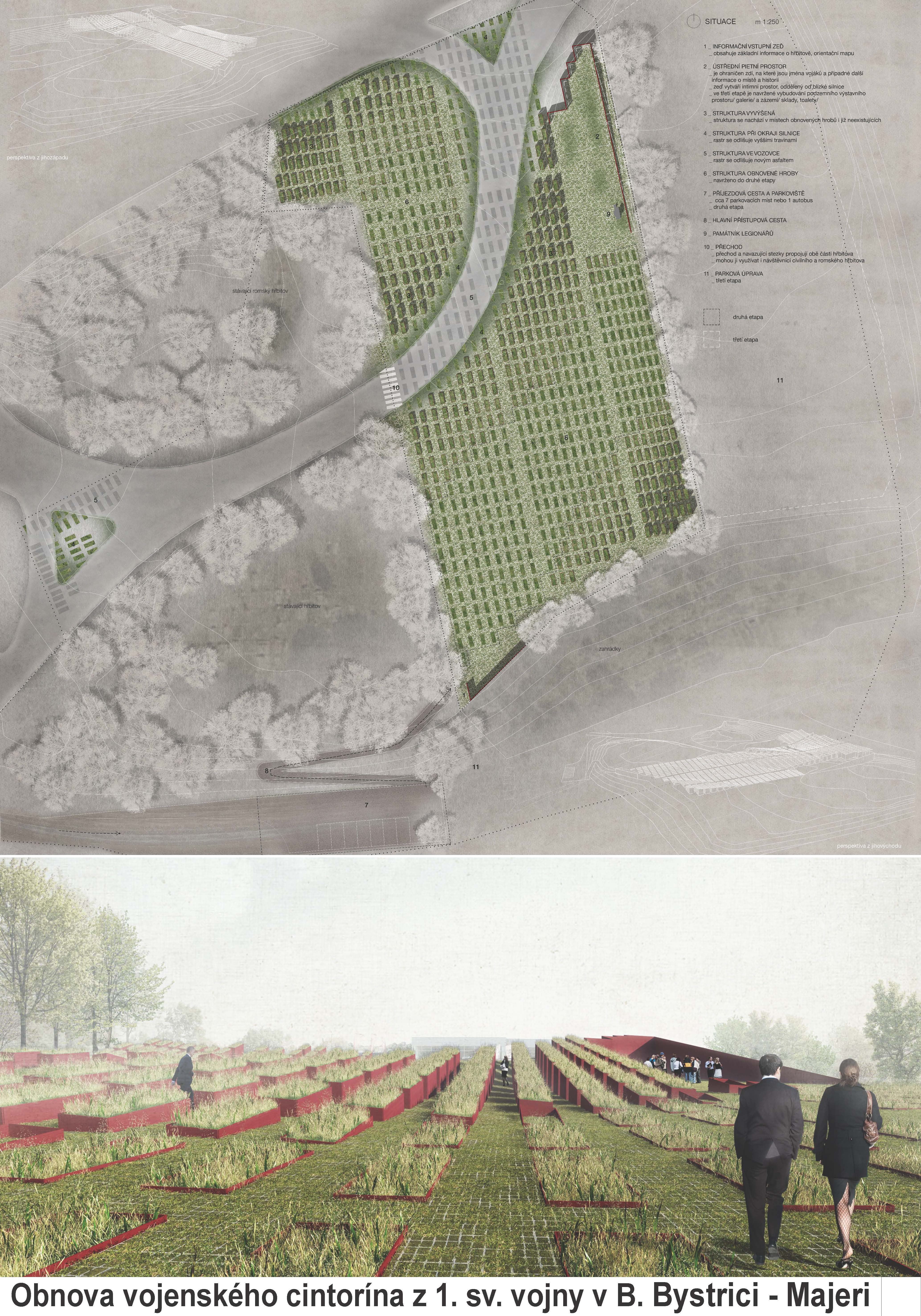 V grafickej časti návrhu nie je dostatočne konkrétne zdokumentované označenie hrobových miest v priestore LÚKY (je to súčasťou textovej časti a prílohy) a otázne je aj premiestnenie pamätníka legionárov do novej polohy, čo nie je v návrhu jednoznačne odprezentované. Pre riešenie prístupu do areálu vojnového cintorína vzhľadom na náročnosť dopravnej situácie v území porota považuje za prijateľnejšie riešenie hlavného prístupu z južnej strany (tzv. „spodný prístup“- od elektrárenského kanála).
