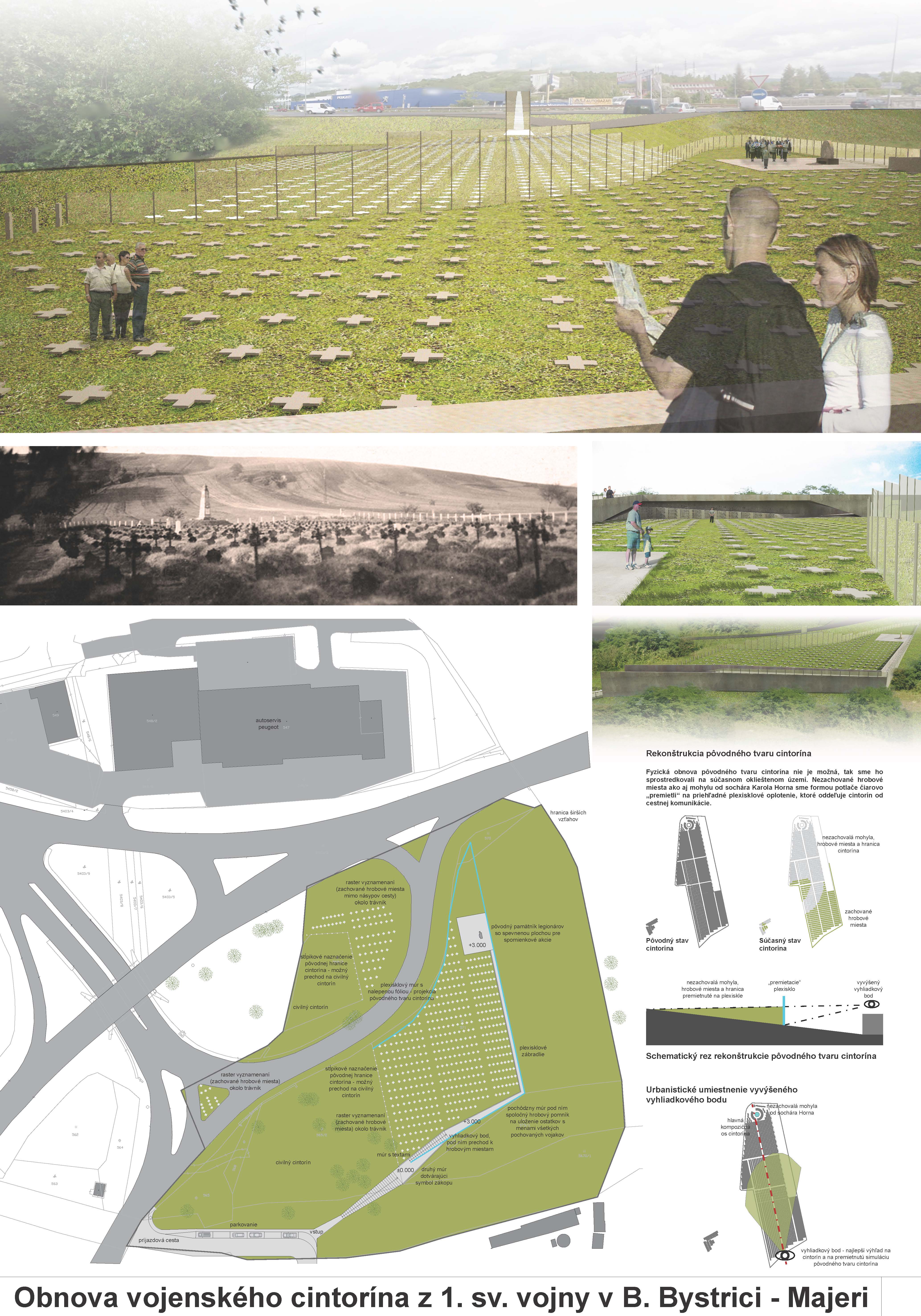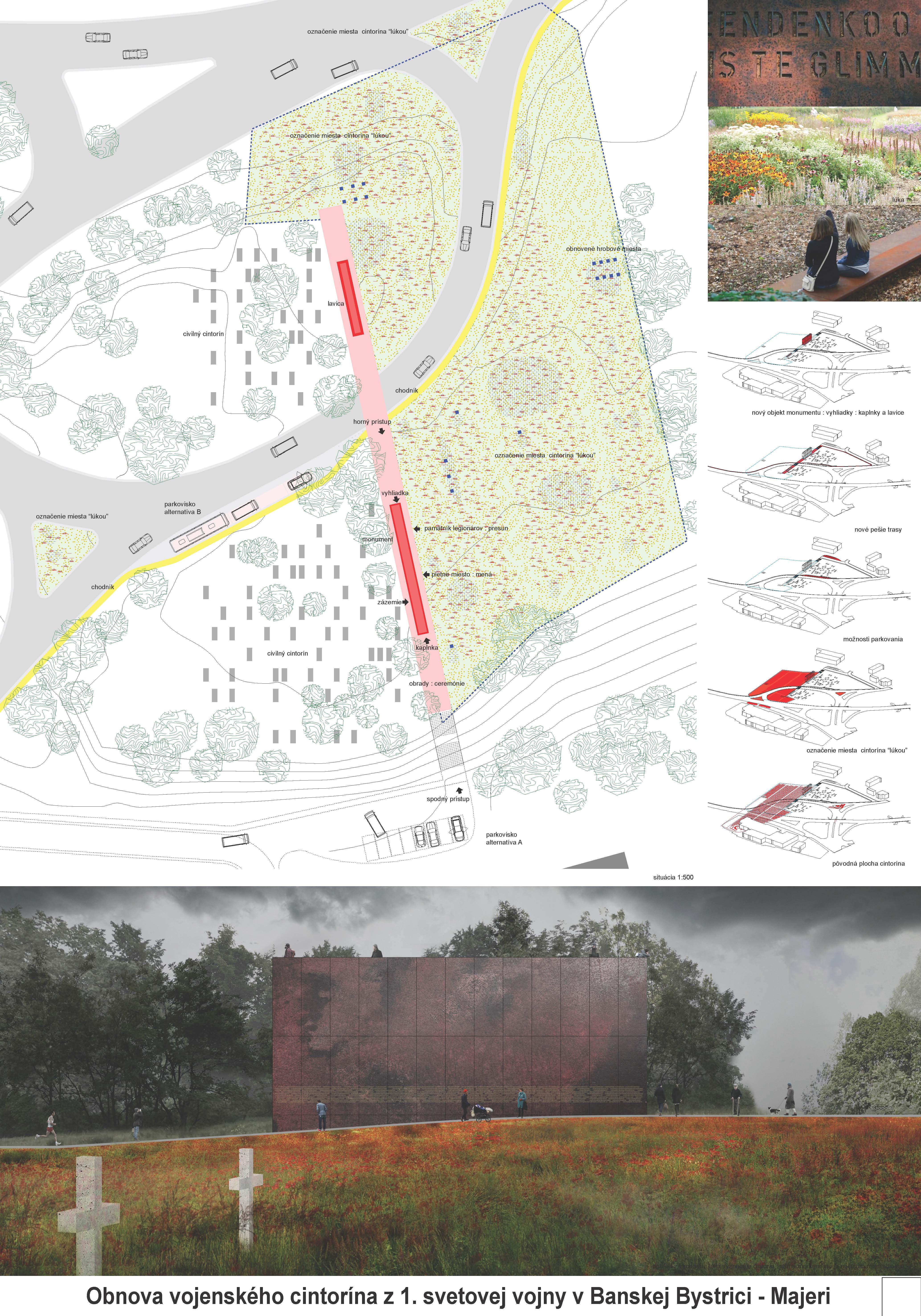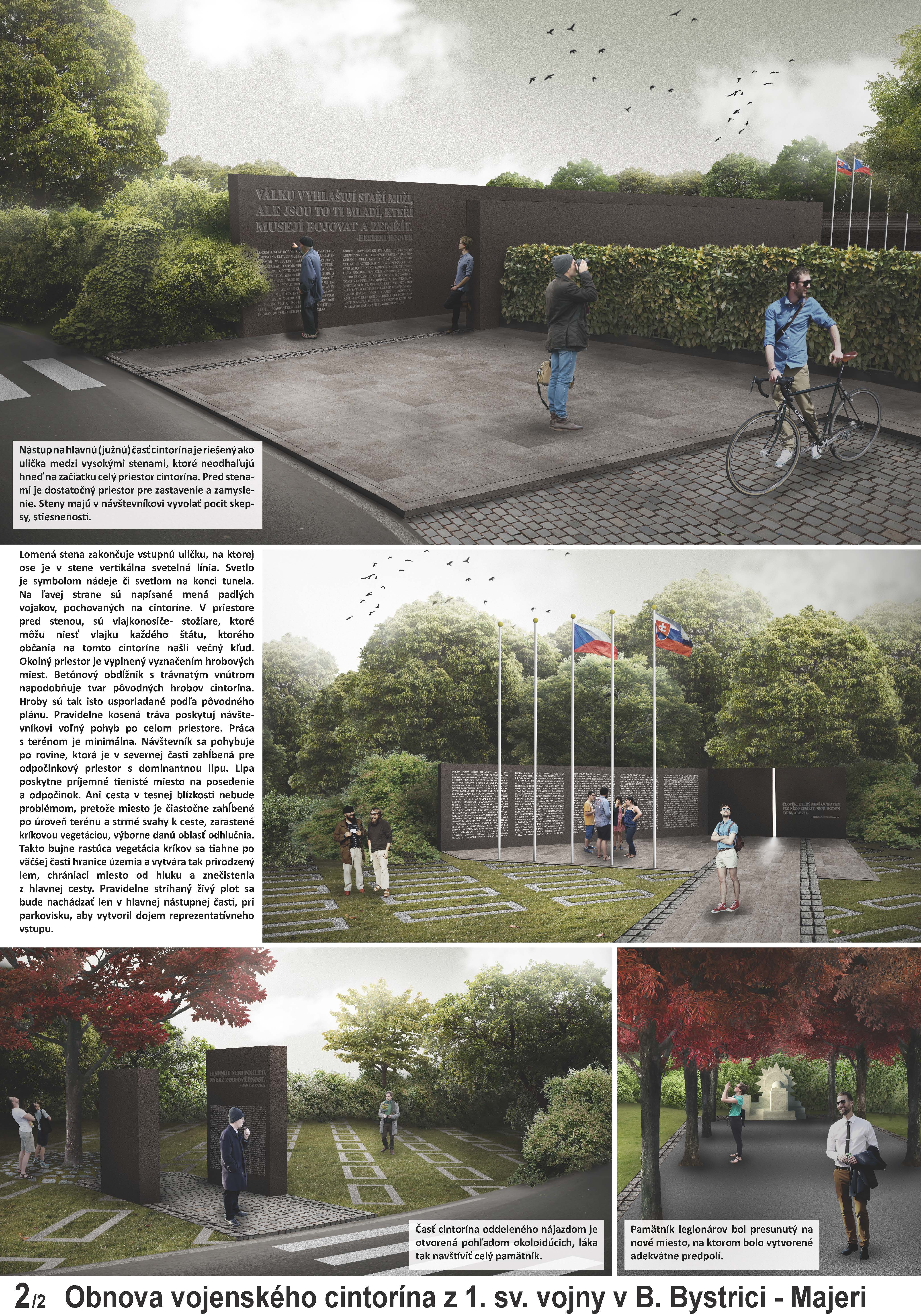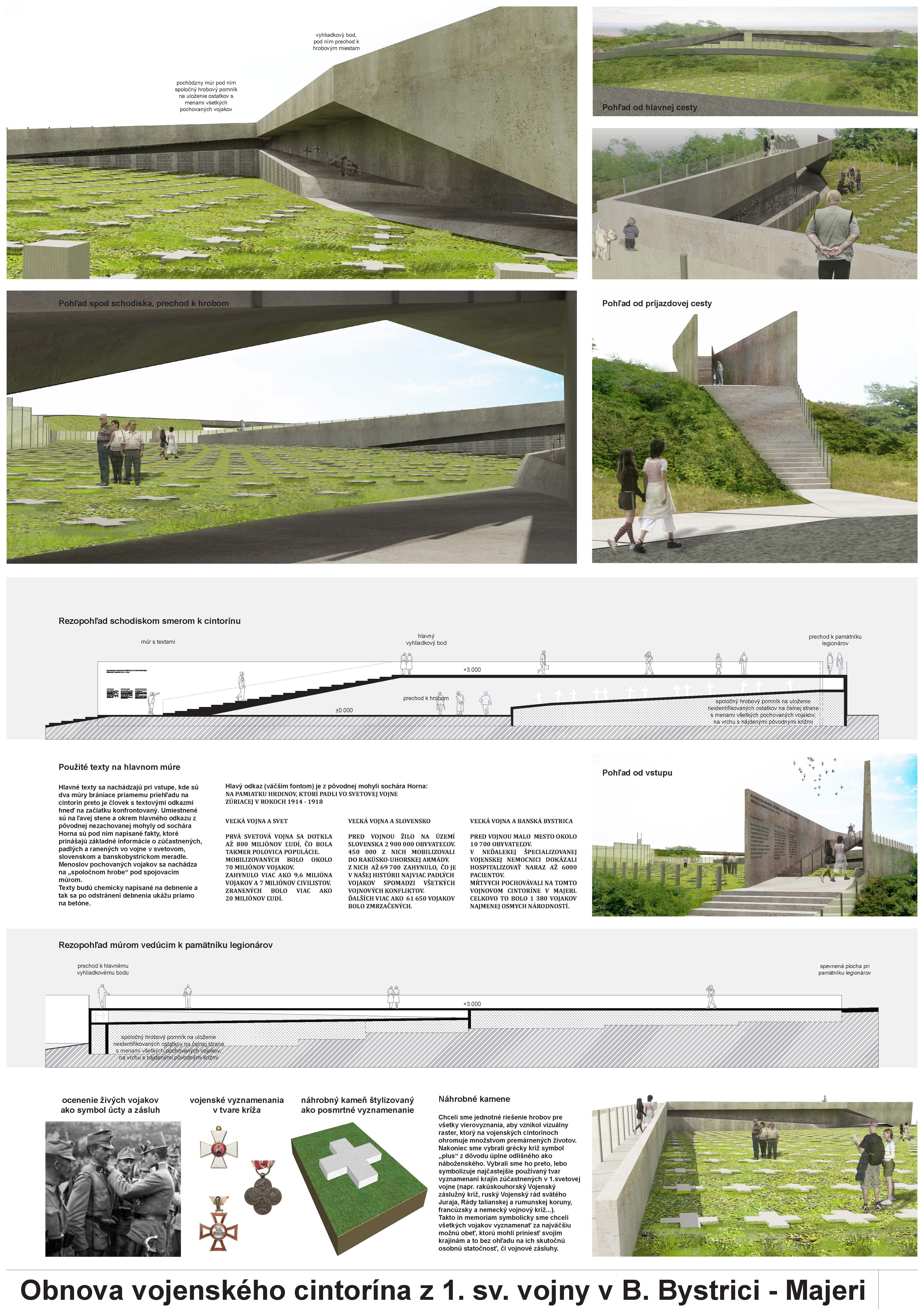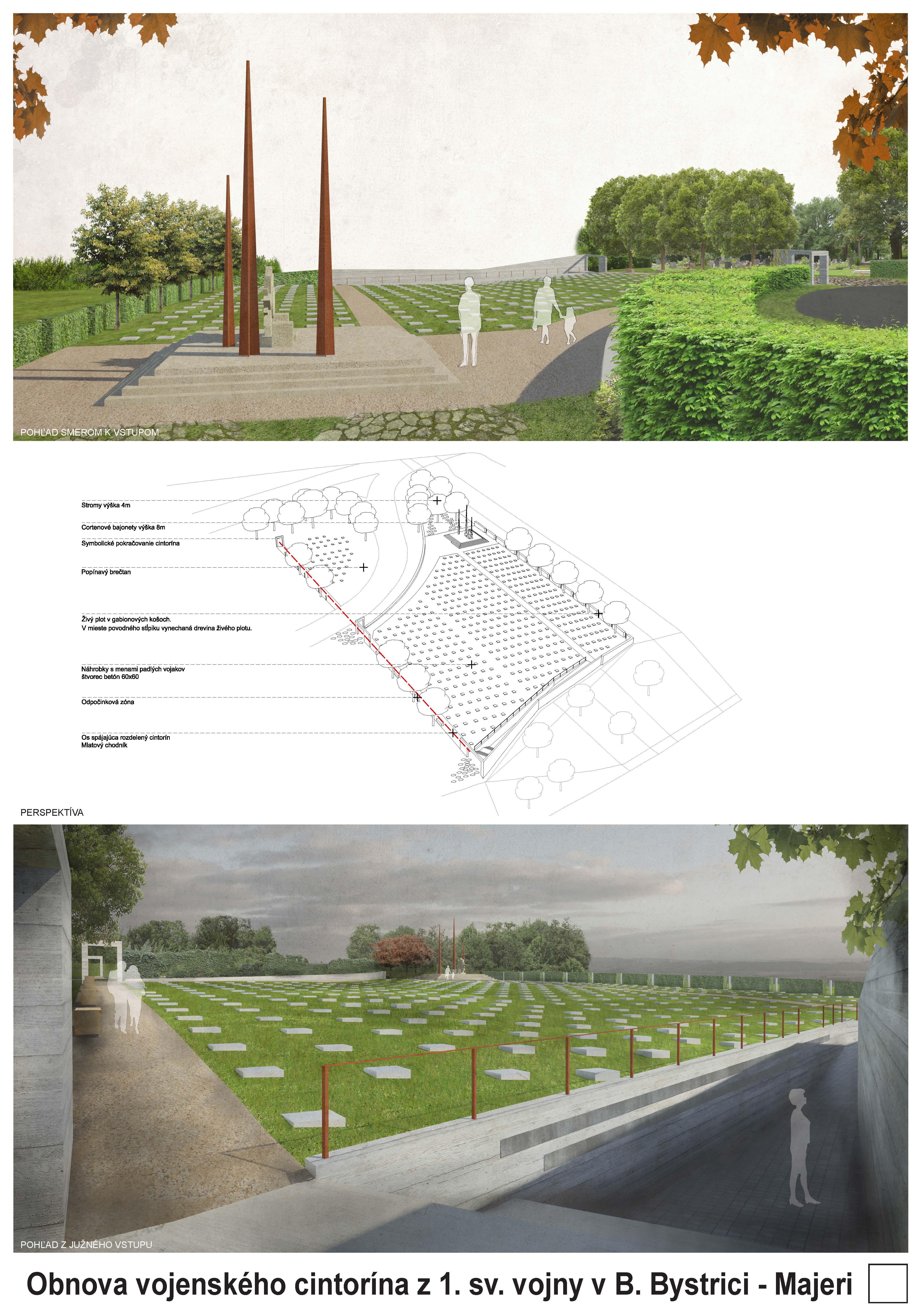 Návrh je prínosný v riešení zahĺbeného prístupového chodníka – spomienkovej cesty k cintorínu, predstavujúcej paralelu zákopu, v materiálovom stvárnení oporných stien zahĺbeného chodníka (prútené ohrady používané v zákopoch I. sv. vojny). Akceptovateľným je aj riešenie centrálnej pamätnej steny so spevnenou plochou. Vhodné umiestnenie parkoviska s napojením na cintorín.