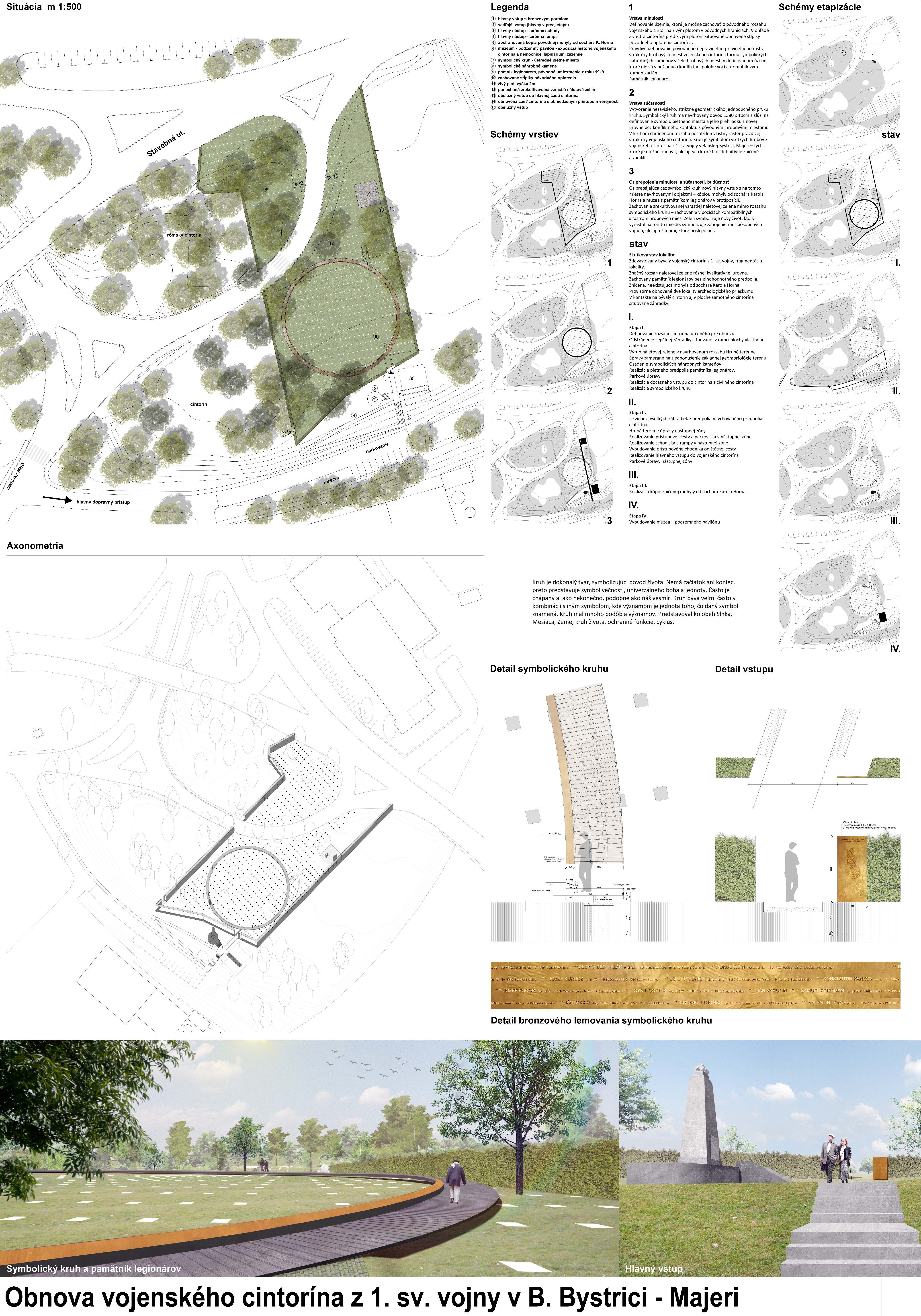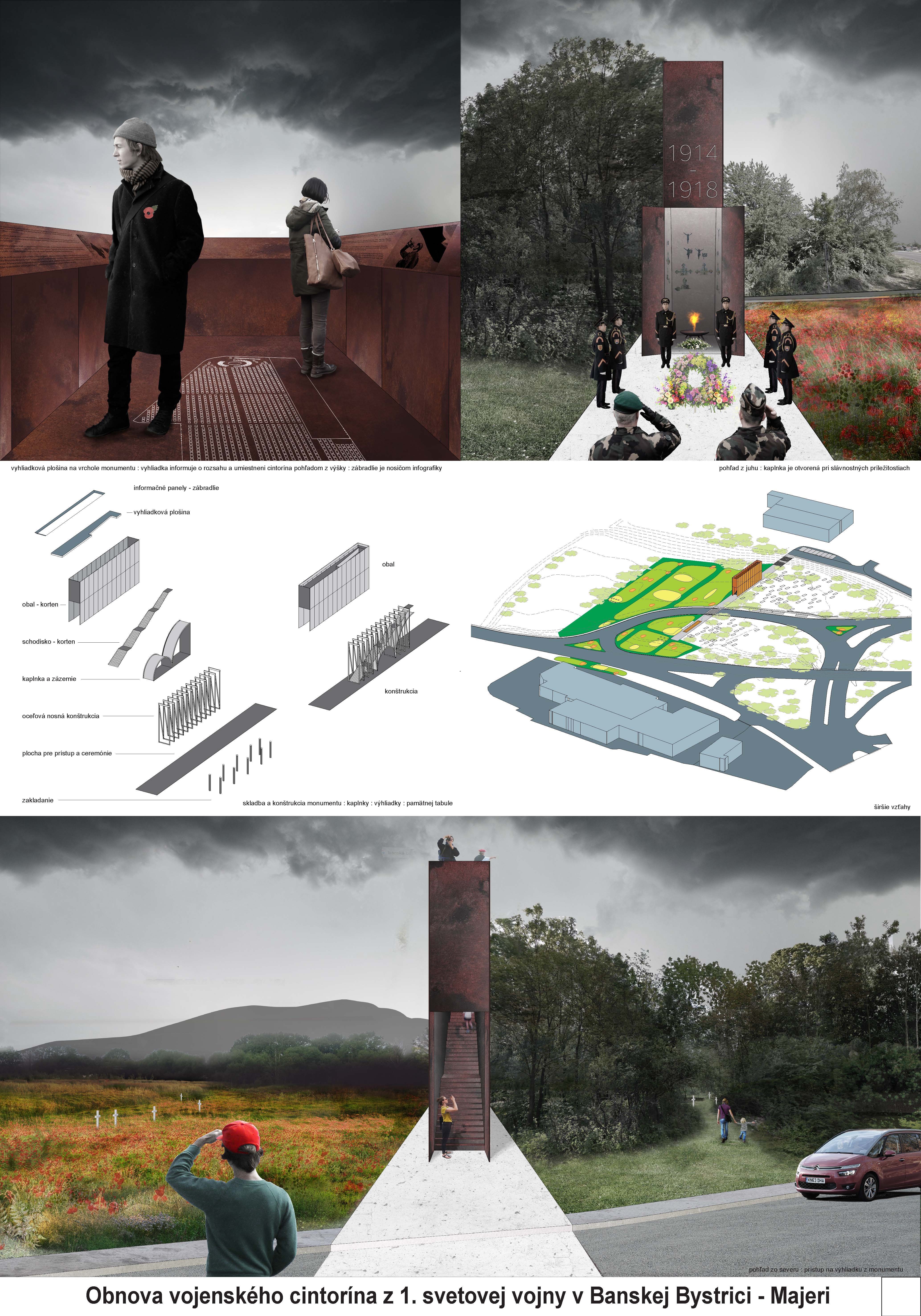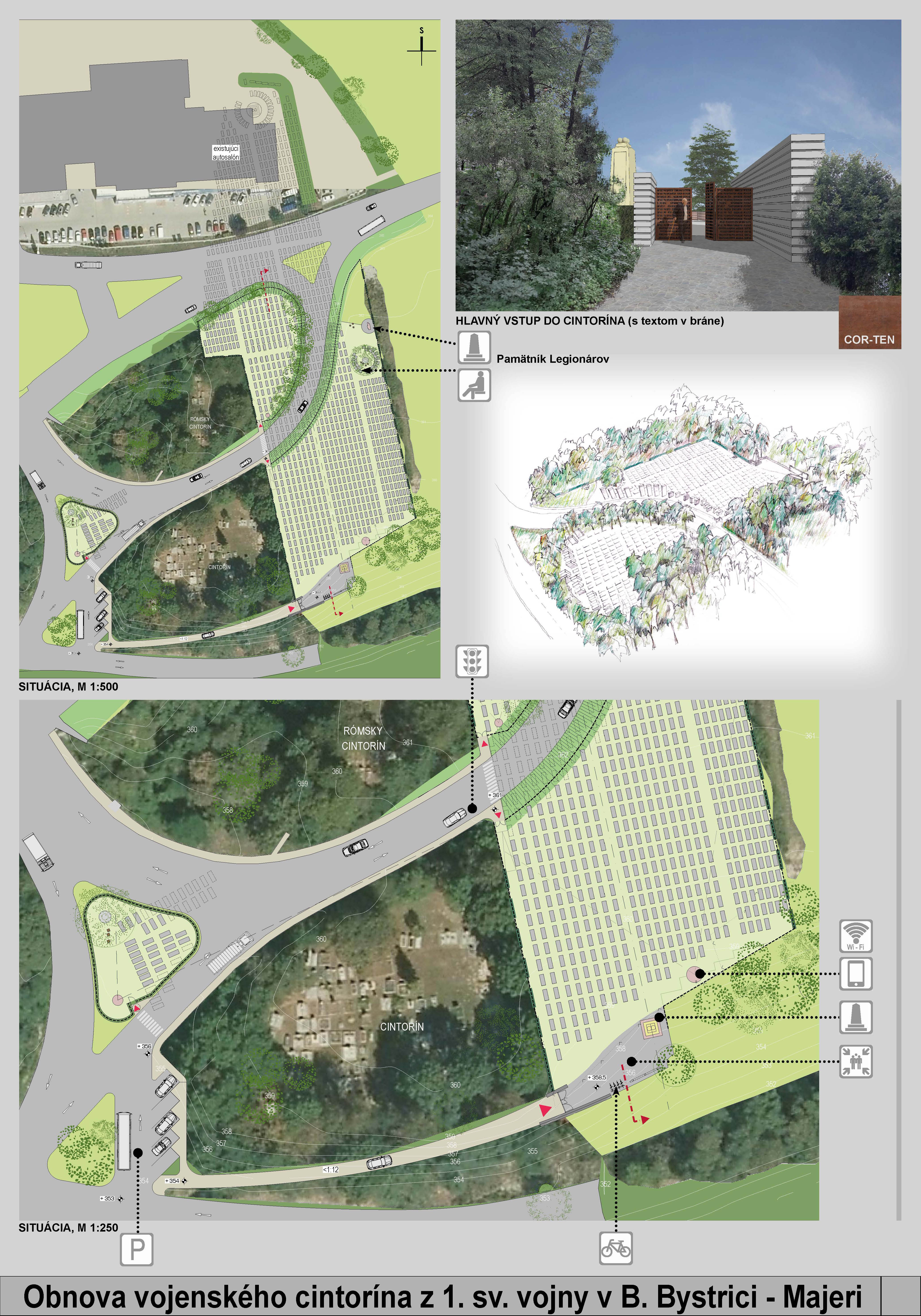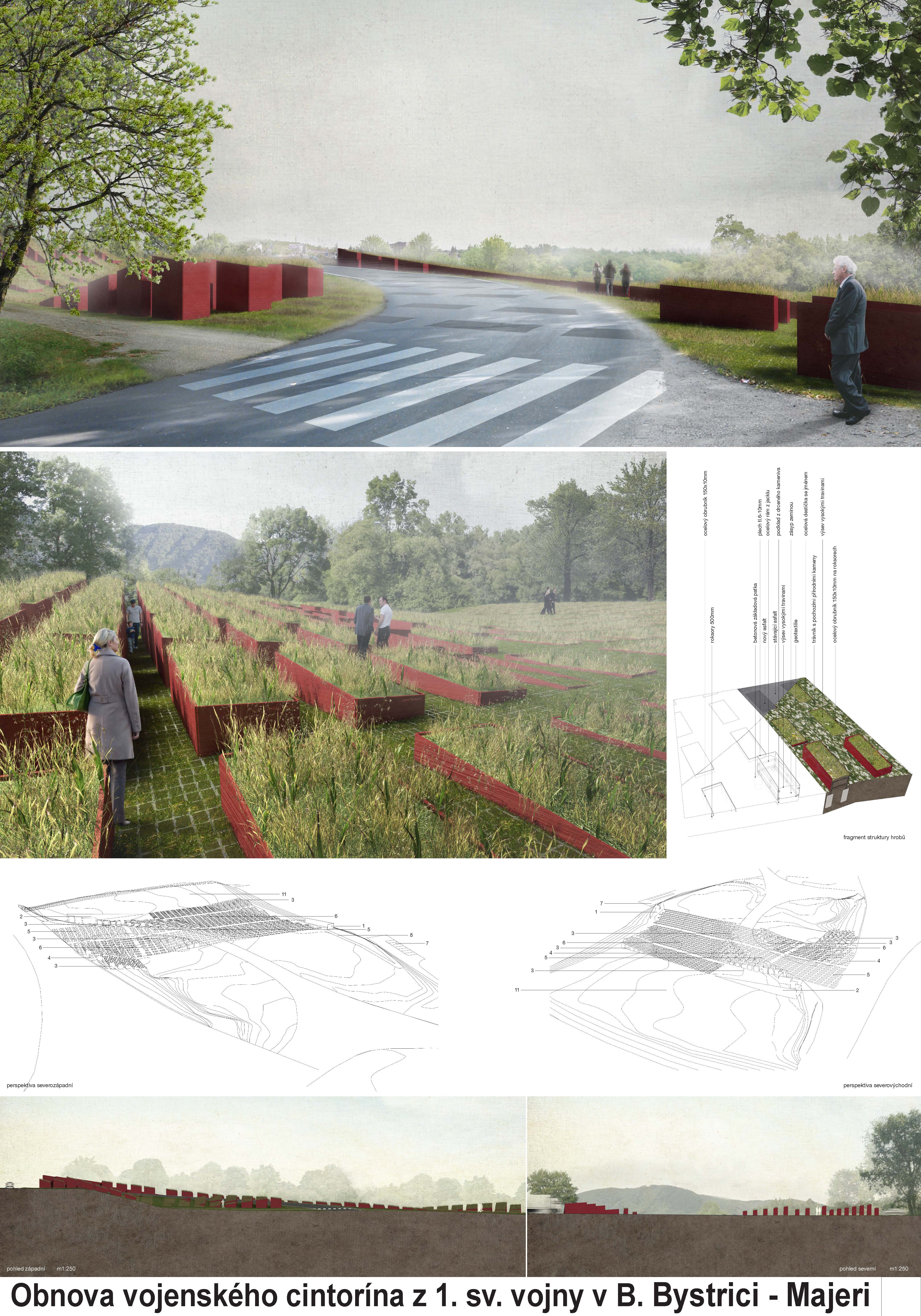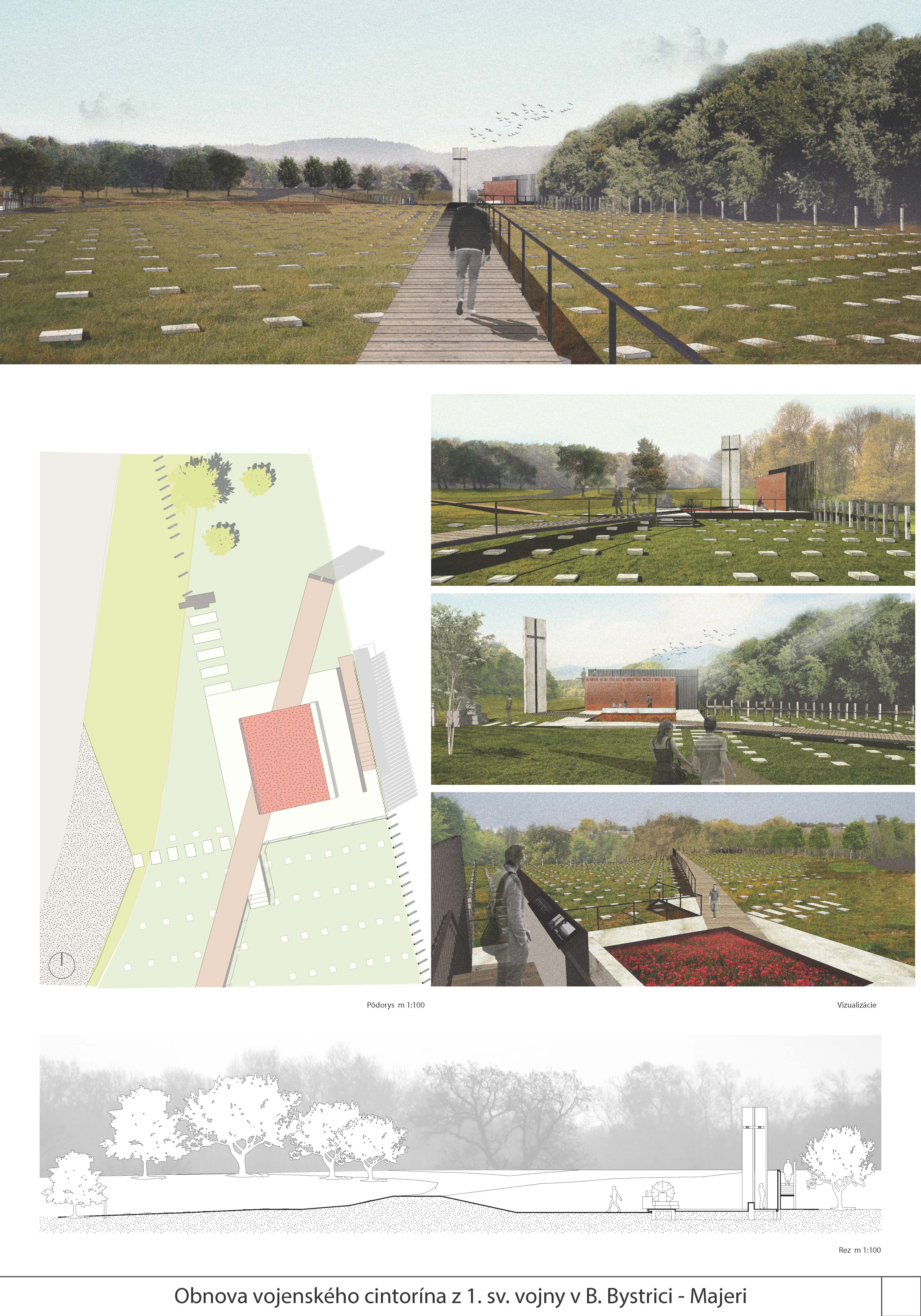Návrh je prínosný v riešení zahĺbeného prístupového chodníka – spomienkovej cesty k cintorínu, predstavujúcej paralelu zákopu, v materiálovom stvárnení oporných stien zahĺbeného chodníka (prútené ohrady používané v zákopoch I. sv. vojny). Akceptovateľným je aj riešenie centrálnej pamätnej steny so spevnenou plochou. Vhodné umiestnenie parkoviska s napojením na cintorín.