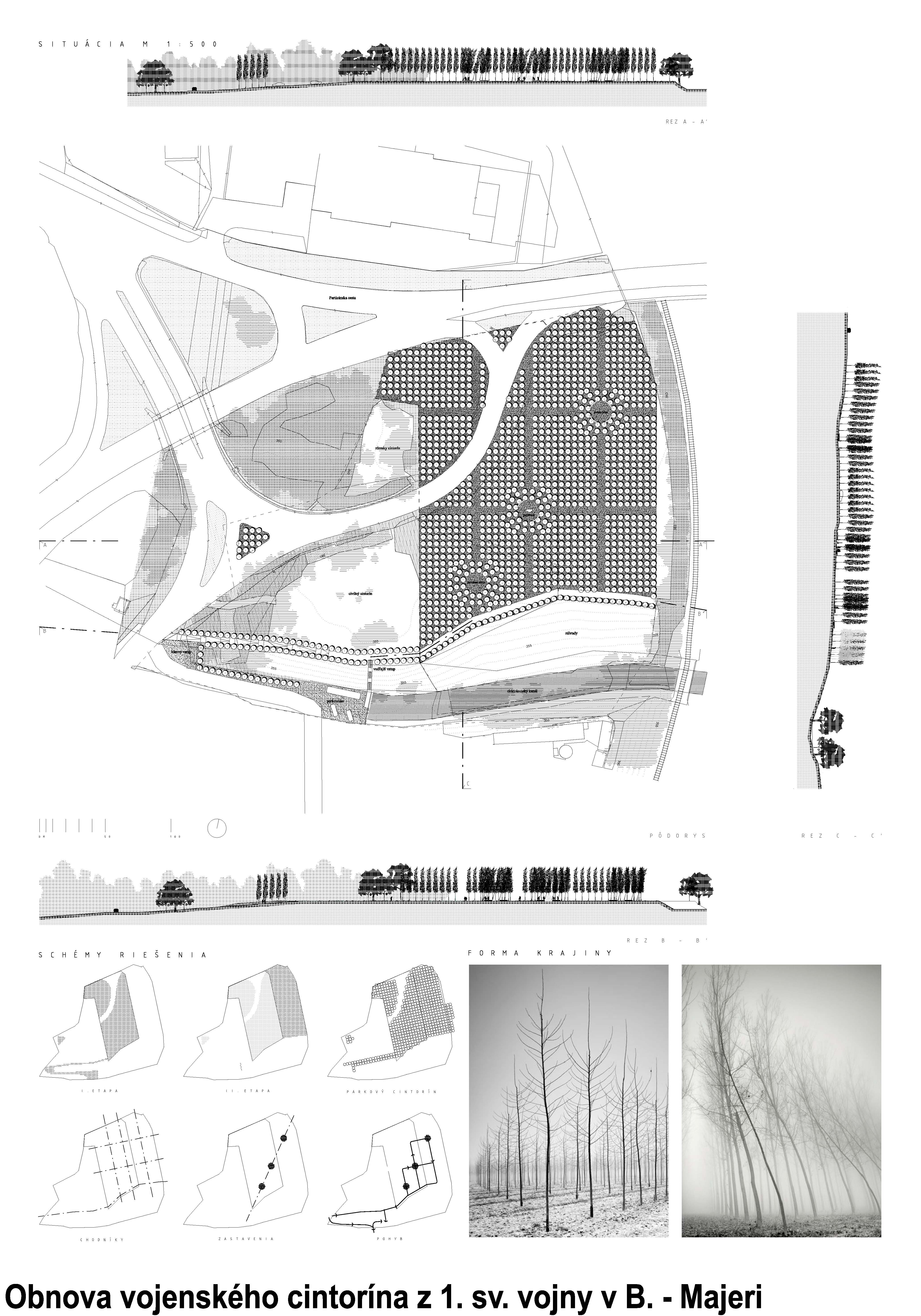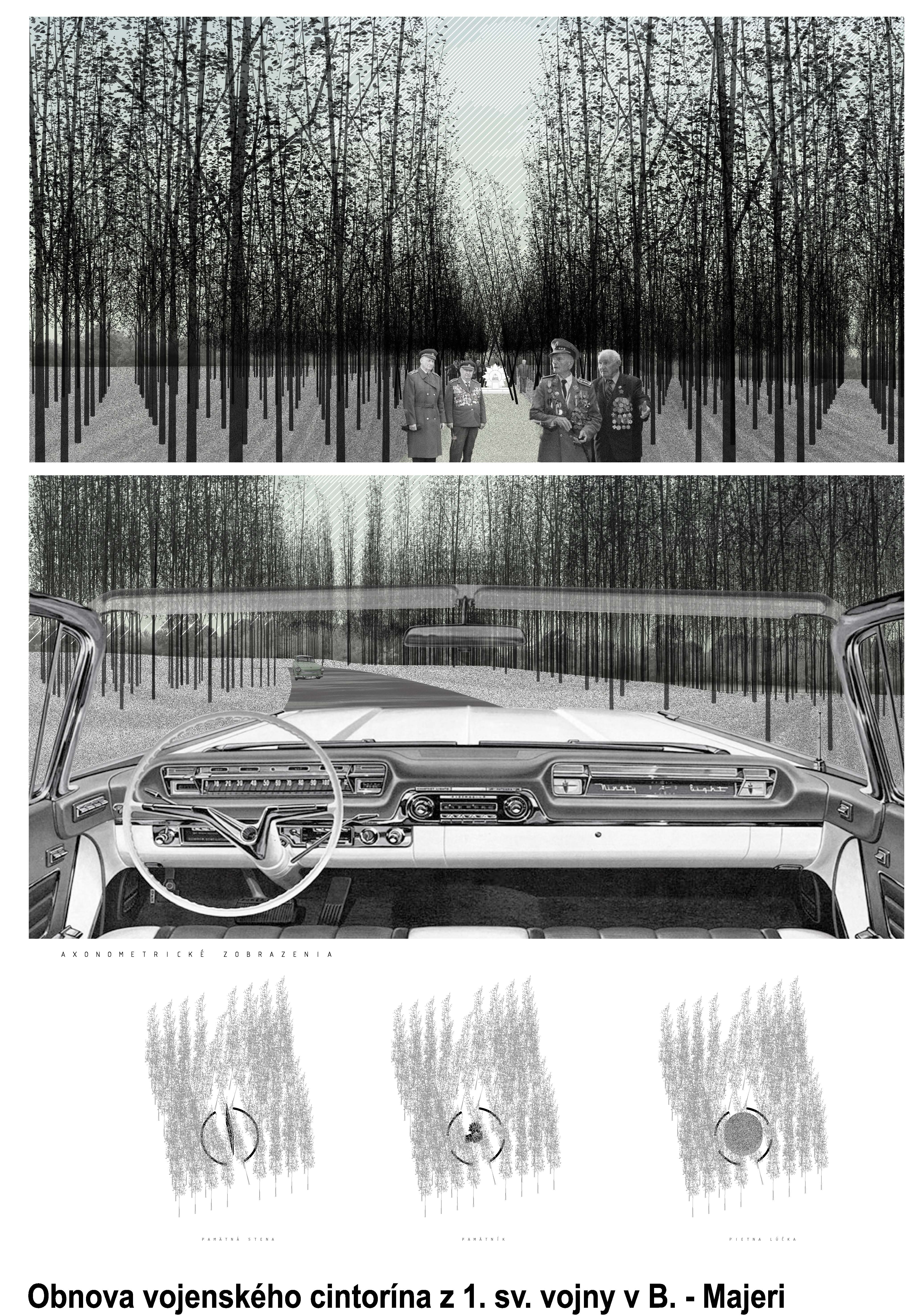 Minimalistický návrh prezentovaný výbornou grafikou s jednoduchým motívom udržiavaného priestorového stromoradia. Prezentácia všetkých (aj zaniknutých) hrobových miest využitím východných pozemkov a netradičný prístup. Efektný výsledok a ekologický prístup.
