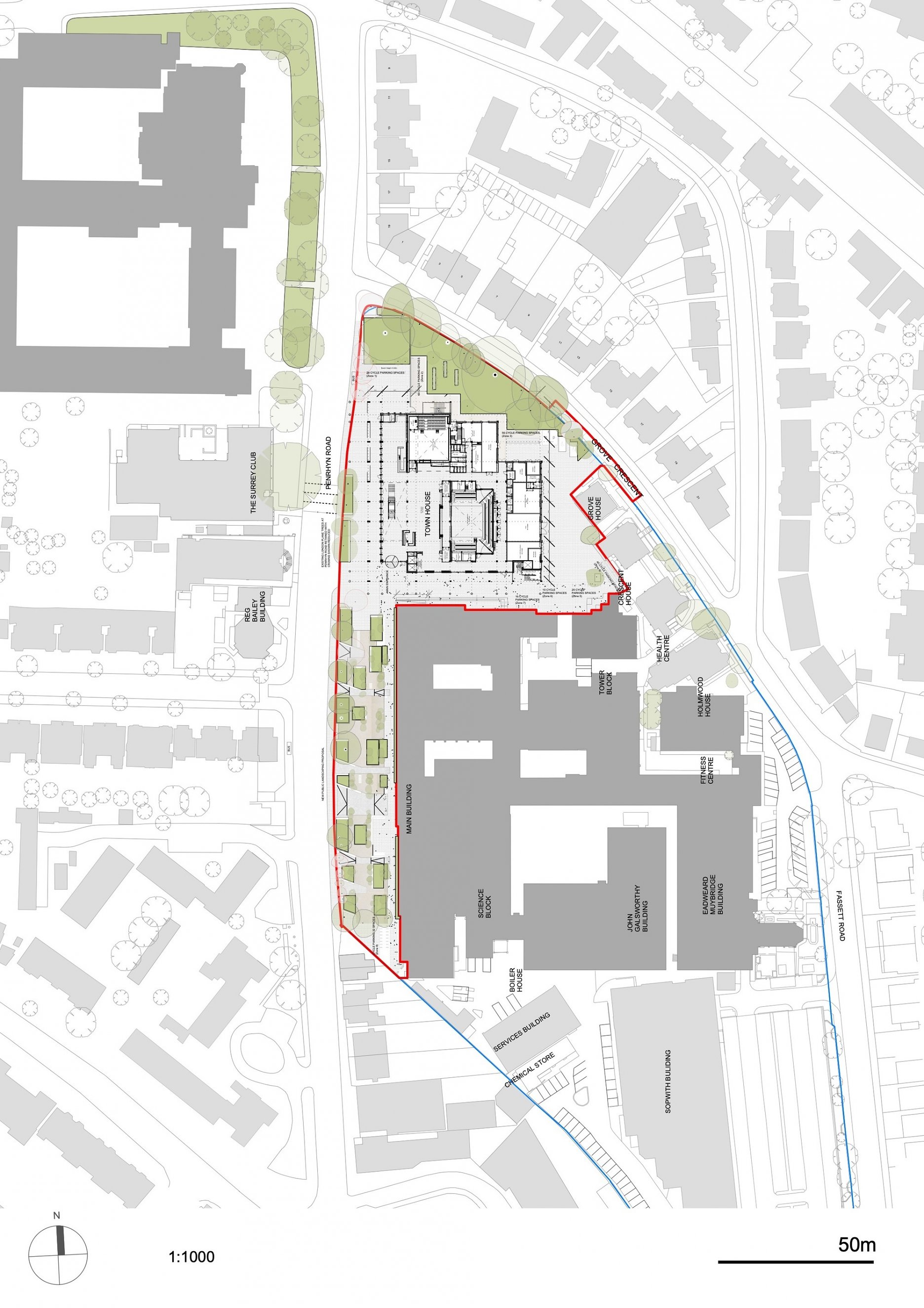 Nová univerzitná budova “Town house” je navrhnutá ako vstupná brána do kampusu Penrhyn Road. Okrem primárnej funkcie vzdelávacieho centra pre študentov, zamestnancov, absolventov a miestnu komunitu zastrešuje tiež široké spektrum kultúrnych podujatí. Flexibilné študijné priestory, hlavnú univerzitnú knižnicu, alebo študovne a archívy dopĺňajú napríklad tanečné ateliéry, kryté nádvorie s amfiteátrovým sedením, štúdiové divadlo, či dvojica kaviarní.