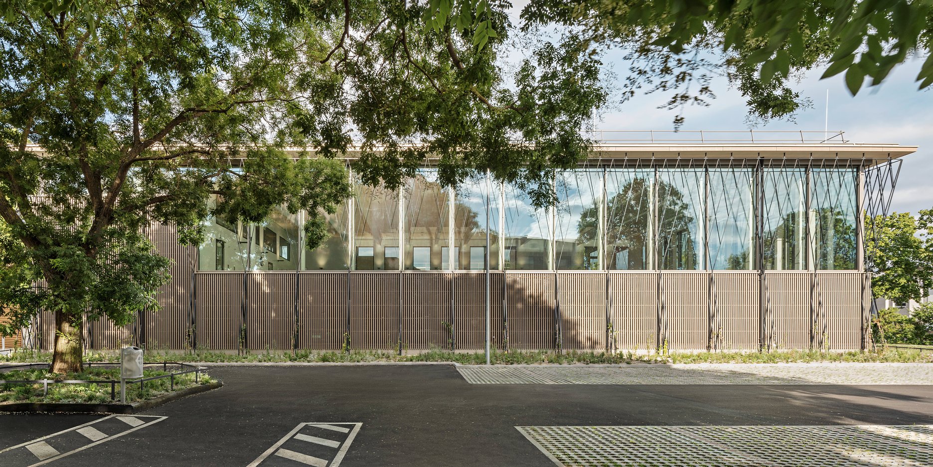 Objekt dopĺňa komplex z prvej polovice 80. rokov a je navrhnutý predovšetkým pre školské a klubové využitie. Autorky z ateliéru illiz architektur novostavbu od existujúceho vstupného krídla jasne odlíšili, no súčasne ju prevádzkovo presne napojili tak, aby celý areál fungoval ako jeden logický celok.