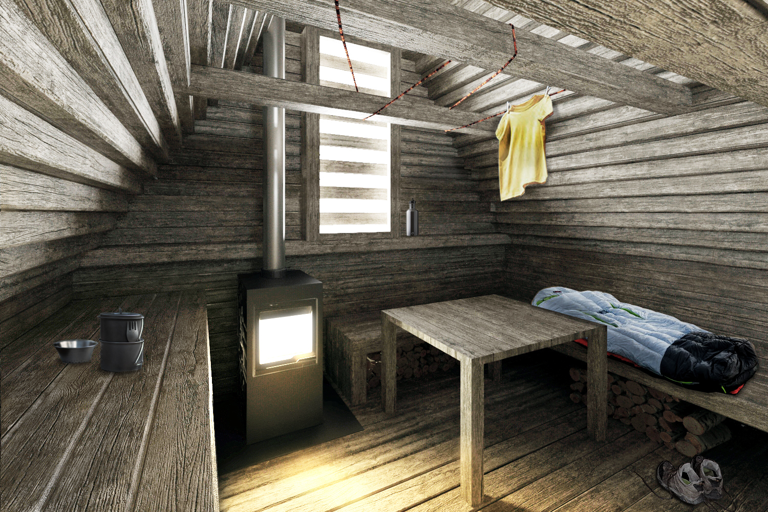 Ideovo sme pracovali s témou koliby, ktorá dodnes svojim spôsobom slúži ako horské obydlie. Tento archetypálny objekt je formálne i konštrukčne jednoznačný. Pracuje so zakladným konštrukčným prvkom, ktorý sa stáva priamou súčasťou interiéru. Znovubjavením a následnym pretvorením tradičnej zrubovej konštrukcie vytvárame objekt, ktorý v sebe nesie stopu minulosti a zároveň prináša zážitok z priestoru. Priznaná drevená konštrukcia vo svojej nahote pripomína utilitárnosť objektu.