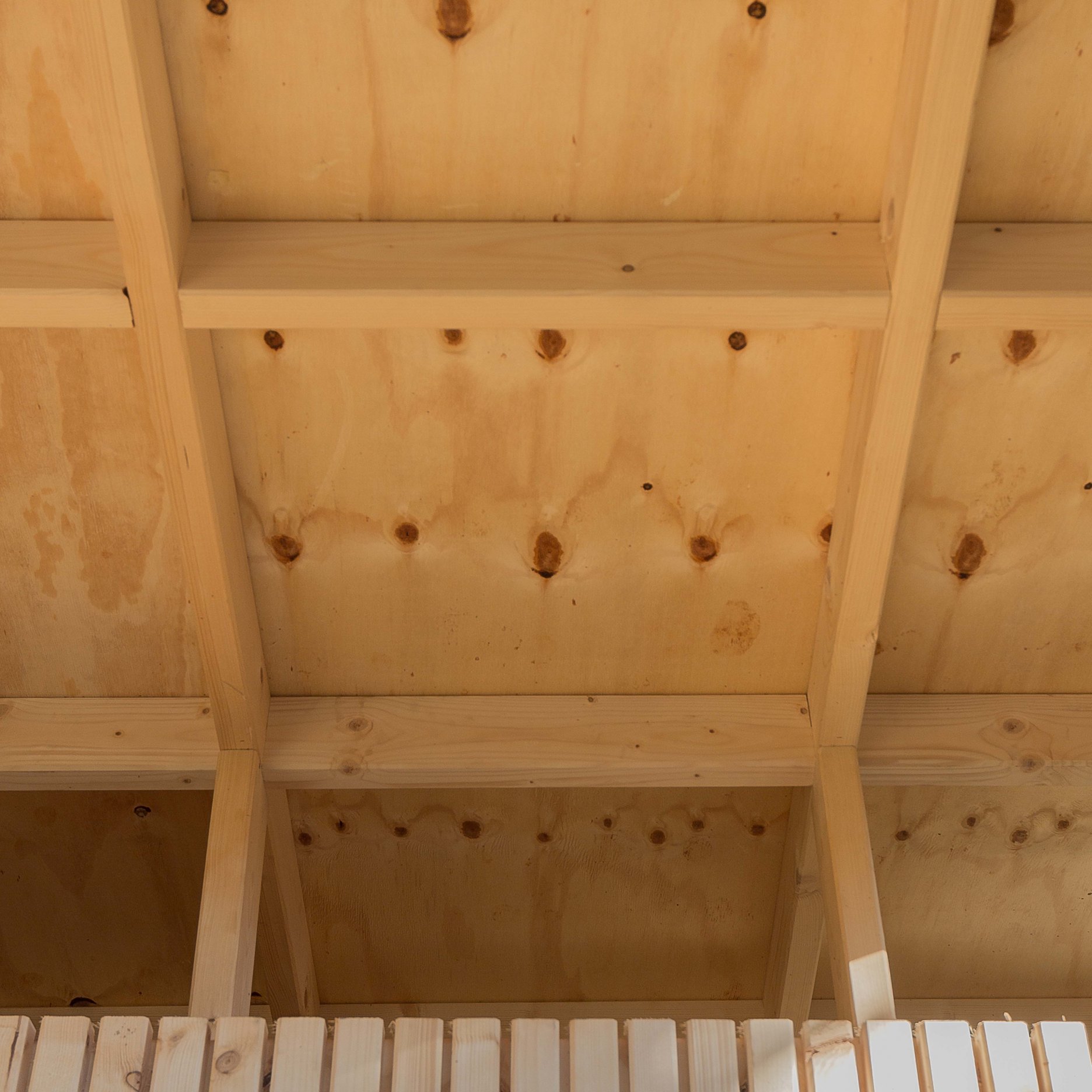 Konštrukciu spodnej stavby pripravovali členovia združenia svojpomocne. Následne prebiehal workshop Organica, na ktorom postavili steny zo slamených balíkov. Išlo o experimentálne uloženie balíkov na bočnú hranu “na kant”. Balíky by tak, mali byť previazané samotnými steblami slamy. Následne sme sa do realizácie zapojili aj my. Naša Dielňa HAUS vybudovala strechu, čelnú stenu s vrátami a podlahu. Organica realizovala hlinené omietky na ďalšom worskhope a dokončovacie práce zabezpečili opäť domáci.
