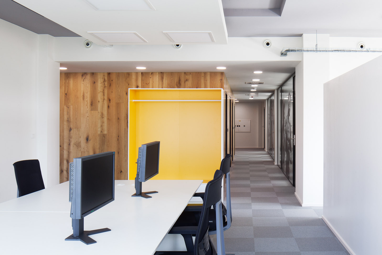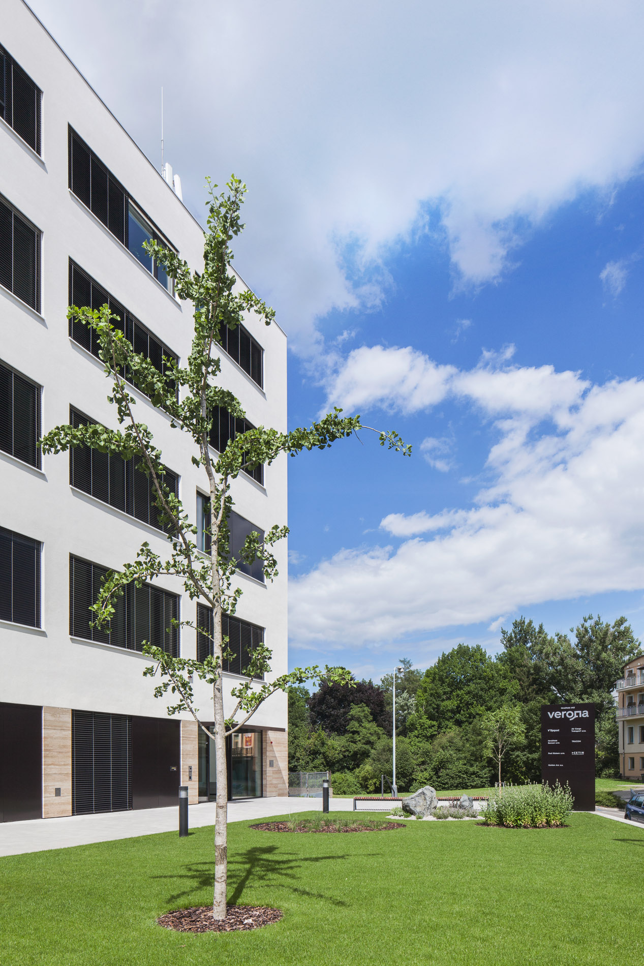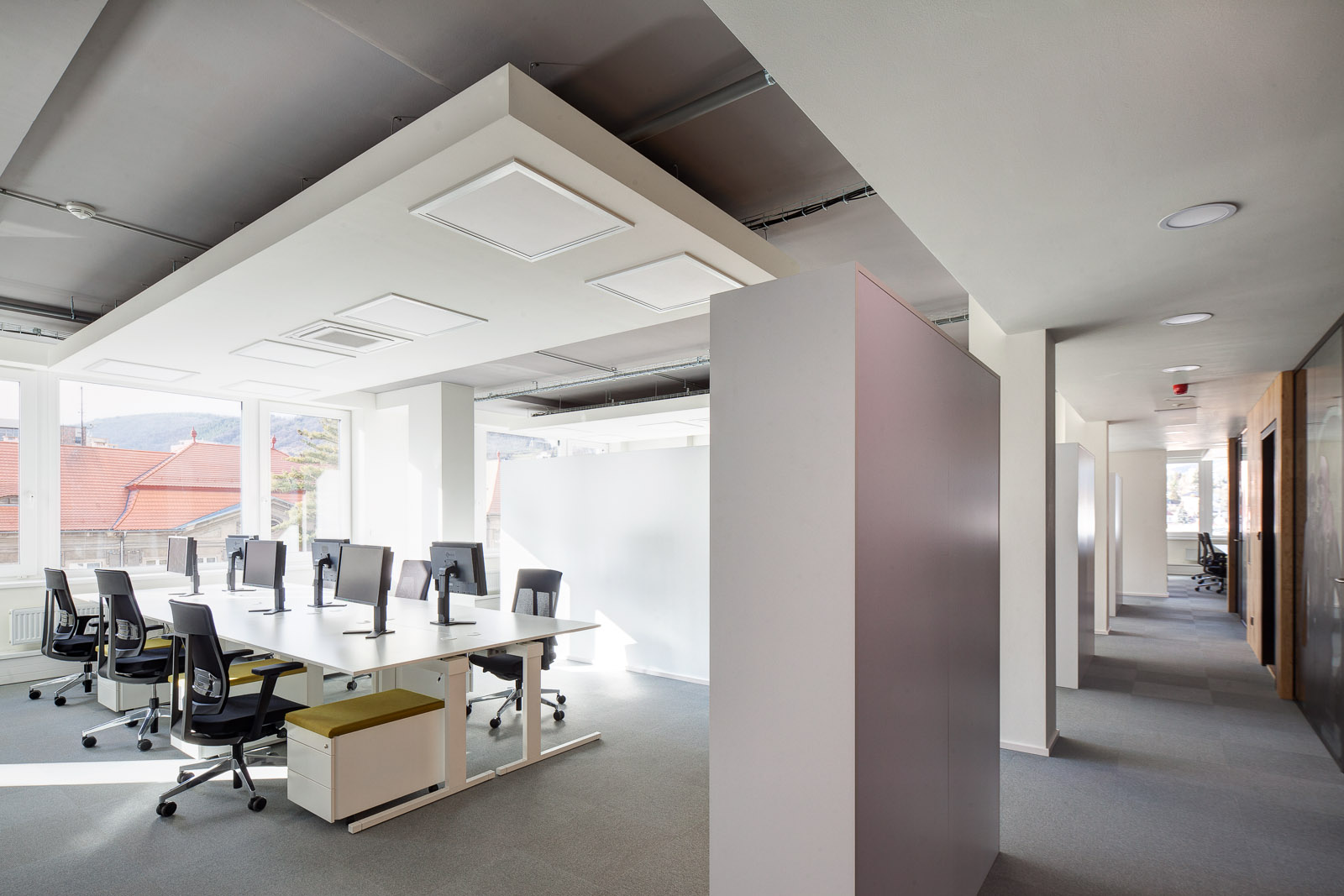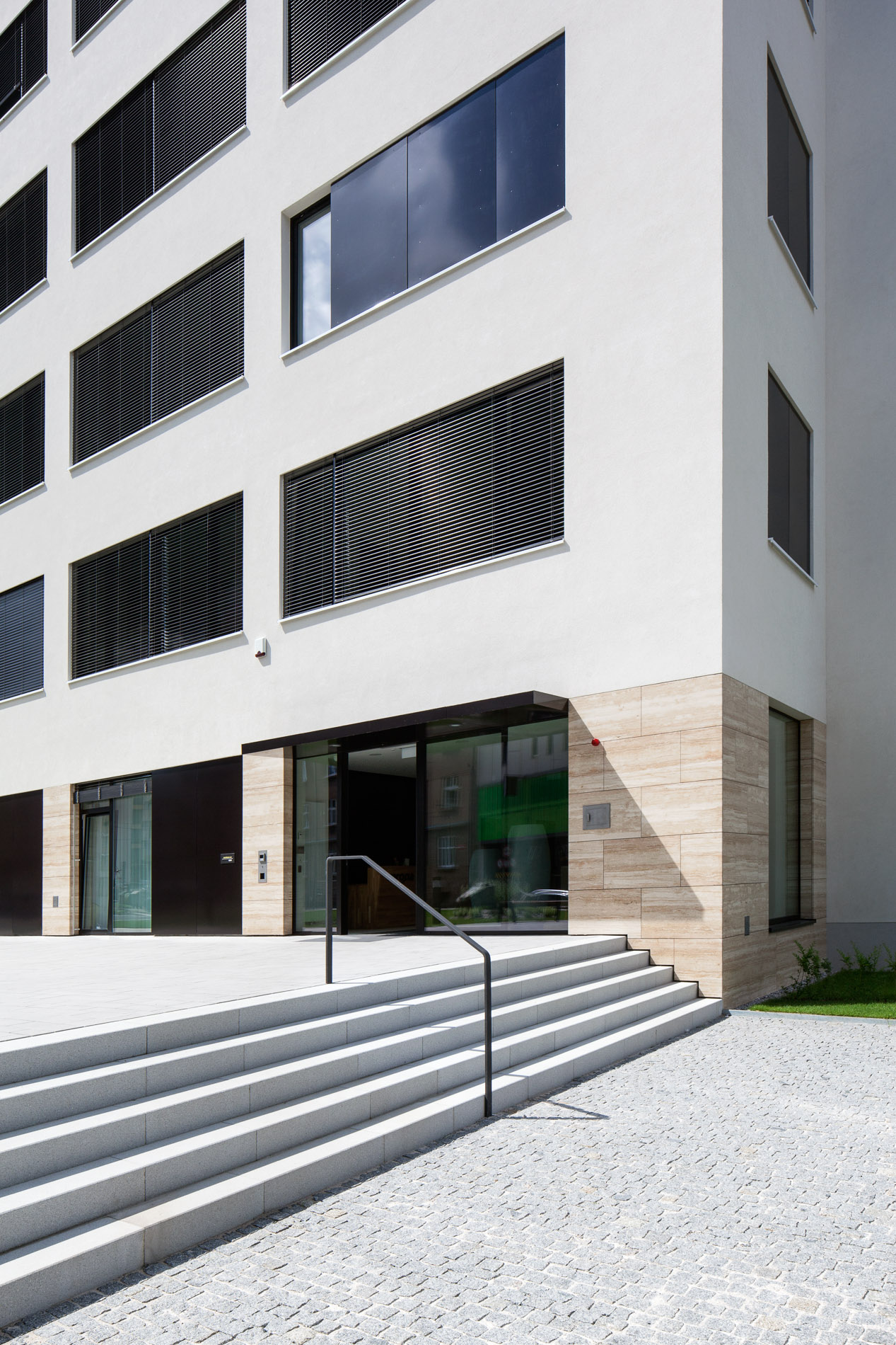 Cieľom prestavby bolo budovu viac začleniť do mestskej štruktúry, otvoriť jej parter a premeniť ju v mestský administratívny komplex. Univerzálny železobetónový prefabrikovaný skelet bol zachovaný a využitý pri prestavbe na súčasné kancelárske priestory. Vonkajší plášť budovy bol prerazený veľkými otvormi, ktoré menia mierku masívneho objemu. Parter pomáha definovať verejný mestský priestor ulice a poloverejné reprezentatívne vstupné plochy.