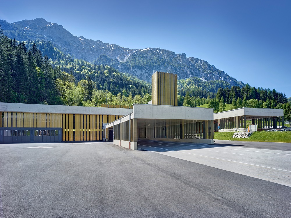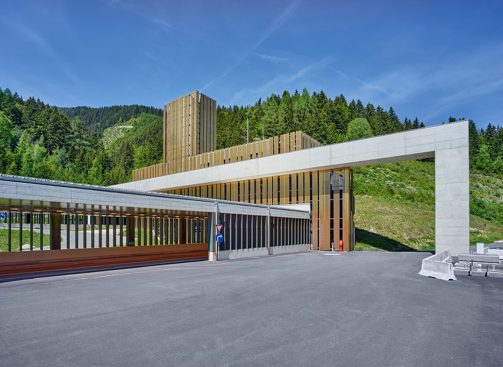 V meste Bosruck nájdeme viacero príkladov kvalitnej architektúry zrealizovanej v posledných rokoch. V tomto prípade slúži ako leitmotív návrhu materiál. Rad zásten je vyrobený z dierovaných mosadzných kaziet. Panely sú profilované a usporiadané tak, aby odrážali vertikalitu okolia a čiastočne prekrývali budovy a zariadenia potrebné na prevádzku a zabezpečenie tunelov. Rytmy vertikálnych mosadzných zásten podčiarkujú zážitok cestujúcich, ktorí sa približujú a vchádzajú priamo do stavby a dramatickú “letiacu strechu” vstupnej a výstupnej galérie, pôsobiacou ako prechodný priestor medzi tunelom a exteriérom.