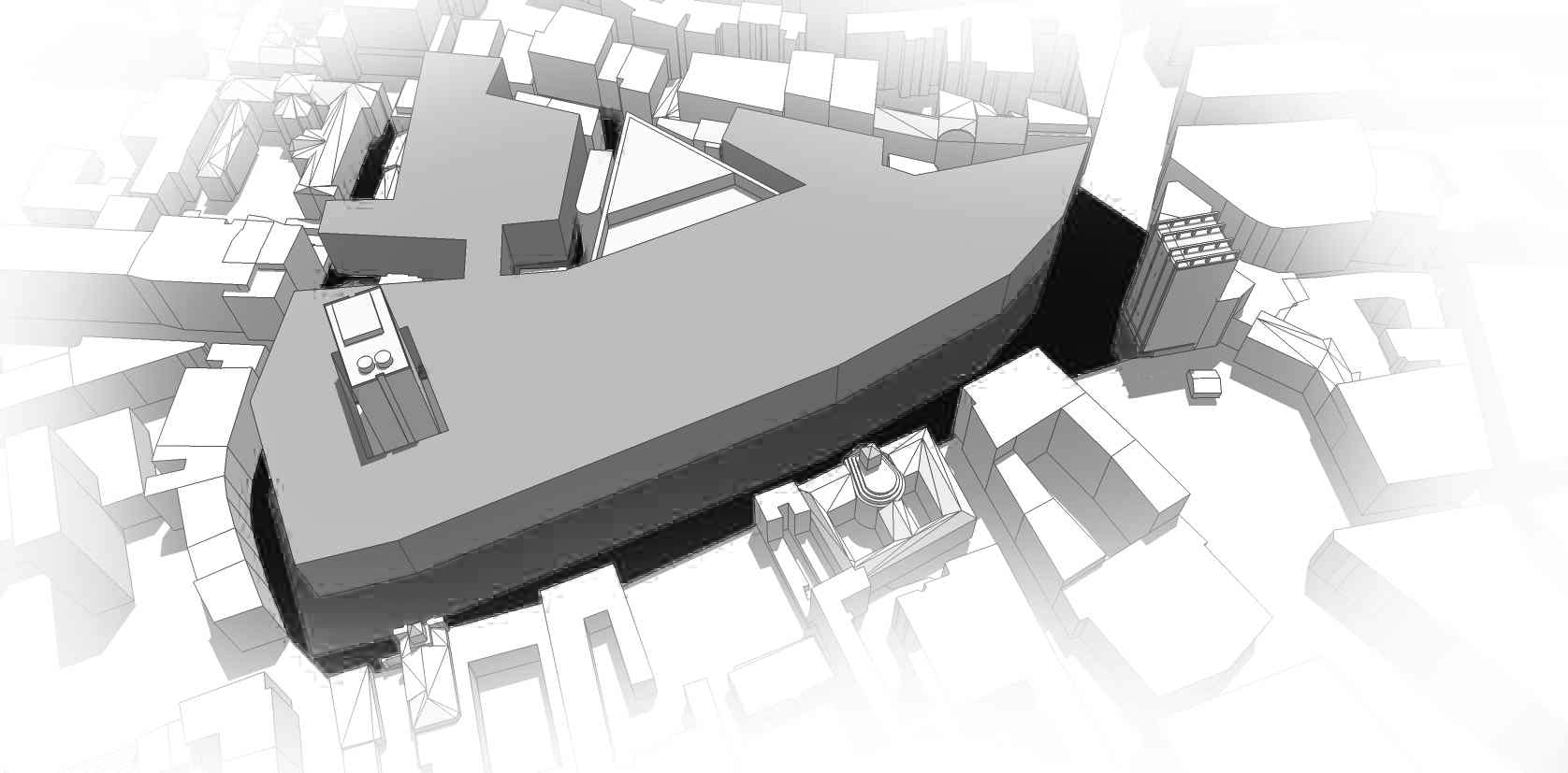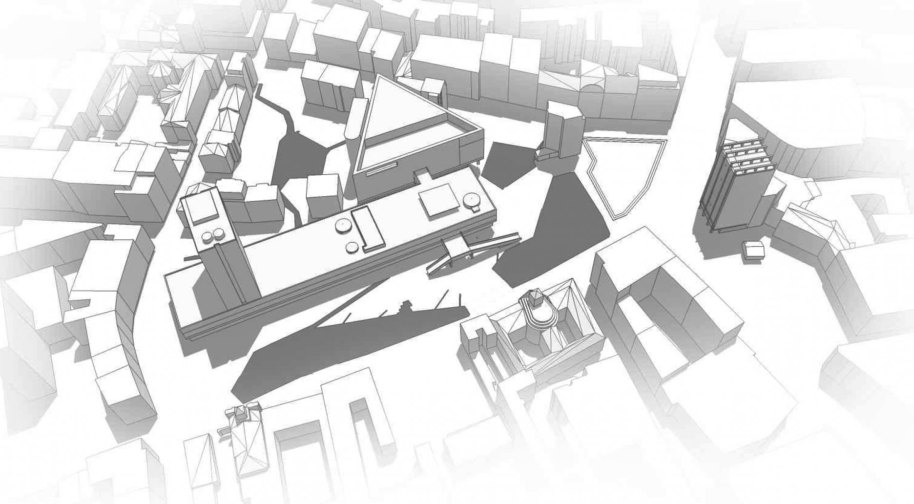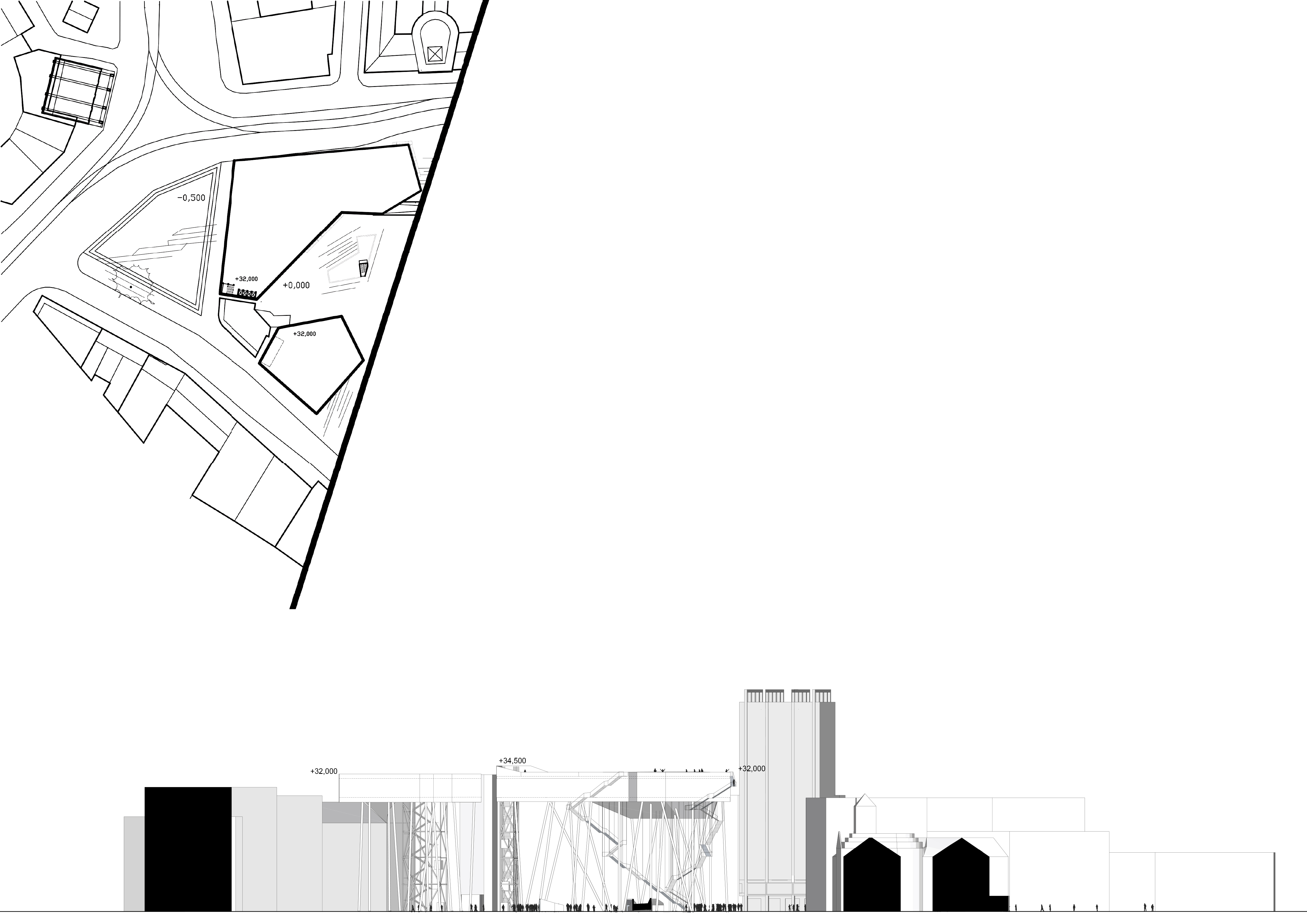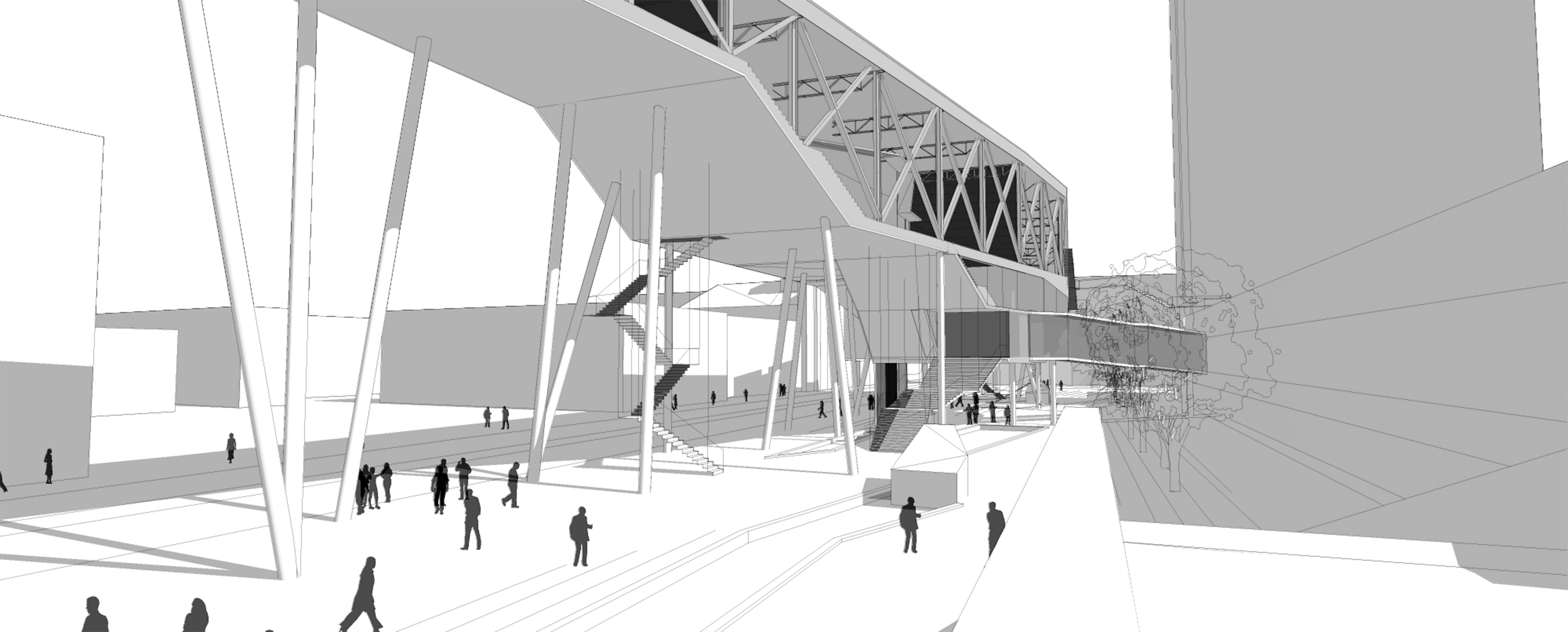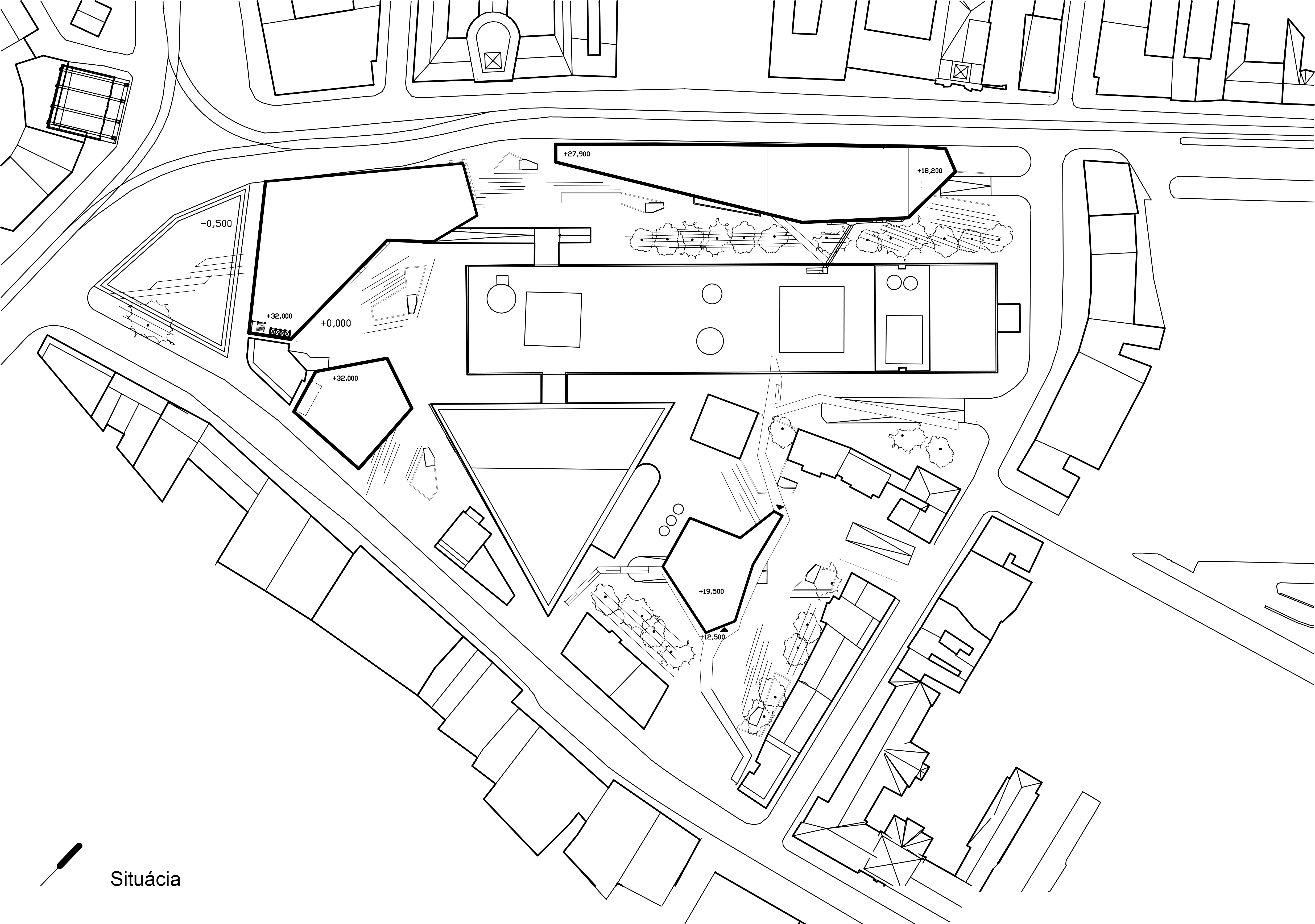 Nová, verejnosti prístupná výšková vrstva objektov umožňuje zažívanie verejného priestoru inak ako doposiaľ a vnímať tak aj celkovú panorámu mesta v srdci mesta a v neposlednej rade vnímať aj Matušíkovú architektúru, ktorá je integrovaná do celej skladby sprístupnením pochôdznej strechy s potenciálom nového využívania pomocou lávok vedúcich priamo na jej úroveň. Levitujúca architektúra je nesená tenkými stĺpmi, aby vznikal v čo najväčšej možnej miere dojem vznášania sa v oblakoch.