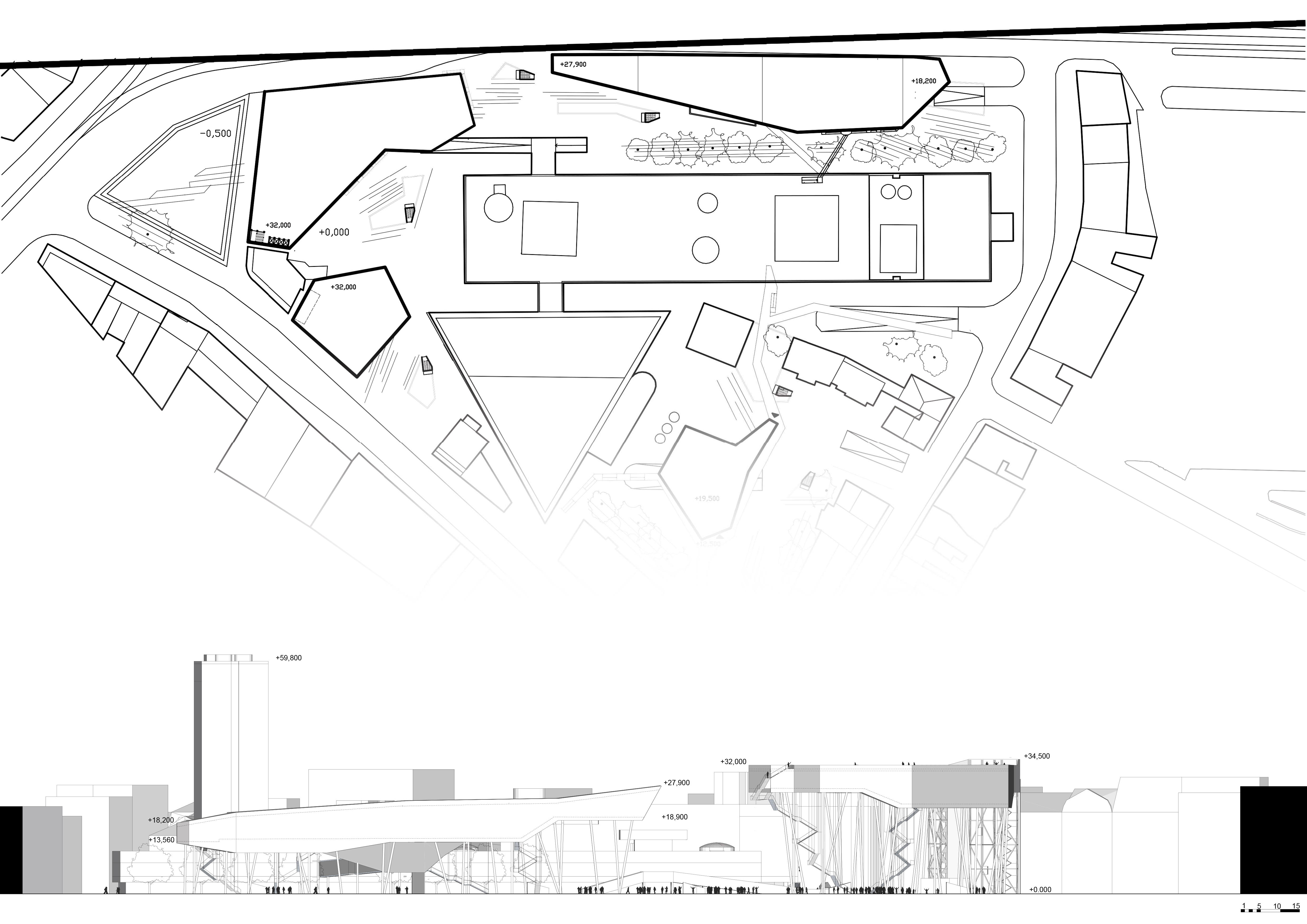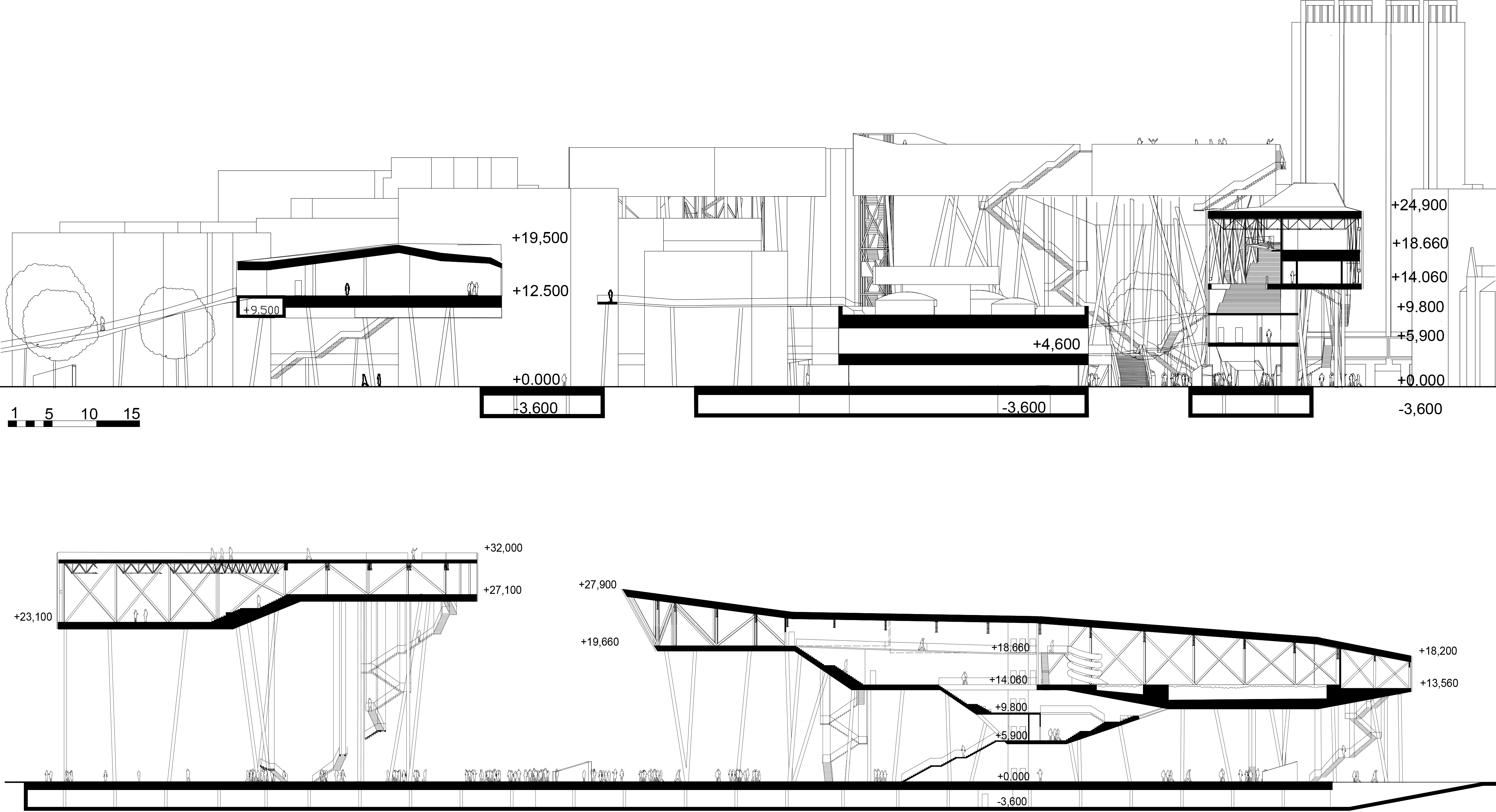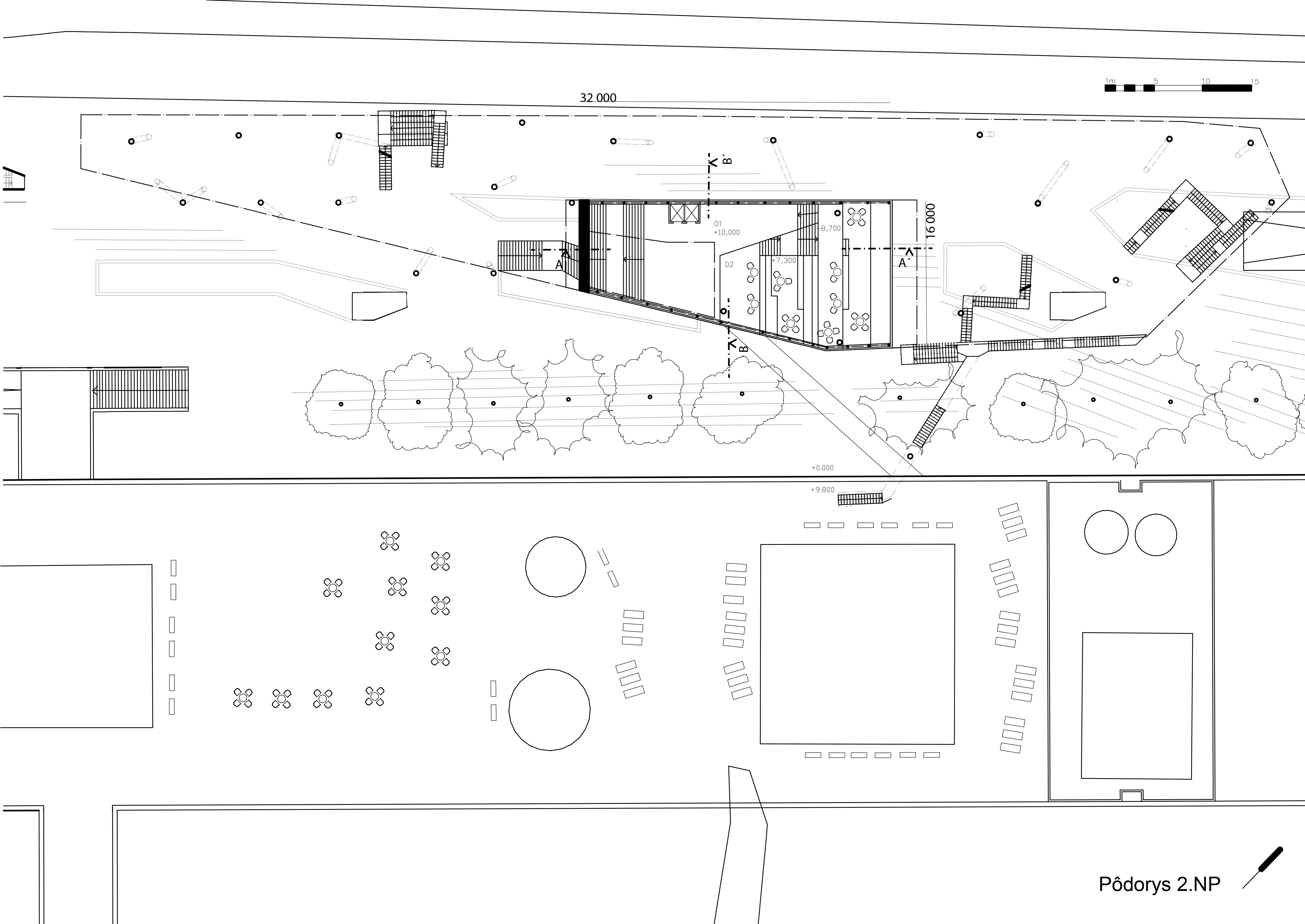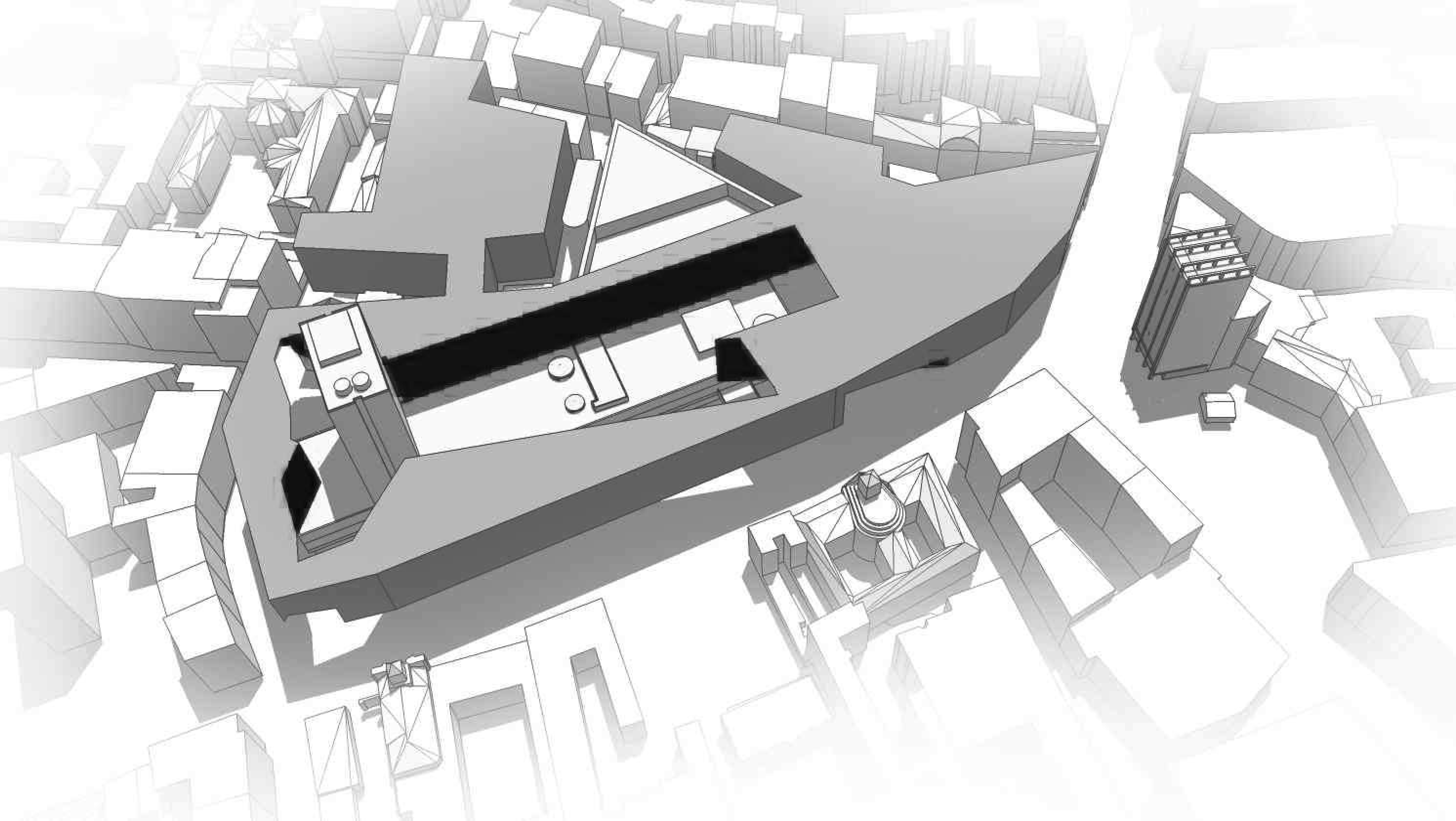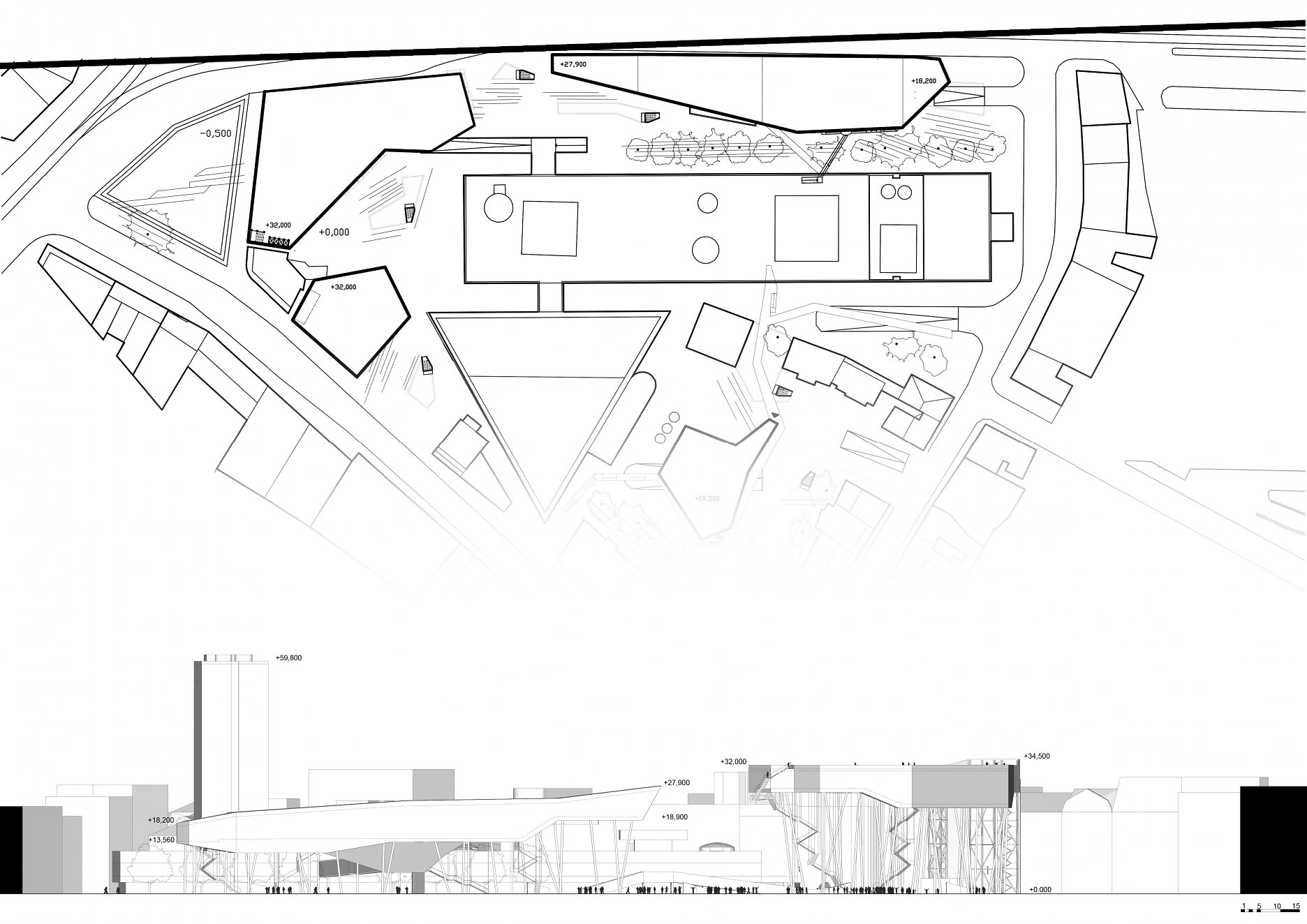Nová, verejnosti prístupná výšková vrstva objektov umožňuje zažívanie verejného priestoru inak ako doposiaľ a vnímať tak aj celkovú panorámu mesta v srdci mesta a v neposlednej rade vnímať aj Matušíkovú architektúru, ktorá je integrovaná do celej skladby sprístupnením pochôdznej strechy s potenciálom nového využívania pomocou lávok vedúcich priamo na jej úroveň. Levitujúca architektúra je nesená tenkými stĺpmi, aby vznikal v čo najväčšej možnej miere dojem vznášania sa v oblakoch.