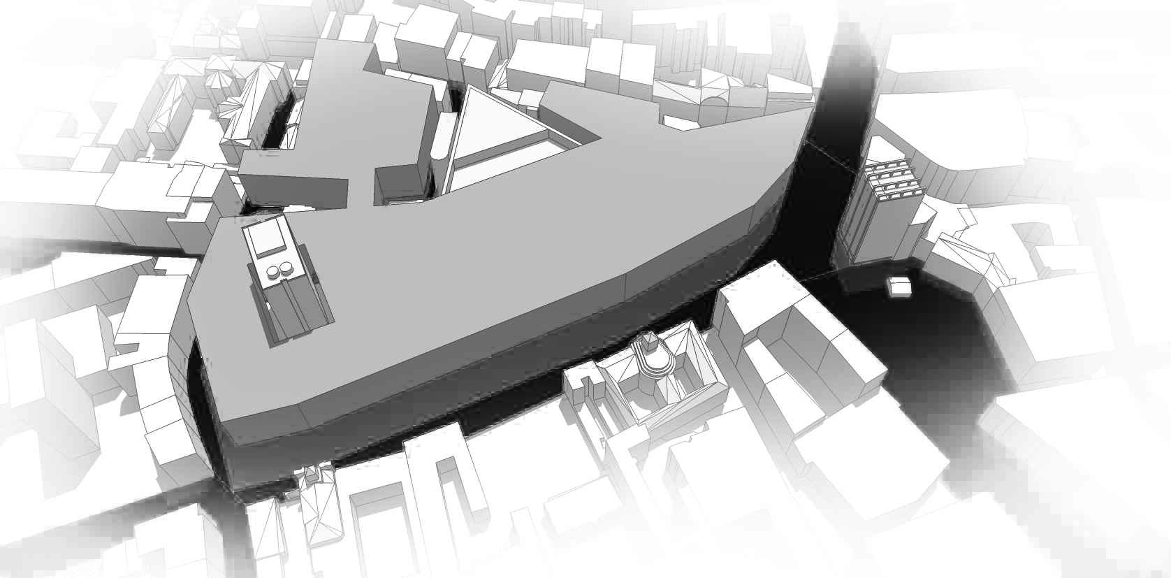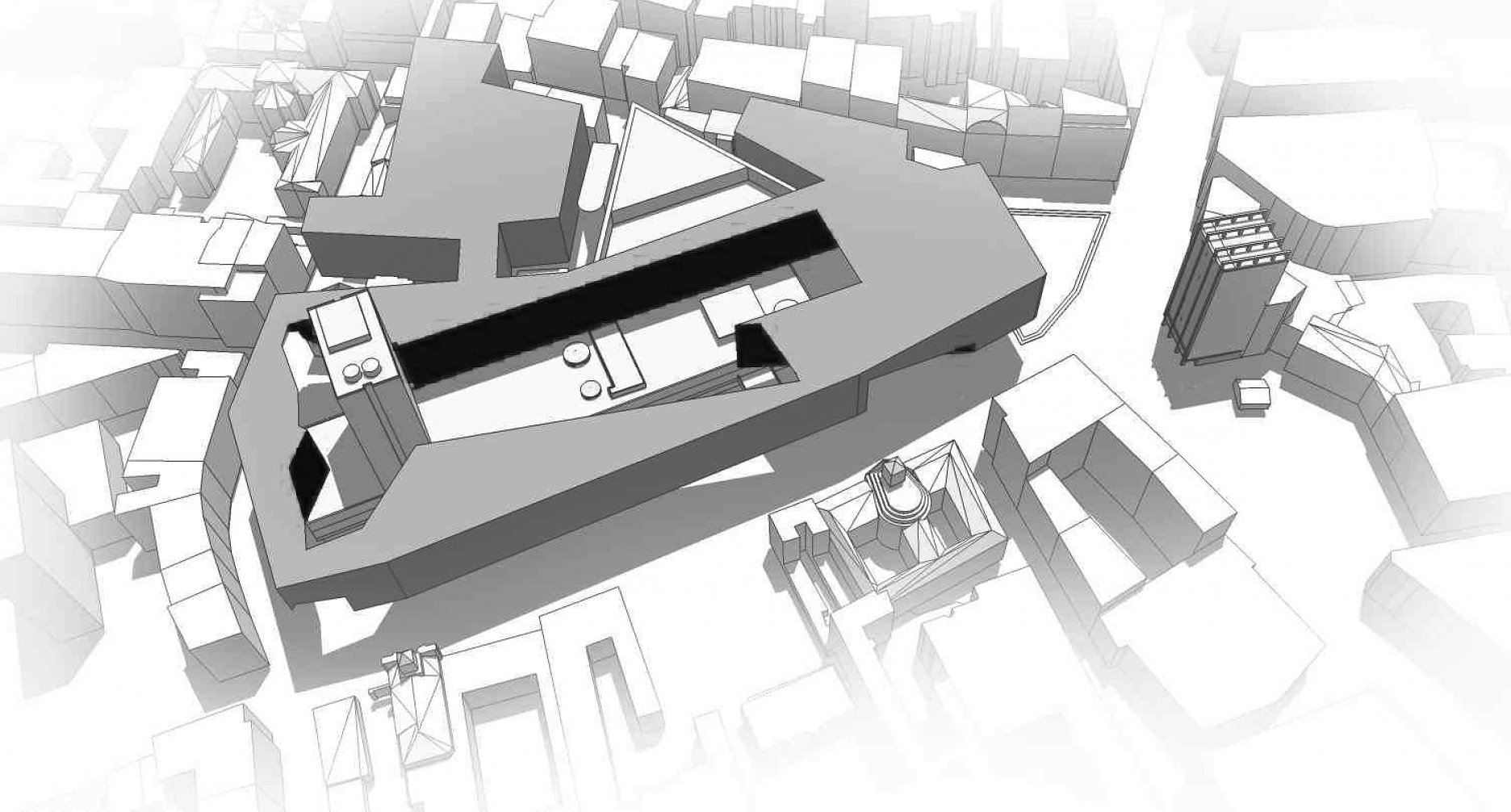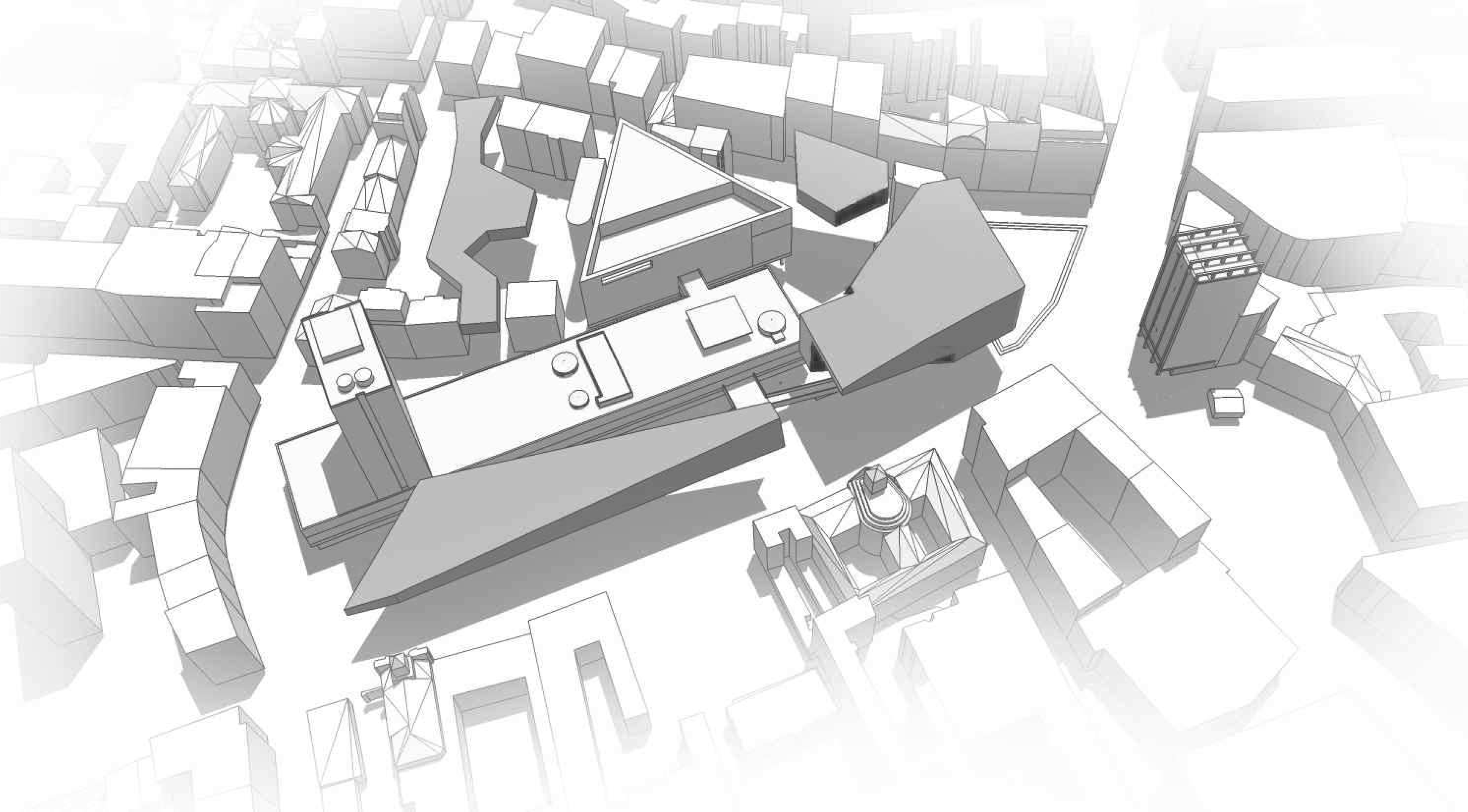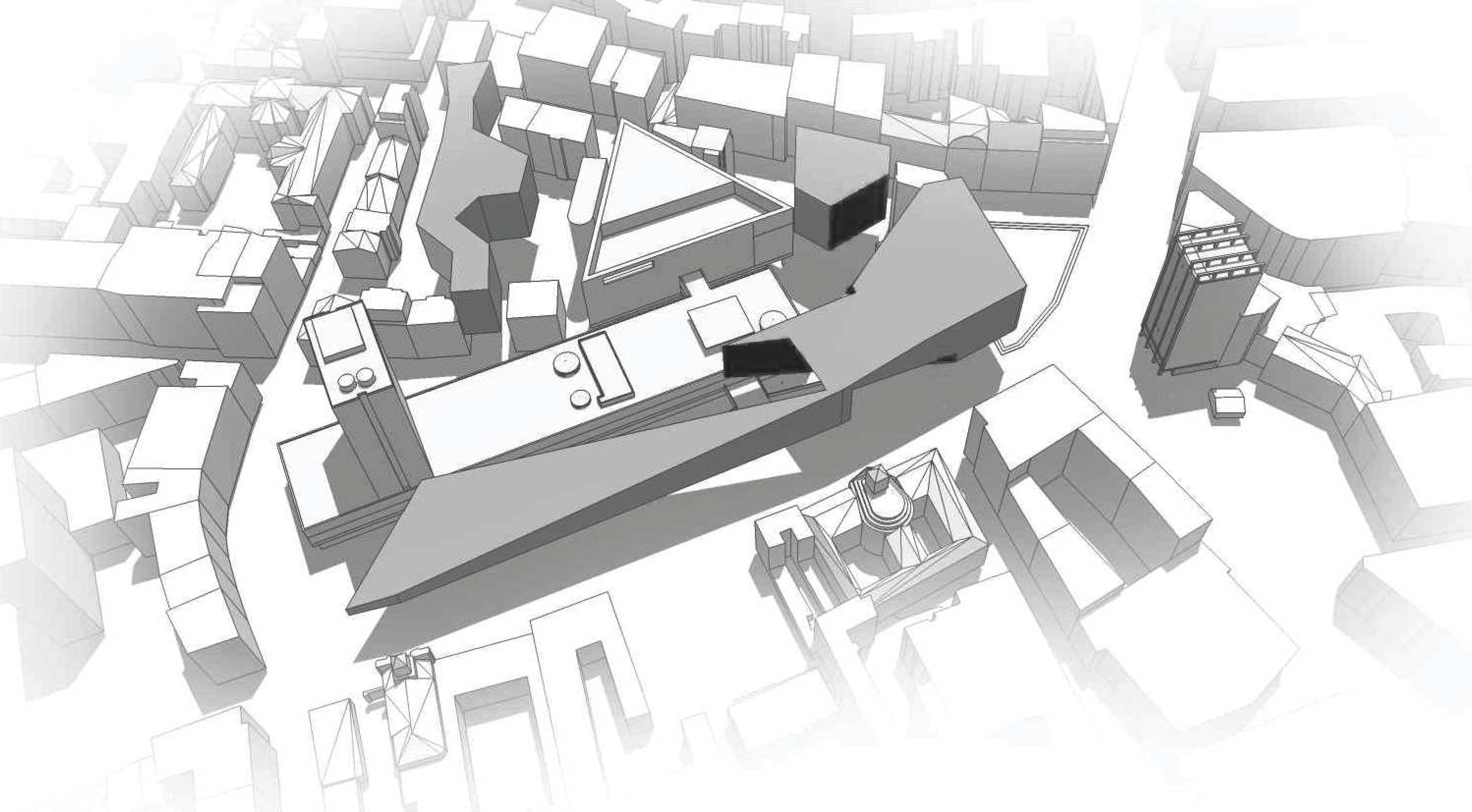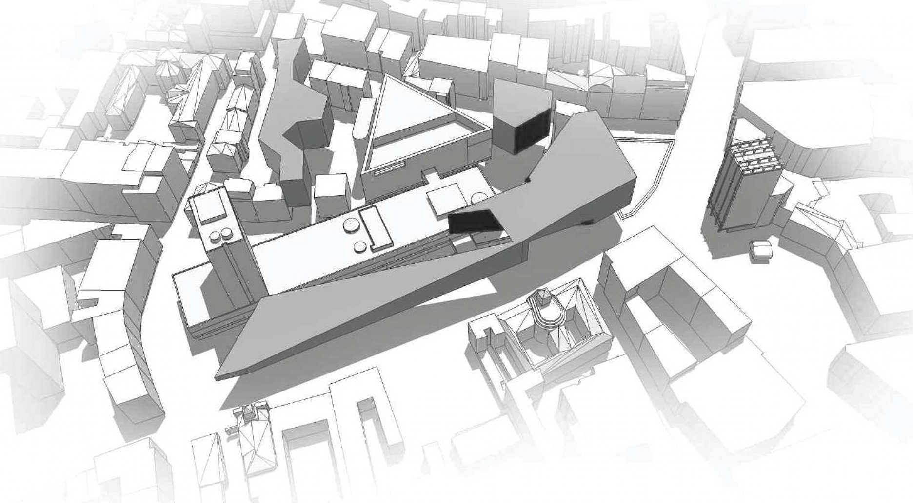 Z predchádzajúcich úvah teda vyplýva, že stav Kamenného námestia je svojim spôsobom odkazom doby a nášho chovania sa. A preto to nové čo by tu malo vzniknúť by malo rešpektovať to staré - to čo sa tam už udialo, tak aby zostal kameň na kameni. Riešením je inšpirovať sa prirodzením vrstvením. To čo tu bolo prvé je dole, niekde v základoch, to čo je posledné je hore, levitujuce niekde v oblakoch ako budúcnosť a medzera - prázdno vyjadruje všetko to čo bolo medzi tým.