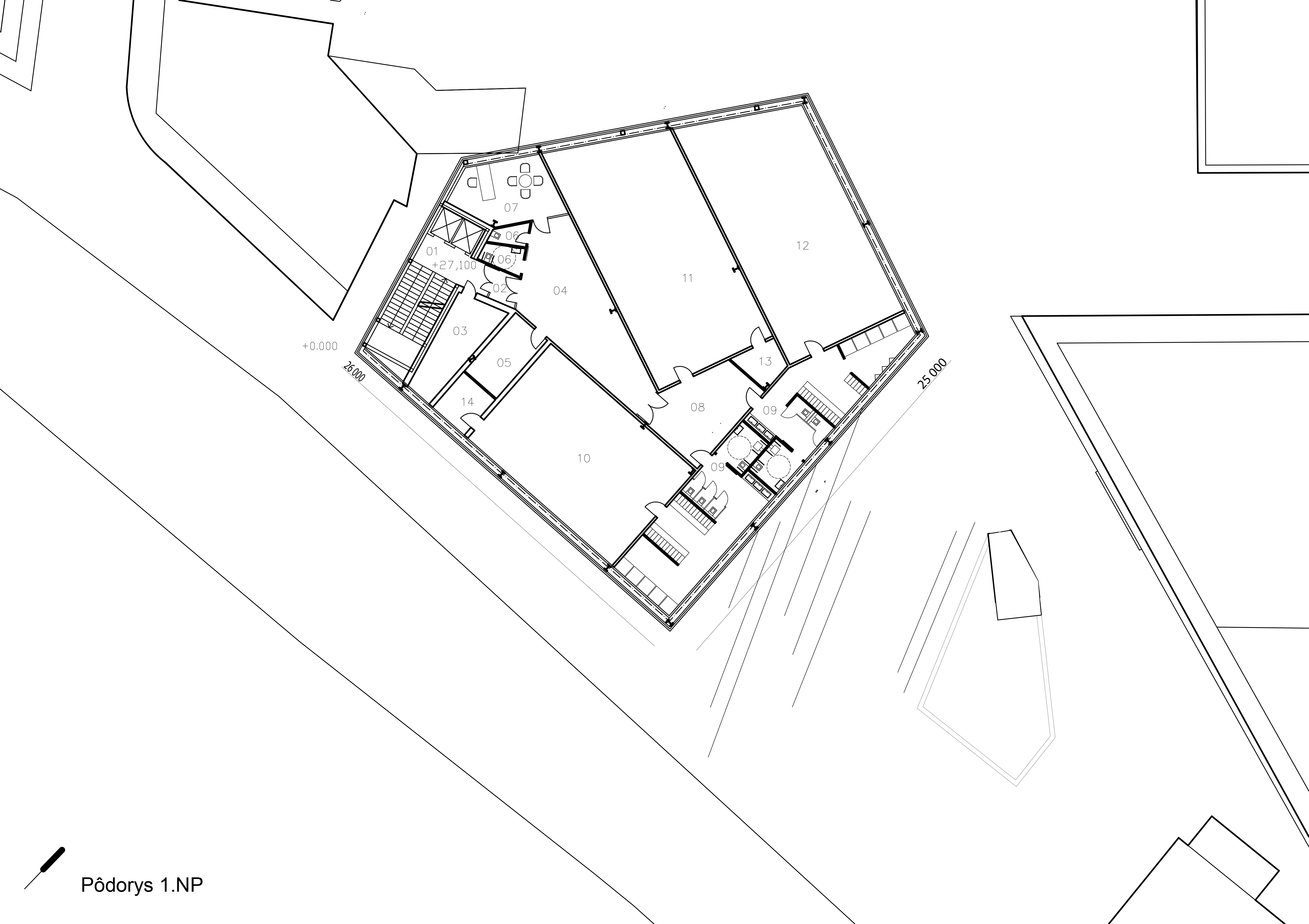 Spočíva v úvodnom vytýčenie plochy priestoru na kamennom námestí, ktorú je možné využiť a ponad túto plochu nasadiť stavu Roma Interrotta. Z uličných profilov, v miestach kde sa pri vstupe na kamenné námestie vynára prvotný pohľad na hotel Kyjev ako identifikačnú dominantu územia sa vytvoria zorné výhľadové polia, ktorých hmoty v prieniku cez základnú hmotu budúceho objektu vytvoria primárne okresanú skulptúru novej vrstvy.